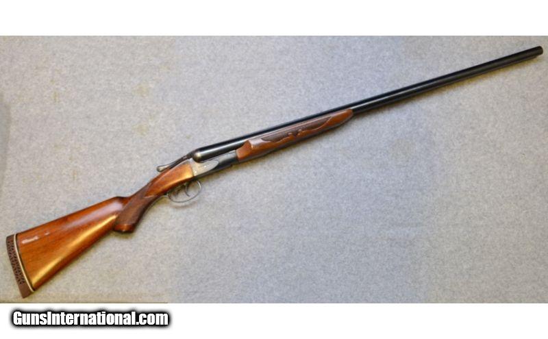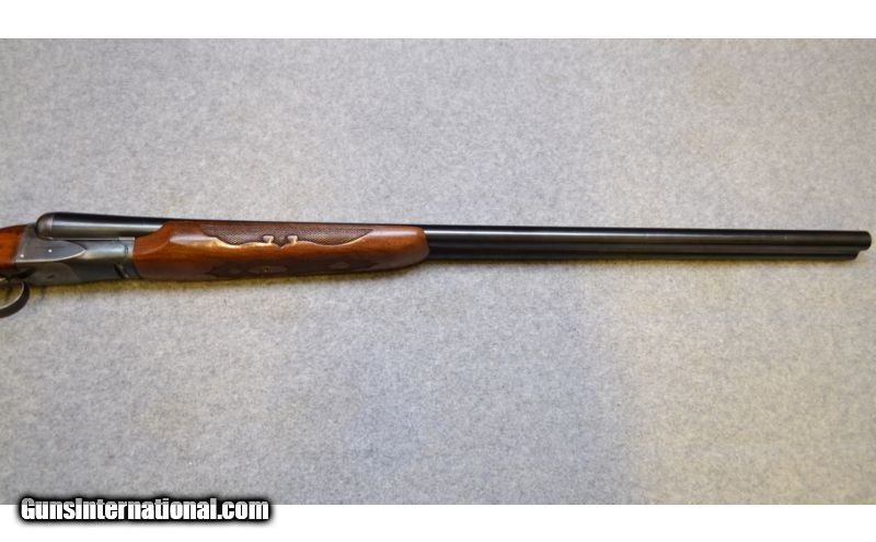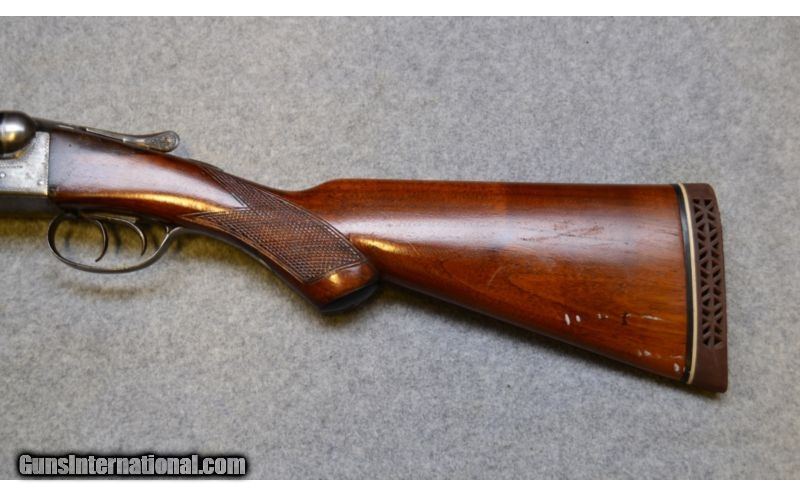 Description: This is a nice example of a Sterlingworth SxS shotgun manufactured by A.H. Fox. The shotgun is in good condition with some wear on the stock and receiver. SOLD Caliber Info: 12 Ga. Chambers: 2 3/4 inch side by side with extractor. Metal Condition: Good with some wear on bluing. Wood Condition: Good with some dents and scuffs on the stock. Bore Condition: Very good bright shiny bore with light wear marks. Barrels: 30 inch. Triggers: Double triggers. Stock: Checkered wood stock. Stock Dimensions: LOP - 13 1/4 and 14 1/2 inch. Fore End: Checkered wood forend. Butt Pad: Ventilated brown rubber butt pad. Weight: 7 pound 8 ounce. Sights: Solid rib with beaded front sight. Chokes: Full/Modified. Item Location: Hammond, IN |