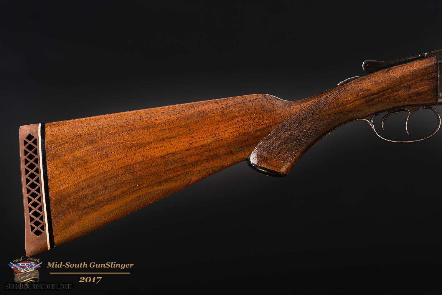 SOLD Curio/Relic: Yes Manufacturer: A. H. Fox Model: Sterlingworth Serial Number: 114744 Condition: NRA Good Metal Condition: See Images Wood Condition: See Images Bore Condition: Very Good Barrels: 28 Action: Boxlock Triggers: Double Gauge Info: 12 Stock: Checkered Walnut Stock Comb: 1 ½” Stock Heel: 2 ½” Stock Cast: -0- Fore End: Splinter Butt Pad: Rubber LOP: 14”- 15” Rib: Solid Weight: 7 ¼ Pounds Manufacture Date: 1928 Choke Left: Full -0.035 Choke Right: Modified -0.020 Item Location: Little Rock, Arkansas |