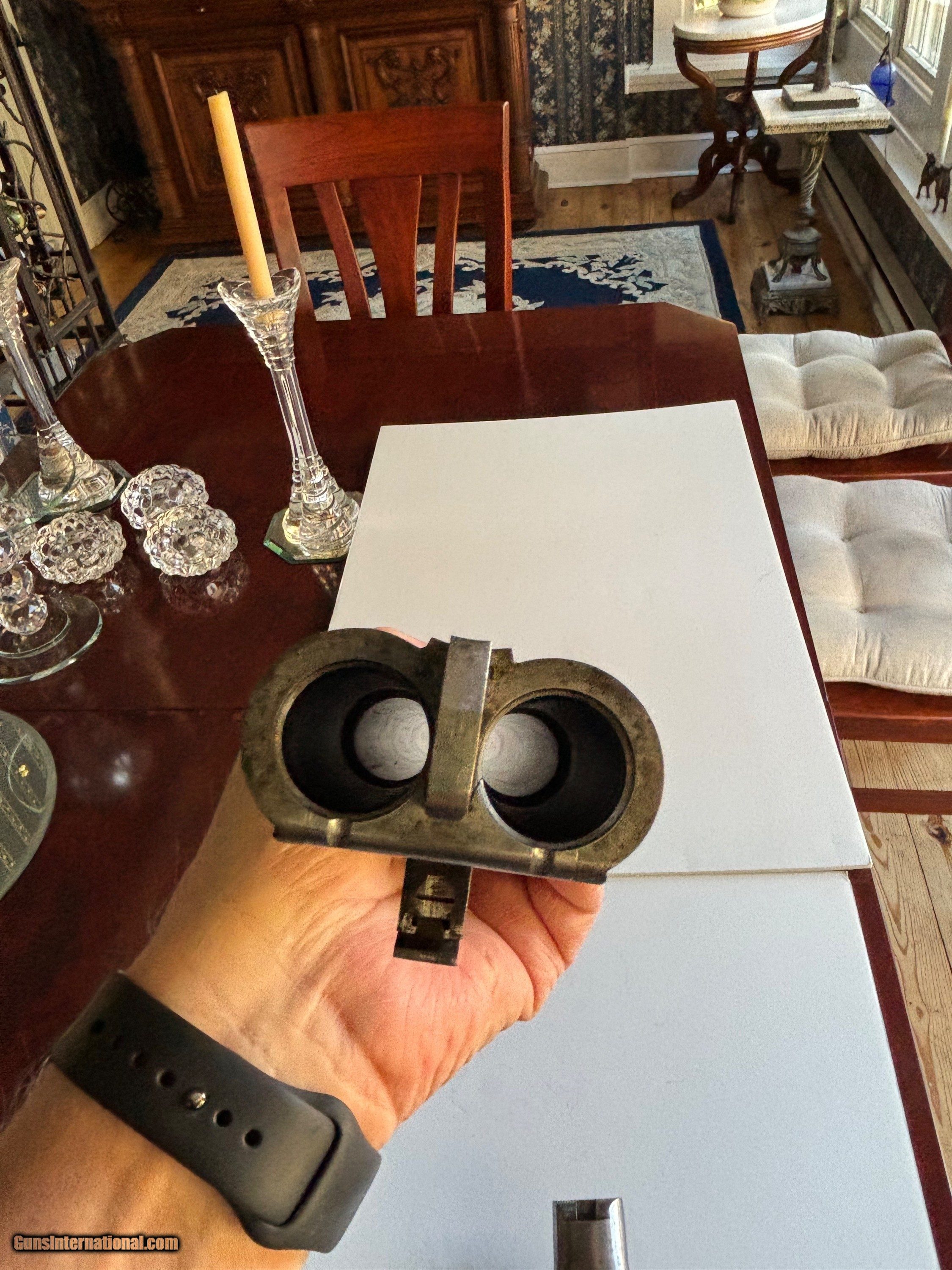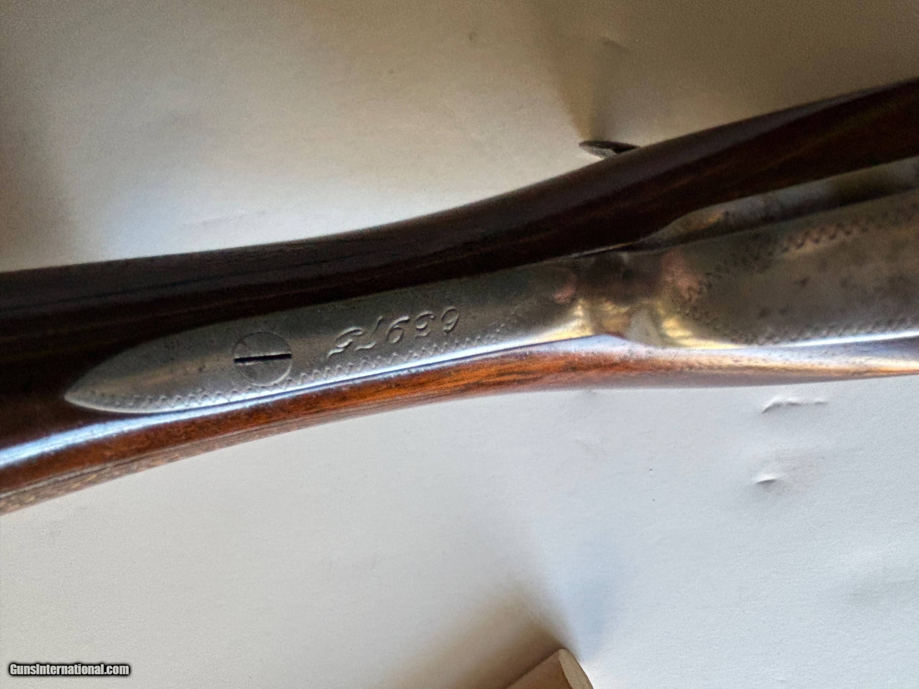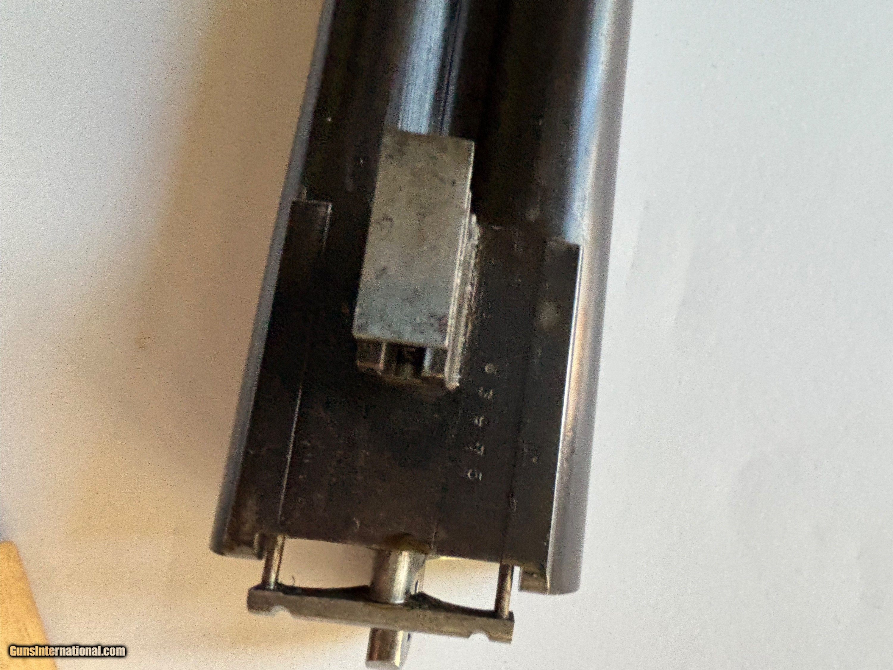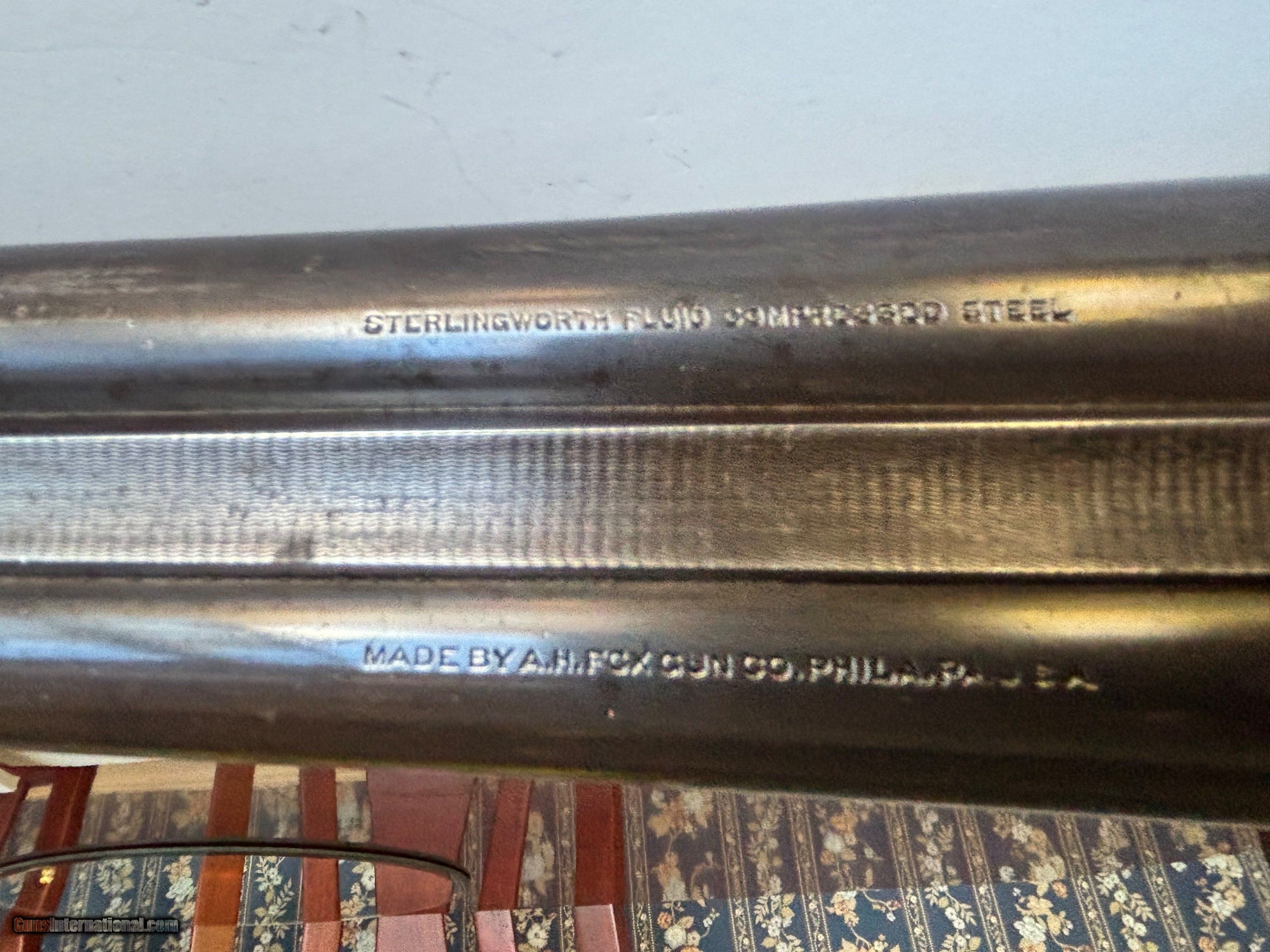 Description: A.H. Fox Sterlingworth Double Barrel 12 Ga. shotgun manufactured in Philadelphia in 1913. Has 28" barrels choked modified and full. It is in very good condition, shoots well and functions perfectly. Bores are shiny and bright with no rust or pitting. Lock up is tight. It is marked Fluid compressed steel on the right barrel. All numbers match. Length of pull to front trigger is 14 1/4". Drop at heel is 3". there are minor scratches and bluing wear commensurate with a 112 year old field gun. Curio/Relic: Yes Shotgun Gauge: 12 Gauge Manufacturer: A. H. Fox Model: Sterlingworth Serial Number: 63975 Barrel Length: 28 Ejectors: no Condition: excellent Metal Condition: excellent Wood Condition: excellent Bore Condition: excellent Barrels: 2 Barrel Type: Fluid Compressed Steel Action: Break open Triggers: 2 Stock: Walnut Stock Drop: 3 Fore End: Walnut Butt Pad: Black Plastic or rubber LOP: 14 1/4 Rib: yes Finish: oil Weight: 7 lbs. 3oz. Sights: single bead Manufacture Date: 1913 Chokes: yes Choke Left: Full Choke Right: Modified Engraving: no Item Location: Pennsylvania Proof:Nitro: yes Price: $995.00 Shipping: $80.00 Buy Now Contact Seller |