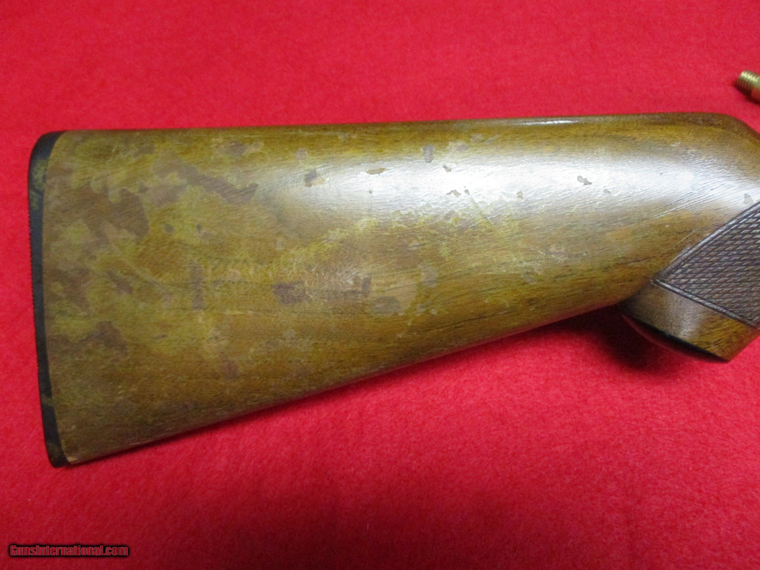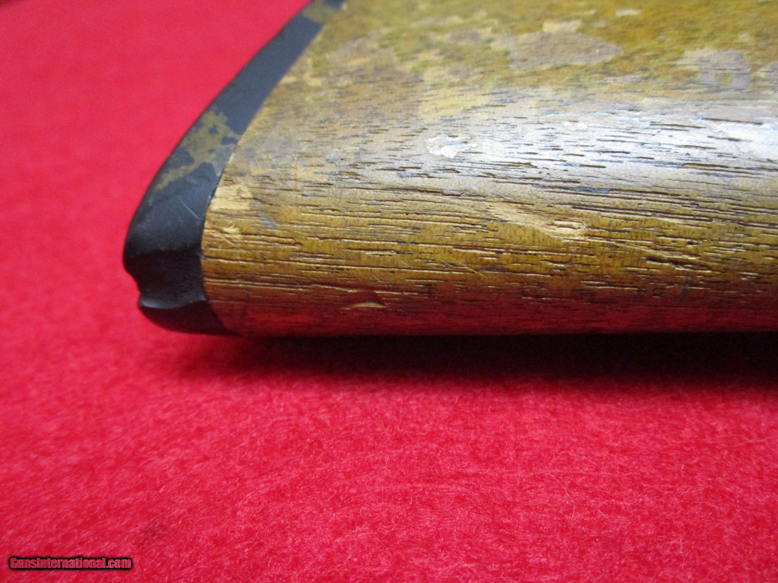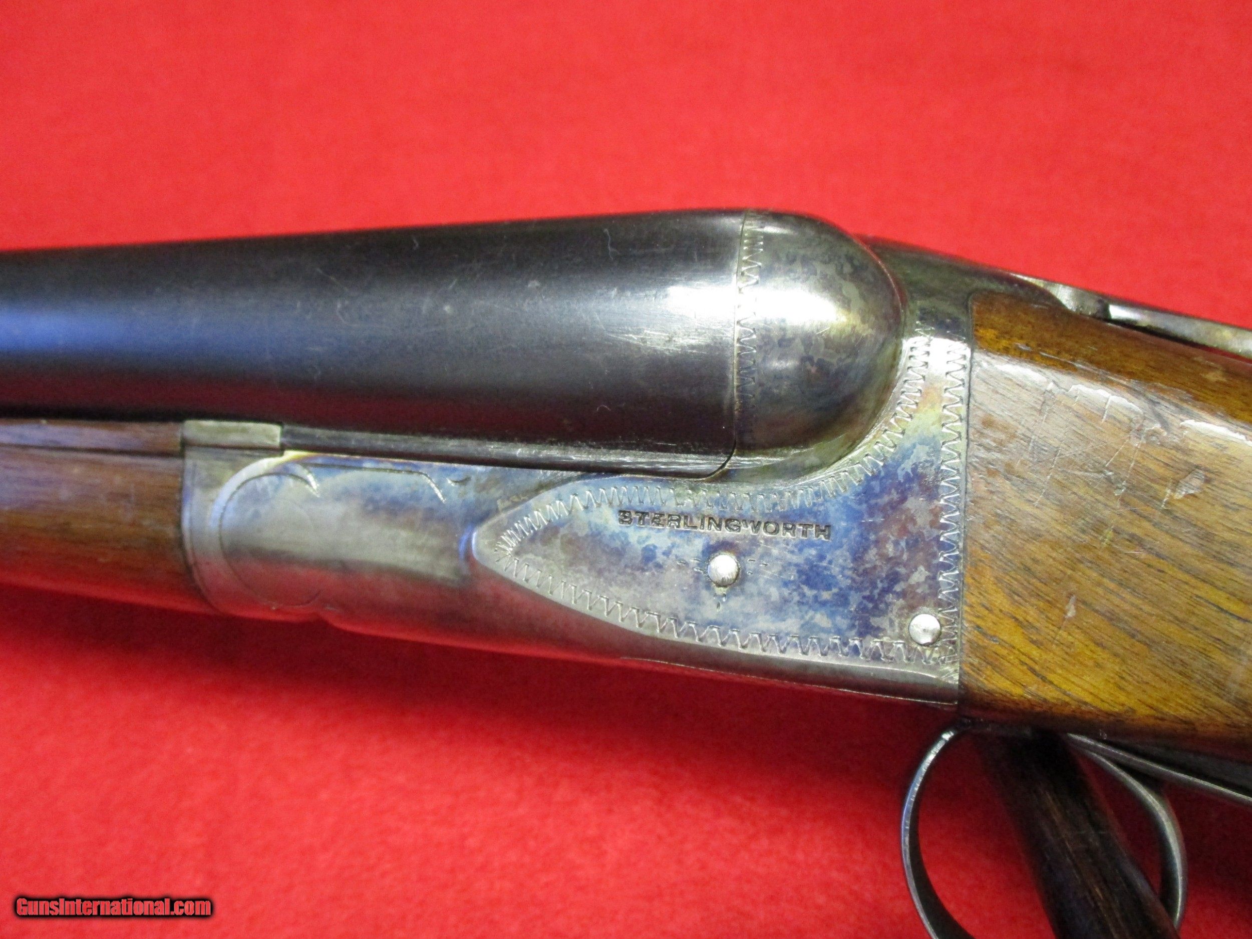 Description: The Sterlingworth side-by-side shotgun was produced between 1910 and 1942. It features a case-hardened receiver, blued barrels, and a checkered wood buttstock and forearm. According to doublegunshop, this one was made in 1929. It is in fair condition given its age of 89 years. At one point it became rusted and was cleaned but some minor pitting remains. Upon close examination, the pitting is surface-only, i.e. no deep pitting is present. Some of the case-color has been reduced because of the pitting but it is roughly 85-90 percent condition. The barrels have some bluing loss, most of it on the left barrel. The stock has most of the finish dried and flaking away. Personally, a stock needing refinishing due to a flaky finish is better than one needing replacement due to drying out and cracking as is the case with some older firearms. On the positive side, the lockup is still very tight, and the bores are very clean. Please see the pictures. The left bore has a full choke and the right a modified choke. These two make the Sterlingworth suitable for a variety of uses. SOLD Manufacturer: A.H. Fox Model: Sterlingworth Serial Number: 121350 Chambers: 2.75 inches (70mm) Ejectors: None Condition: Used - Fair Metal Condition: Minor Surface Pitting Wood Condition: Worn Finish Bore Condition: Excellent - No rust or pitting Barrels: 30 inches (762mm) Barrel Type: Double Action: SxS Triggers: Double Gauge Info: 12 gauge Stock: Checkered Wood Stock Comb: 2 inches (51mm) Stock Heel: 3.25 inches (82.6mm) Fore End: Checkered Butt Pad: Plate LOP: 13.4-14.2 inches (340-360mm) Rib: solid .44 inches (11.2mm) Finish: Blued, Case-Colored Sights: Front Silver Bead Manufacture Date: 1929 Choke Left: Full Choke Right: Modified Engraving: Some |