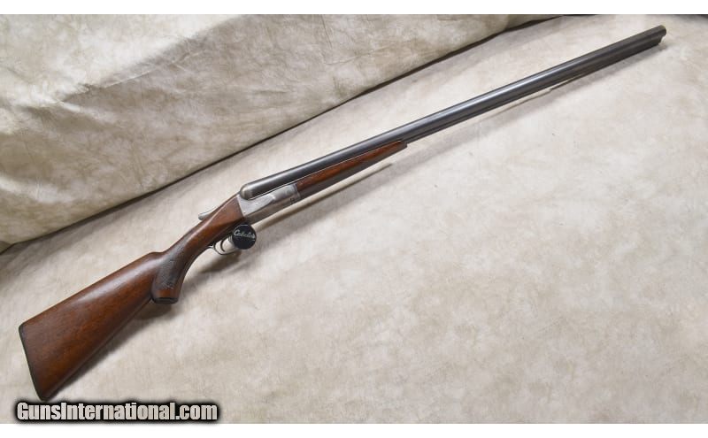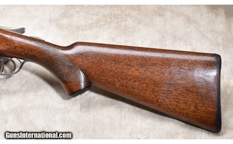 Description: The A.H.Fox shared the spotlight for best gun status with Ithaca, LC Smith, and Parker. The Sterlingworth was the base model and produced as a utility shotgun. The basic form of the gun was the same, but didn't have the higher grade wood or engraving of the "better" models. This one will make a great shooter for someone. 12 Gauge SOLD Chambers: "2 rounds, 12 gauge, measures 2-3/4 inch chamber Metal Condition: "Good. Tight on the hinge pin, tight to the face, the finish is trending toward patina, but there are some patches of rust. Wood Condition: Good. There are a large number of minor scratches and digs that appear to have been sanded out to a large degree and then refinished. The checkering is also quite flattened. Bore Condition: Shiny but there is some firing residue. Barrels: 30 inches Triggers: Factory double triggers. Stock Dimensions: 14-inch LOP Fore End: Matching splinter of walnut Butt Pad: Black plate. Weight: 7 lb - 3 oz Sights: Solid rib with silver bead. Chokes: Fixed Modified and Improved Modified Item Location: Rogers |