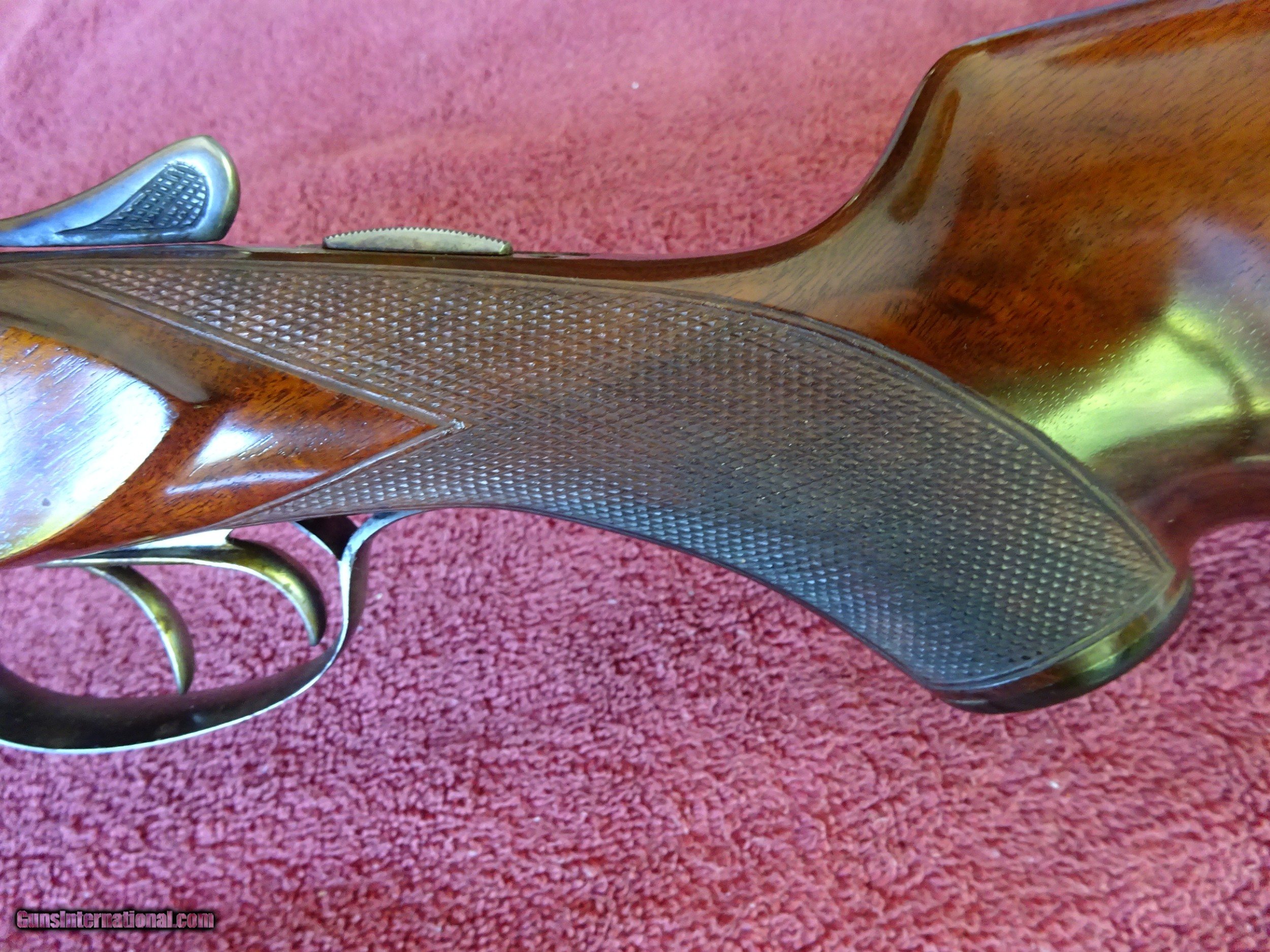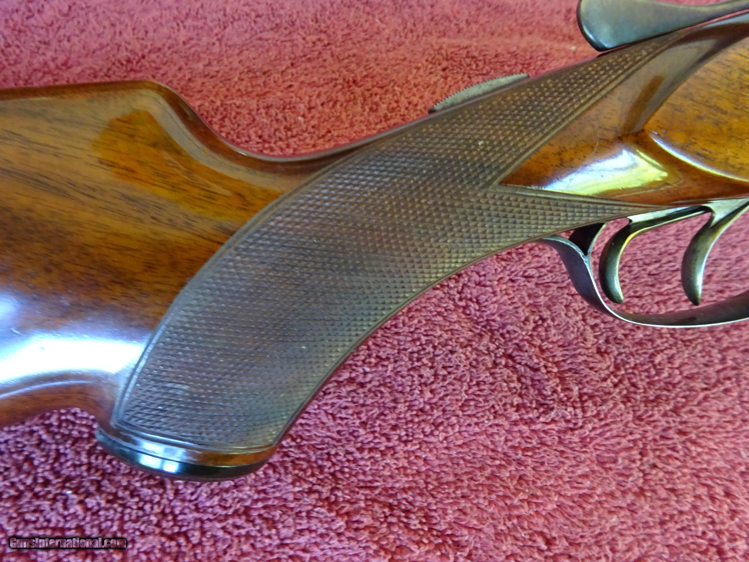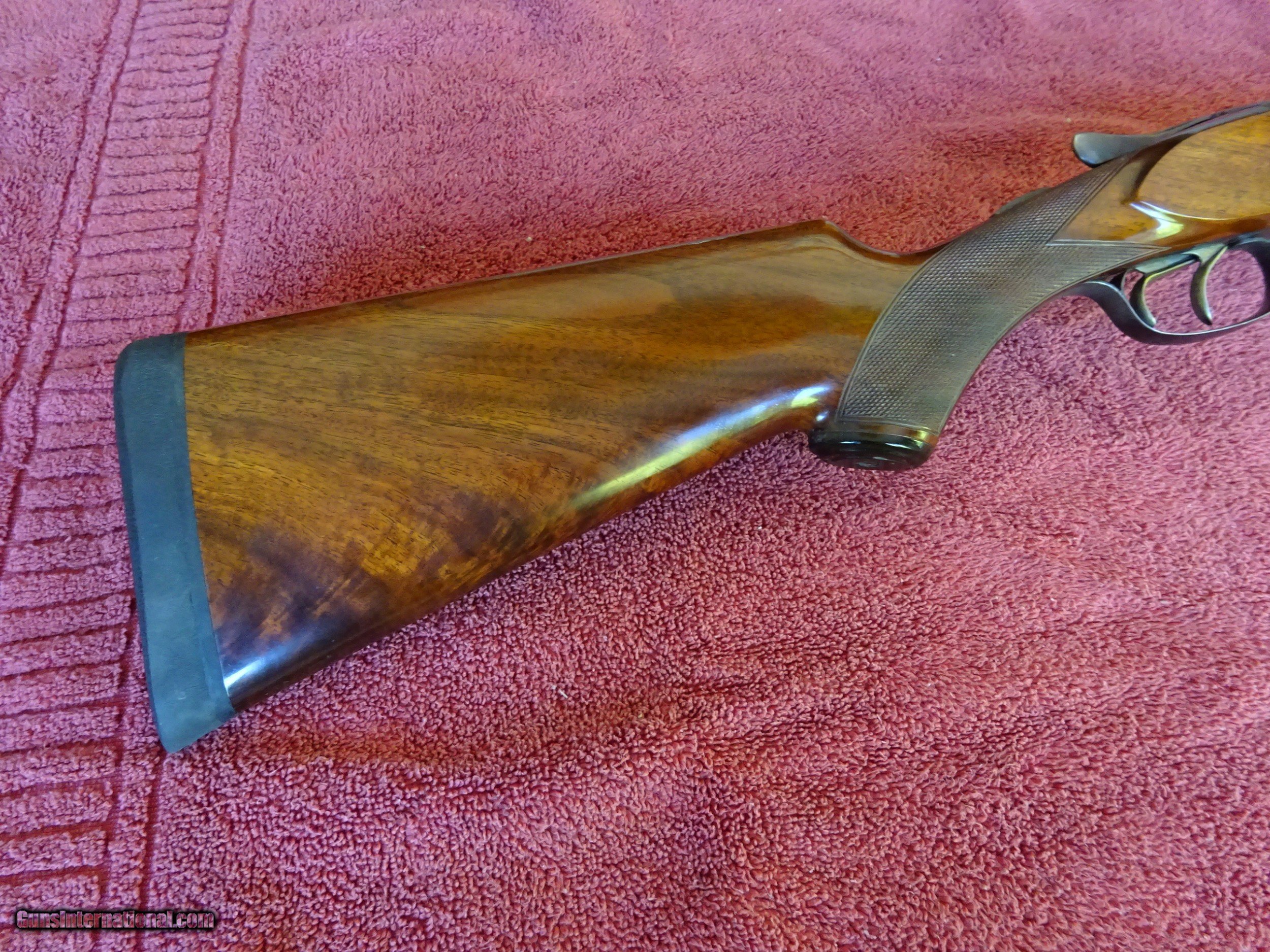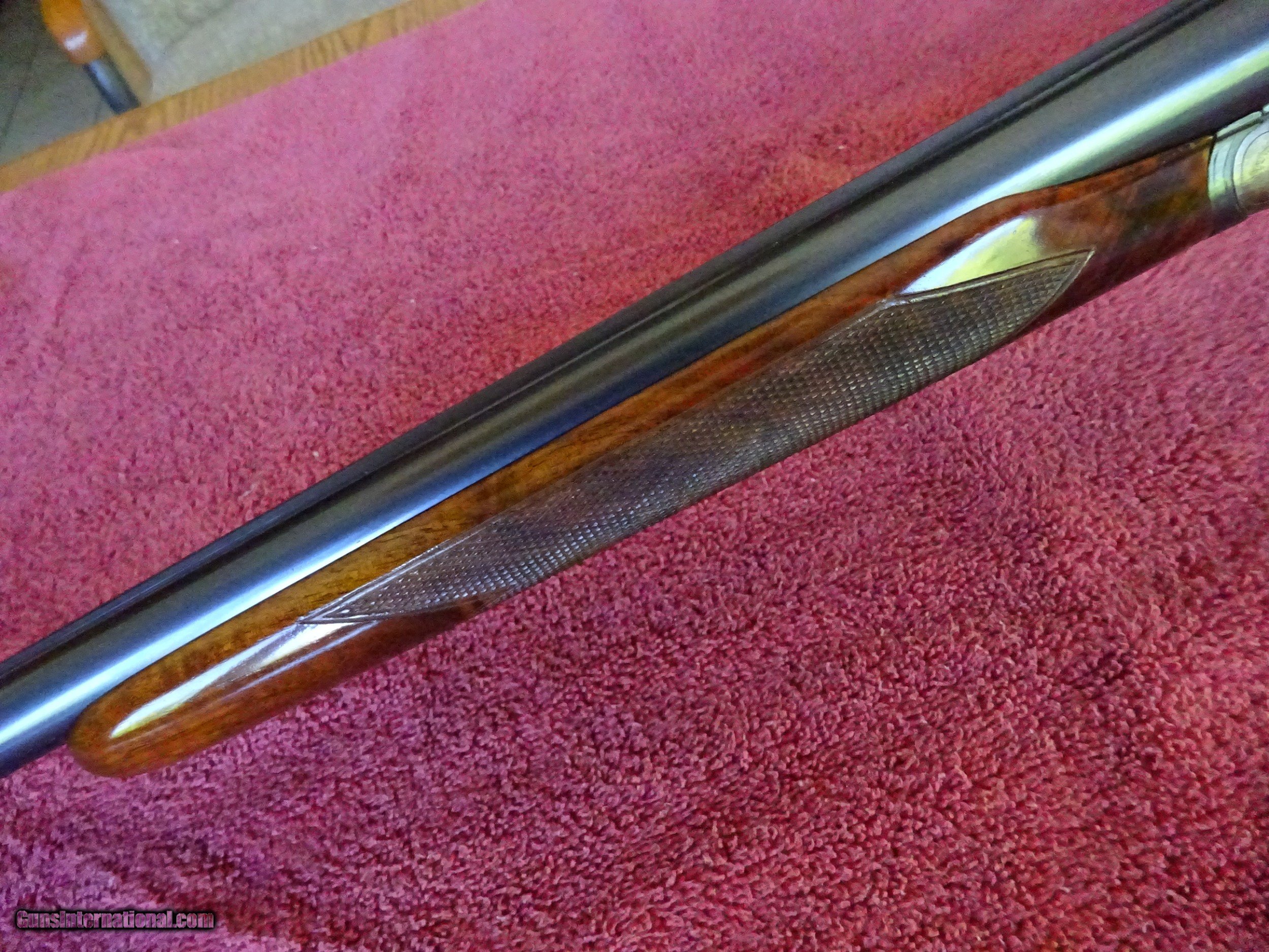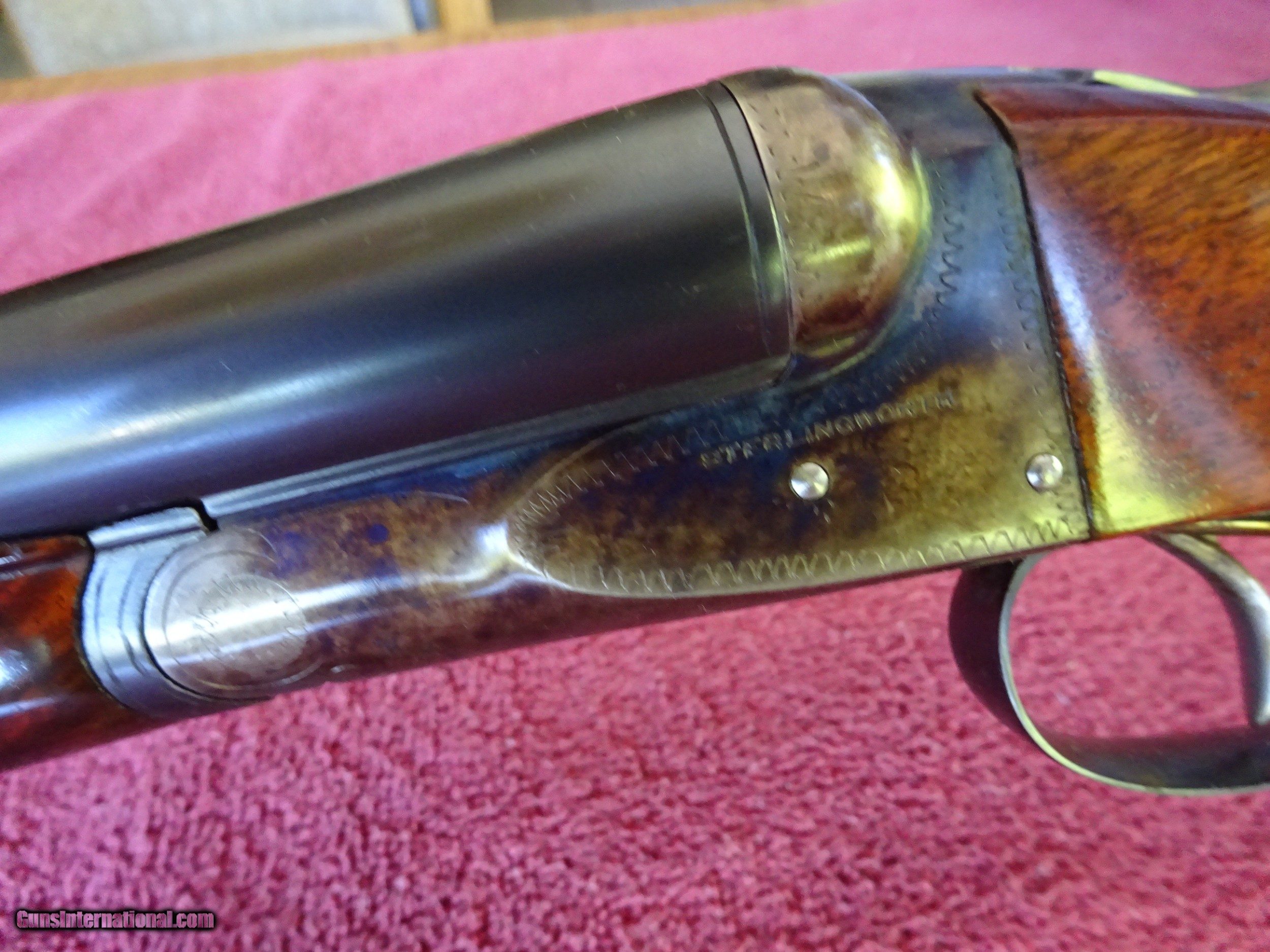 Description: A H FOX, PHIL., STERLINGWORTH 16 GAUGE. 30" BARRELS, IMP.CYL & IMP. MODIFIED, 2 5/8" CHAMBERS, NUMBER FOUR WEIGHT BARRELS, 100% BLUE, MIRROR BRIGHT BORES, BARRELS RING NICELY. AUTOMATIC EJECTORS AND SAFETY. 100% BOLD VIVID CASE COLOR, TOP LEVER TO THE FAR RIGHT, TIGHT ON FACE. PISTOL GRIP STOCK, BEAVERTAIL FORERM, VERY ATTRACTIVE HIGHLY FIGURED WOOD, PERFECT FINE CHECKERING WITH MULLERED BORDERS. DIMENSIONS 1 1/2" X 2 1/2" X 14 1/4", 6 3/4 POUNDS. THE GUN HAS BEEN PROFESSIONALLY RESTORED - BARRELS HAVE 100% PROPER RUST BLUE FINISH, BORES ARE MIRROR BRIGHT. FRAME HAS 100% CASE COLOR, EXCEPTIONAL STOCK WORK, PERFECT FIT AND FINISH. GORGEOUS FIGURE AND COLOR, TRIGGERS, EJECTORS, SAFETY ALL FUNCTION PERFECTLY. THE COST OF THIS QUALITY OF RESTORATION WORK TODAY WOULD BE $4000-$5000. VERY ATTRATVE FOX MADE IN 1920. $2500.00 + $50.00 Insured shipping to an FFL address. See all Pats listings We also have hundreds of pieces of ORIGINAL gun company advertising & memorabilia available for sale. We have no reprints or reproductions. Email for more information. SOLD Curio/Relic: Yes |