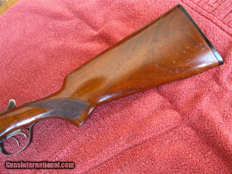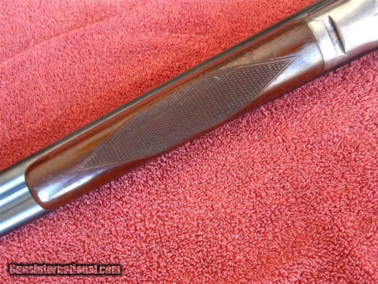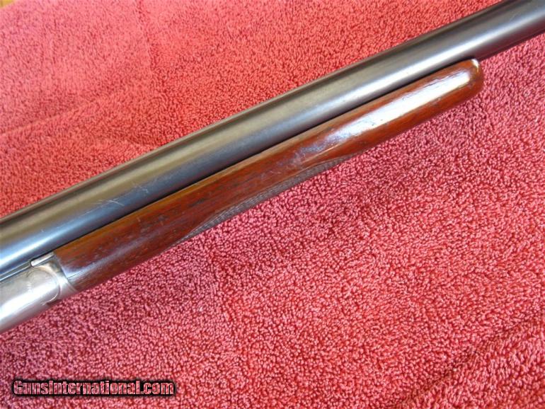 Description: A H FOX, UTICA NY, STERLINGWORTH 16 GAUGE, 28" BARRELS, FULL AND MODIFIED, 2 3/4" CHAMBERS, EXCELLENT BLUE, MIRROR BORES. SOME VIVID CASE COLOR, UNTURNED SCREWS, TOP LEVER TO THE RIGHT. PISTOL GRIP STOCK, SPLINTER FOREARM, EXCELLENT WOOD AND CHECKERING. ORIGINAL BUTTPLATE, GREAT DIMENSIONS 1 3/8" X 2 1/4" 14 1/4", 6 POUNDS 4 OUNCES. NO. 3 BARRELS. MADE IN LAST YEAR OF PRODUCTION 1939. $1750.00 + $40.00 Insured shipping to an FFL address. We have hundreds of pieces of ORIGINAL gun company advertising & memorabilia available for sale. Email for more information. SOLD Curio/Relic: Yes |