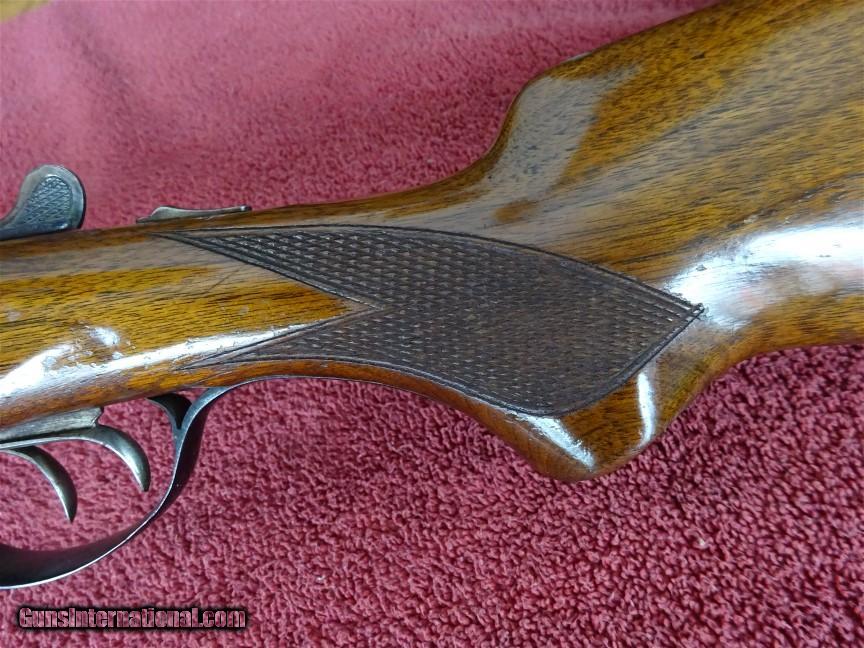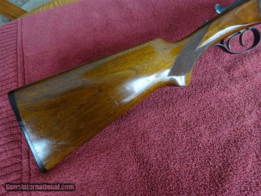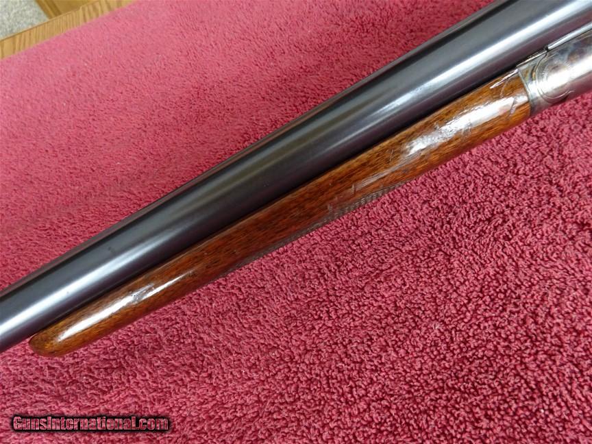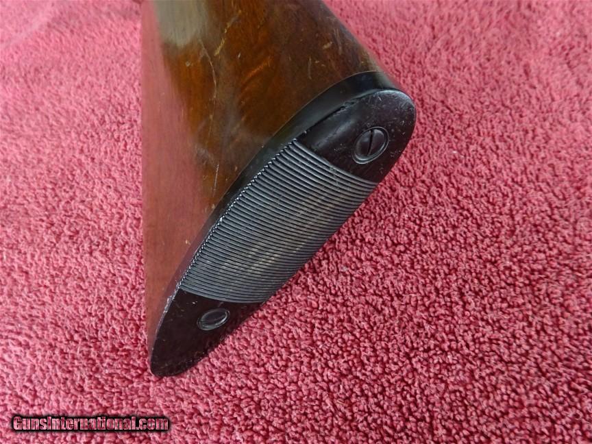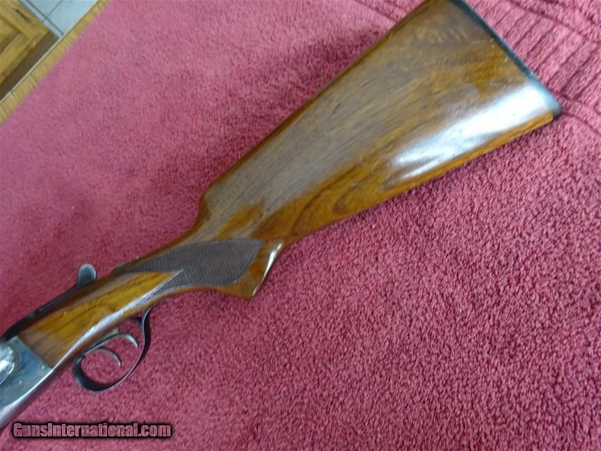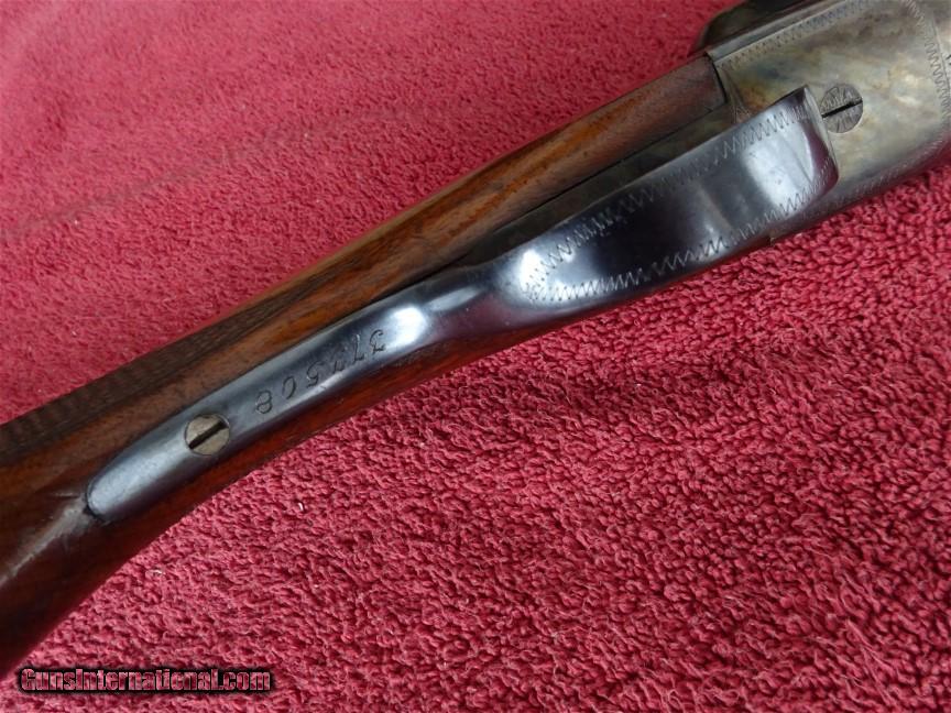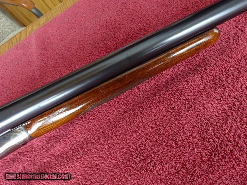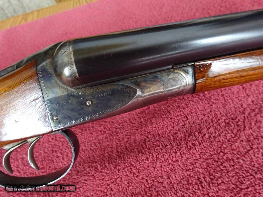 Description: A H FOX, UTICA, STERLINGWORTH 16 GAUGE, 28" BARRELS. EXCELLENT BLUE, MIRROR BRIGHT BORES, NO. 3 WEIGHT, 2 3/4" CHAMBERS, MODIFIED AND FULL. BOLD VIVID CASE COLOR, PERFECT SCREWS, 100% TRIGGERGUARD BLUE, TOP LEVER TO THE FAR RIGHT, TIGHT AS NEW. PISTOL GRIP STOCK, SPLINTER FOREARM, ORIGINAL BUTTPLATE, VERY GOOD WOOD AND CHECKERING. TYPICAL HANDLING MARKS IN THE VARNISH. NICE GUN MADE IN 1937, 100% ORIGINAL CONDITION, 1 1/2" X 2 5/8" X 14 1/8", 6 POUNDS 6 OUNCES. $1775.00 + $40.00 Insured shipping to an FFL address. See all Pats listings We also have hundreds of pieces of ORIGINAL gun company advertising & memorabilia available for sale. We have no reprints or reproductions. Email for more information. SOLD Curio/Relic: Yes |