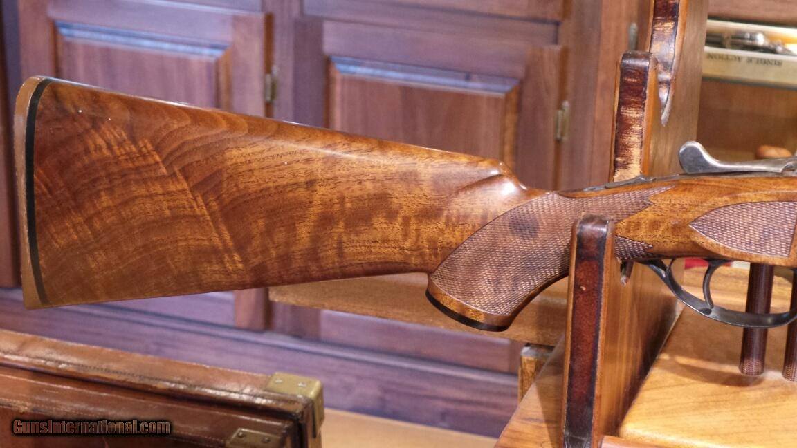 Description: Maker: A.H. Fox Model: Sterlingworth Gauge: 16 Barrels: 26" Chokes: SK - IC L.O.P. : 14 1/4" Drop: 1 1/2"C x 2 1/4"H Weight: 6 lbs 12 oz Ser. #: 376765 Stock #: 9364 Price: $2,750 New or Used: Used SOLD Manufacturer: A. H. Fox Model: Sterlingworth Gauge Info: 16 gauge |