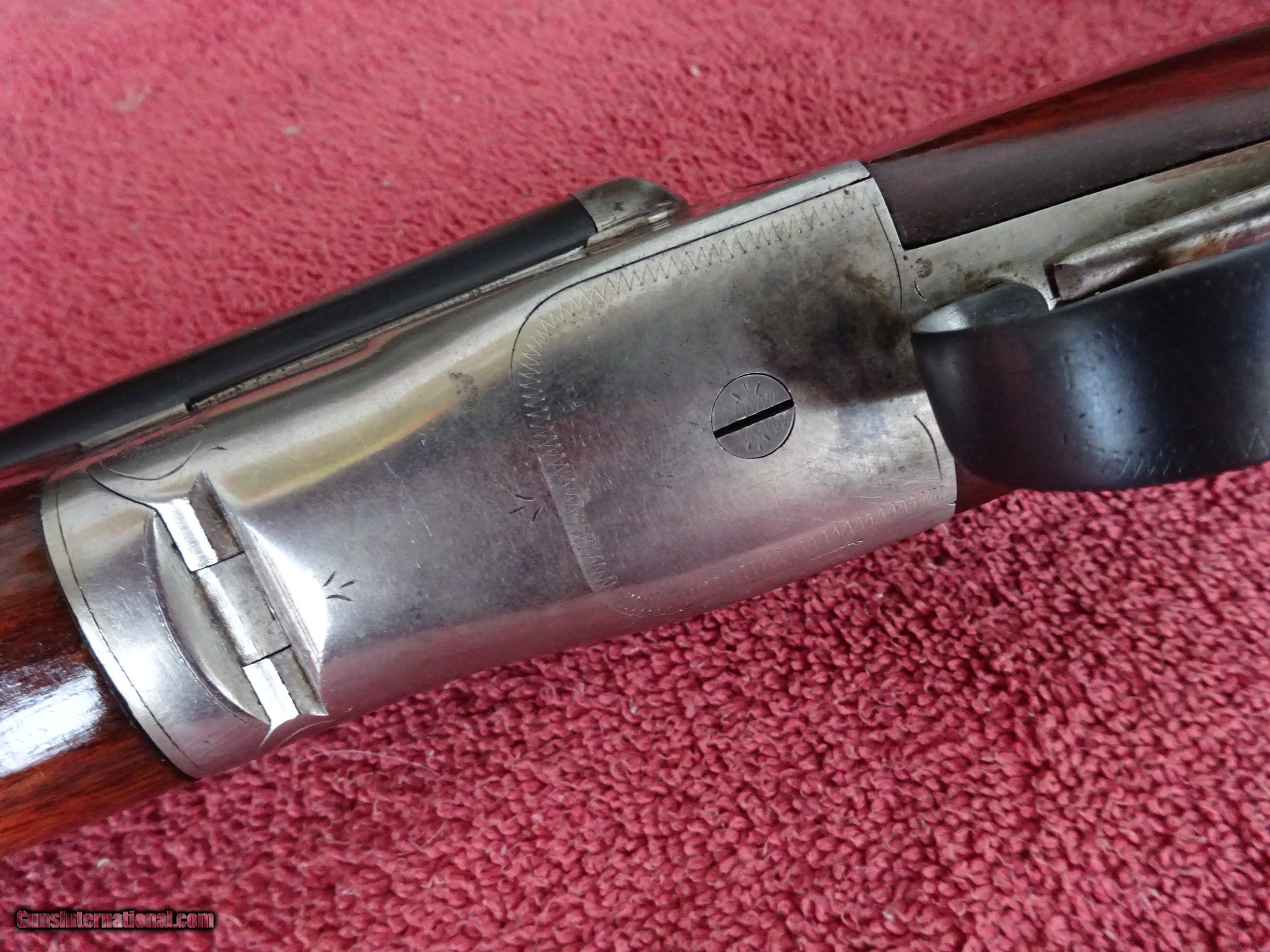 Description: A H FOX, UTICA, STERLINGWORTH 16 GAUGE. 28" NUMBER 4 WEIGHT BARRELS, MODIFIED AND FULL, 2 3/4' CHAMBERS, EXCELLENT BLUE, MIRROR BORES, SINGLE SIGHT, BARRELS RING NICELY. LIGHT CASE COLOR, EXCELLENT SCREWS, TOP LEVER TO THE RIGHT, TIGHT ON FACE. PISTOL GRIP STOCK, SPLINTER FOREARM, EXCELLENT WOOD AND CHECKERING. ORIGINAL BUTTPLATE AND A H FOX PHIL. GRIP CAP, 1 1/2" X 2 1/2" X 14", 6 POUNDS 4 OUNCES. MADE IN 1935. $1650.00 + $50.00 Insured shipping to an FFL address. See all Pats gun listings on this site! We also have hundreds of pieces of ORIGINAL gun company advertising & memorabilia available for sale on our site SPORTINGCOLLECTIBLES. We have no reprints or reproductions. Email for more information. SOLD Curio/Relic: Yes |