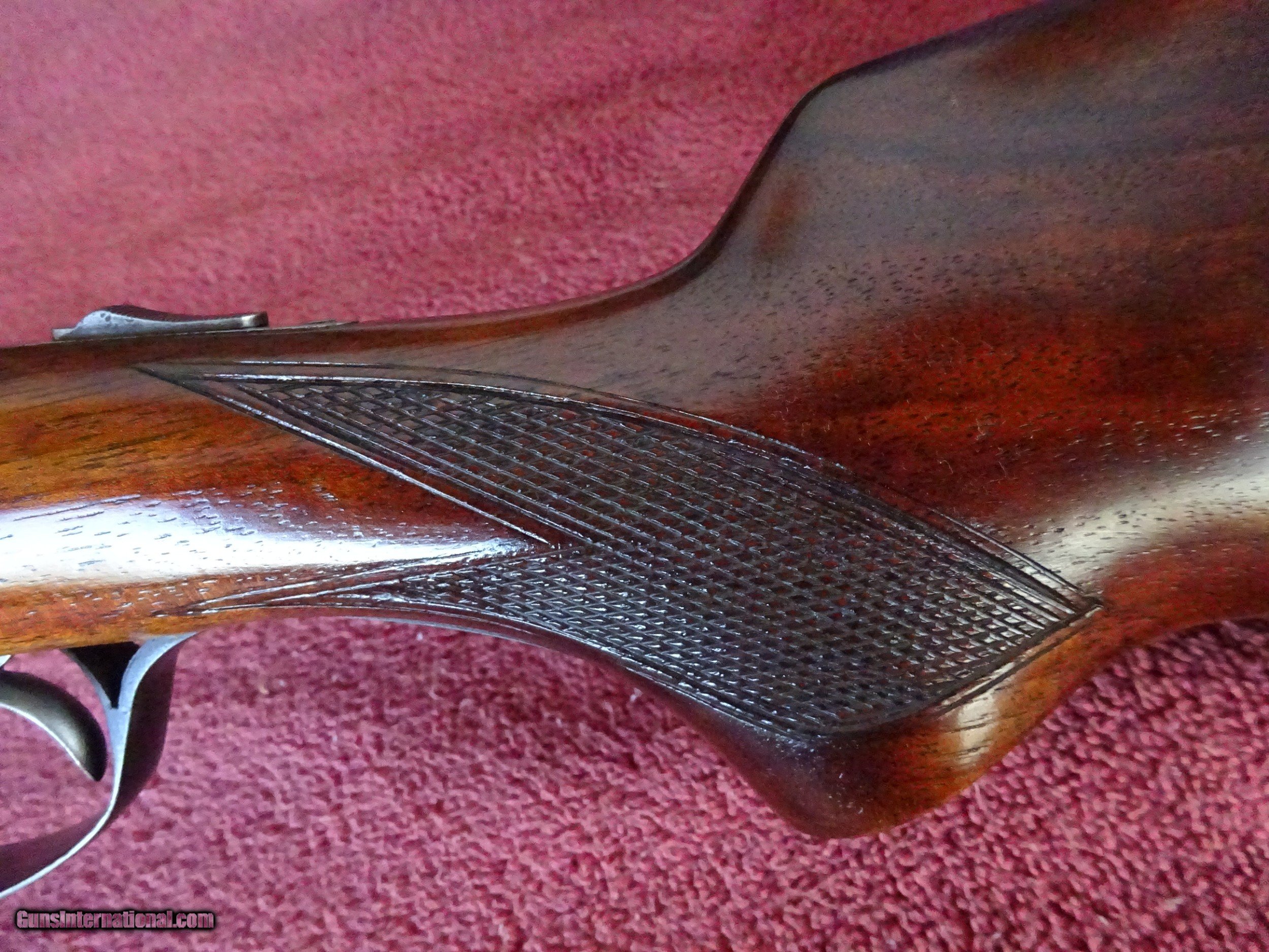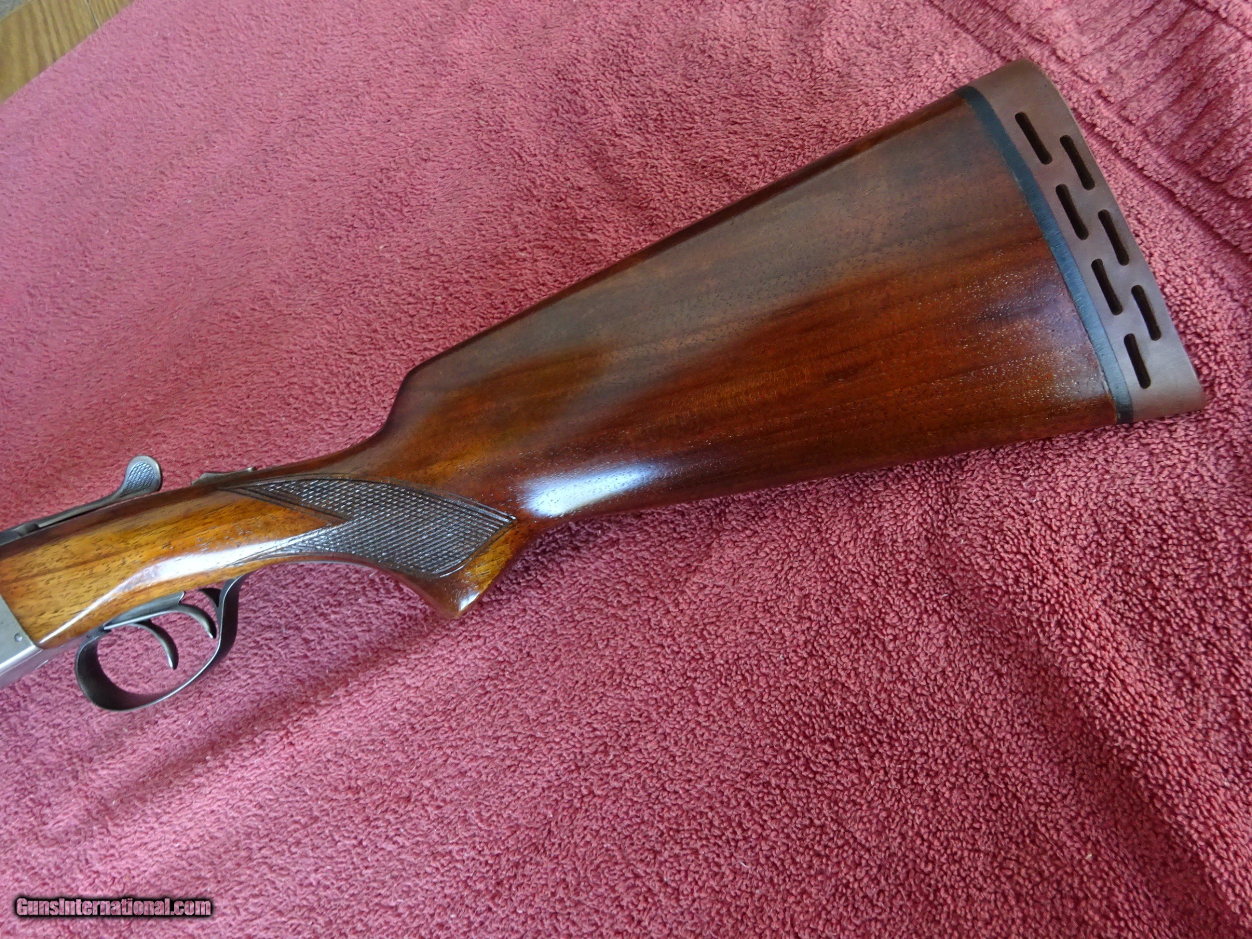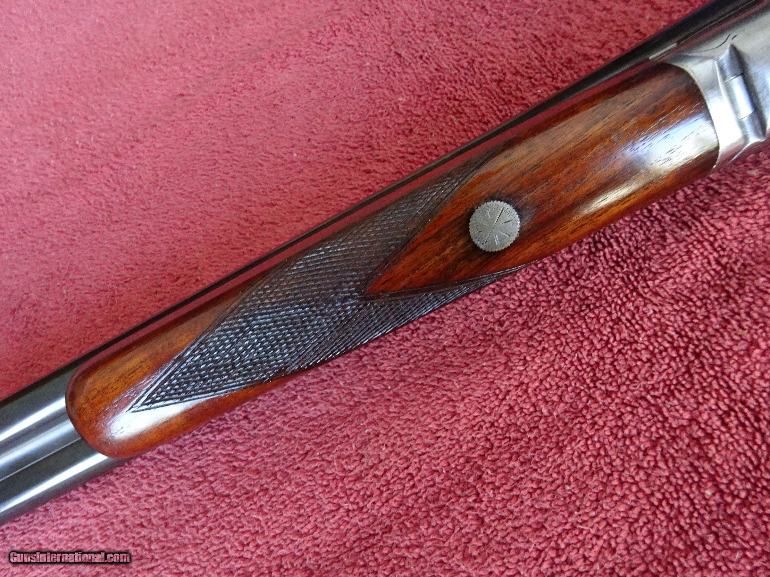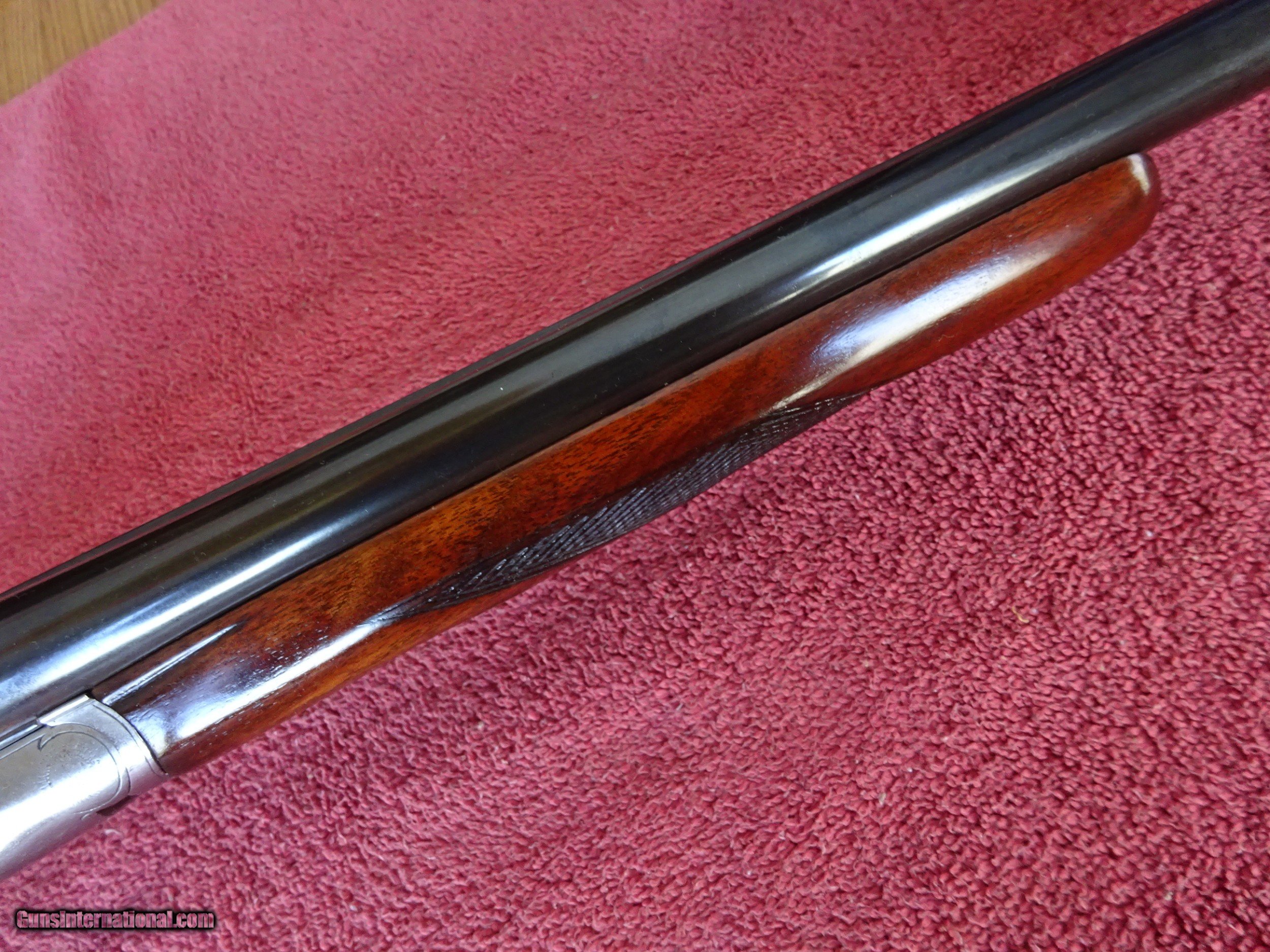 Description: A H FOX, UTICA, STERLINGWORTH 20 GAUGE. AUTOMATIC EJECTORS, 26" SPECIAL ALLOY FORGED STEEL BARRELS, MODIFIED .020 AND FULL .,030, MIRROR-BRIGHT BORES, NUMBER FOUR WEIGHT BARRELS, RING NICELY, VERY GOOD BLUE, SINGLE SIGHT. NO CASE COLOR, TOP LEVER TO THE RIGHT, TIGHT ON FACE. PISTOL GRIP STOCK, SPLINTER FOREARM, VERY GOOD WOOD AND VARNISH. VINTAGE JOSTAM PAD, 1 1/2" X 2 5/8" X 14 1/4", 6 1/4 POUNDS. MADE IN 1935. AUTOEJECTOR 20 GAUGE STERLINGWORTHS ARE VERY DIFFICULT TO FIND. $1750.00 + $50.00 Insured shipping to an FFL address. See all Pats gun listings on this site! We also have hundreds of pieces of ORIGINAL gun company advertising & memorabilia available for sale on our site SPORTINGCOLLECTIBLES. We have no reprints or reproductions. Email for more information. SOLD Curio/Relic: Yes |