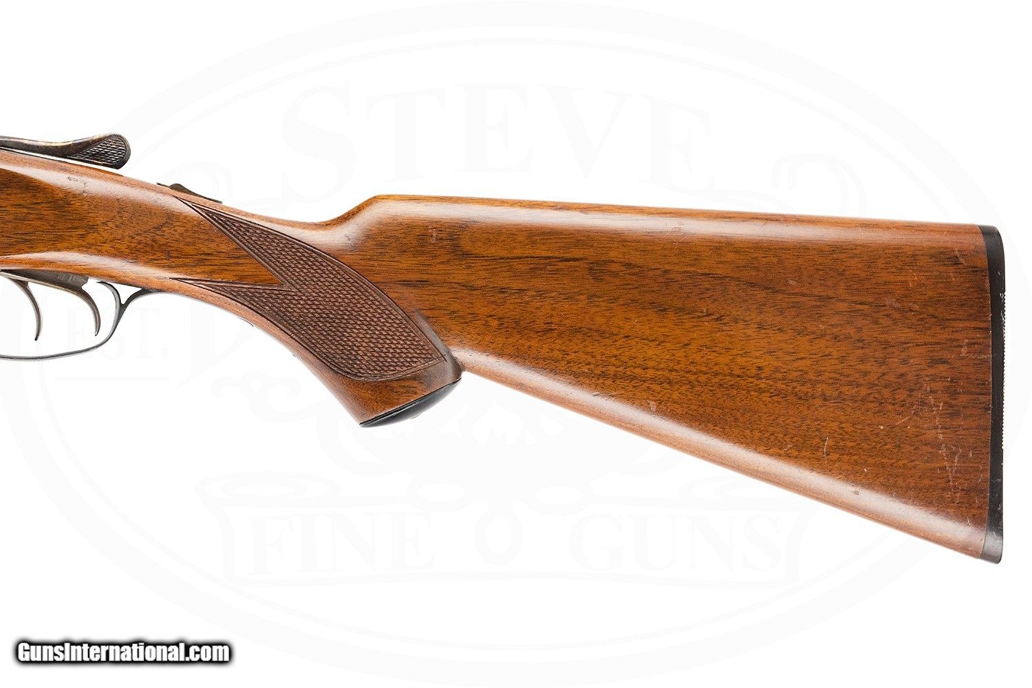 Description: SN# 264XXX MADE 1935 30" SOLID RIB BARRELS CHOKED MOD AND FULL (.015 AND .029 CONSTRICTIONS) 2 3/4" CHAMBERS DOUBLE TRIGGERS EXTRACTOR SPLINTER FOREARM PISTOL GRIP HARD RUBBER BUTT PLATE VERY GOOD TO EXCELLENT CONDITION - SOME LIGHT HANDLING TO WOOD AND METAL 6LBS 3 OZ 2 9/16" DAH 1 1/2" DAC 14 3/16" LOP SOLD |