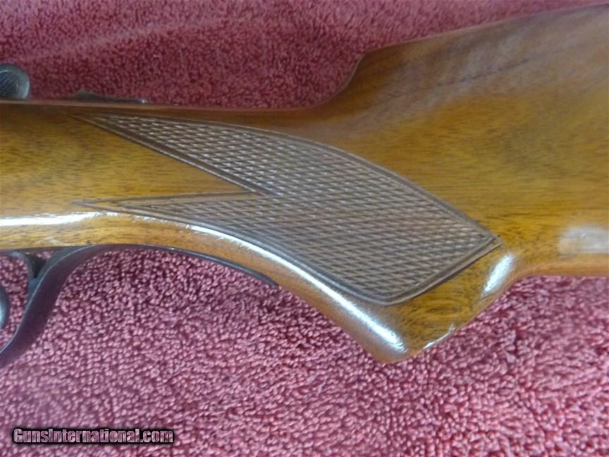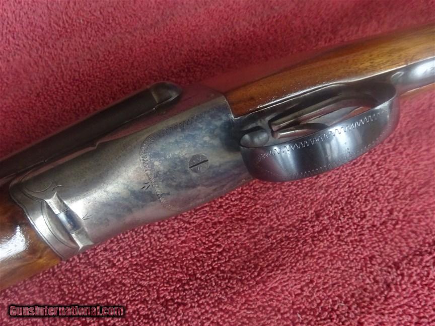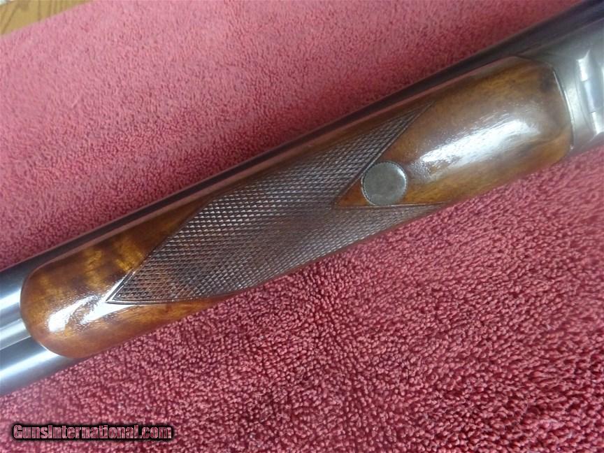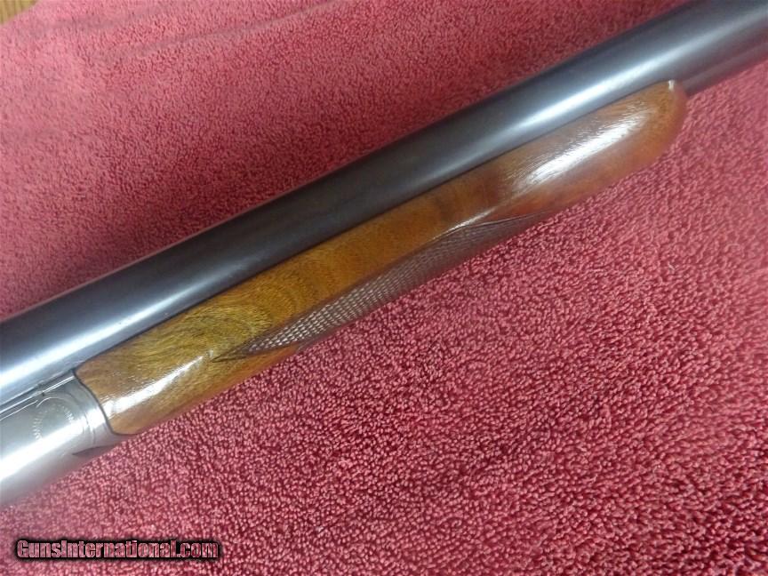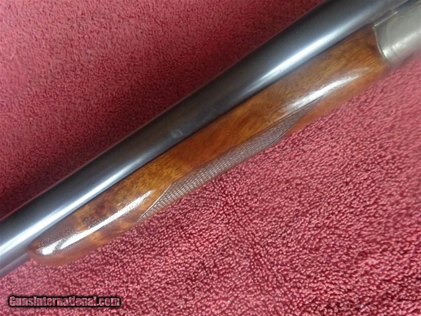Description: A H FOX, UTICA, STERLINGWORTH, 12 GAUGE, 28" BARRELS, NO. 4 WEIGHT, FULL AND MODIFIED, EXCELLENT, BRIGHT BLUE, MIRROR BORES. AUTOMATIC EJECTORS, 2 1/2" CHAMBERS. NICE VIVID CASE COLOR, 100% ORIGINAL TRIGGERGUARD BLUE, TOP LEVER TO THE RIGHT. PISTOL GRIP STOCK, SPLINTER FOREARM, EXCELLENT WOOD AND CHECKERING. GREAT DIMENSIONS 1 1/2" X 2 1/2" X 14 1/8", 7 POUNDS 2 OUNCES, VINTAGE RECOIL PAD. MADE IN 1935. NICE GUN. $1675.00 + $50.00 Insured shipping to an FFL address. We have hundreds of pieces of ORIGINAL gun company advertising & memorabilia available for sale. We have no reprints or reproductions. Email for more information. SOLD Curio/Relic: Yes |