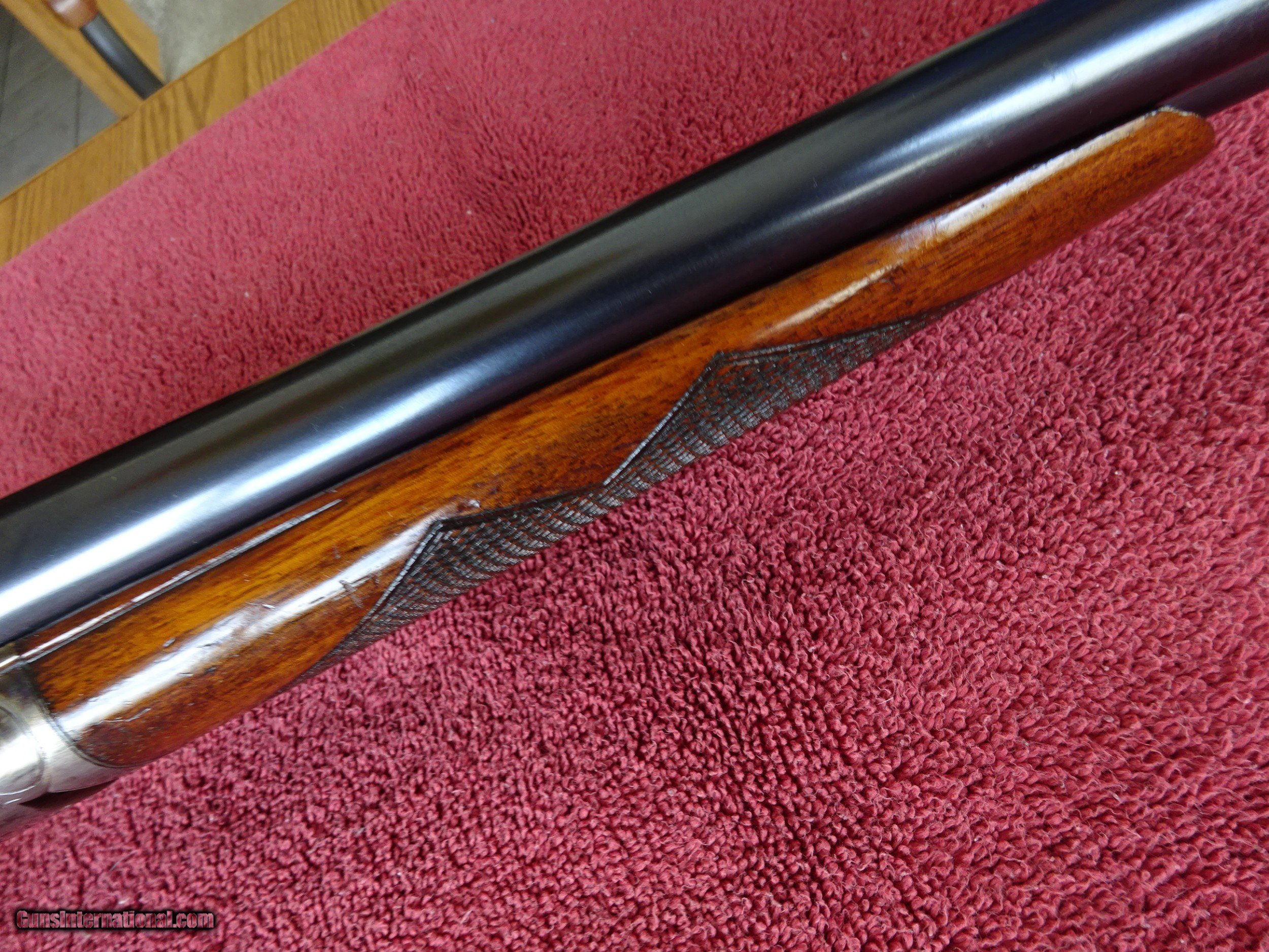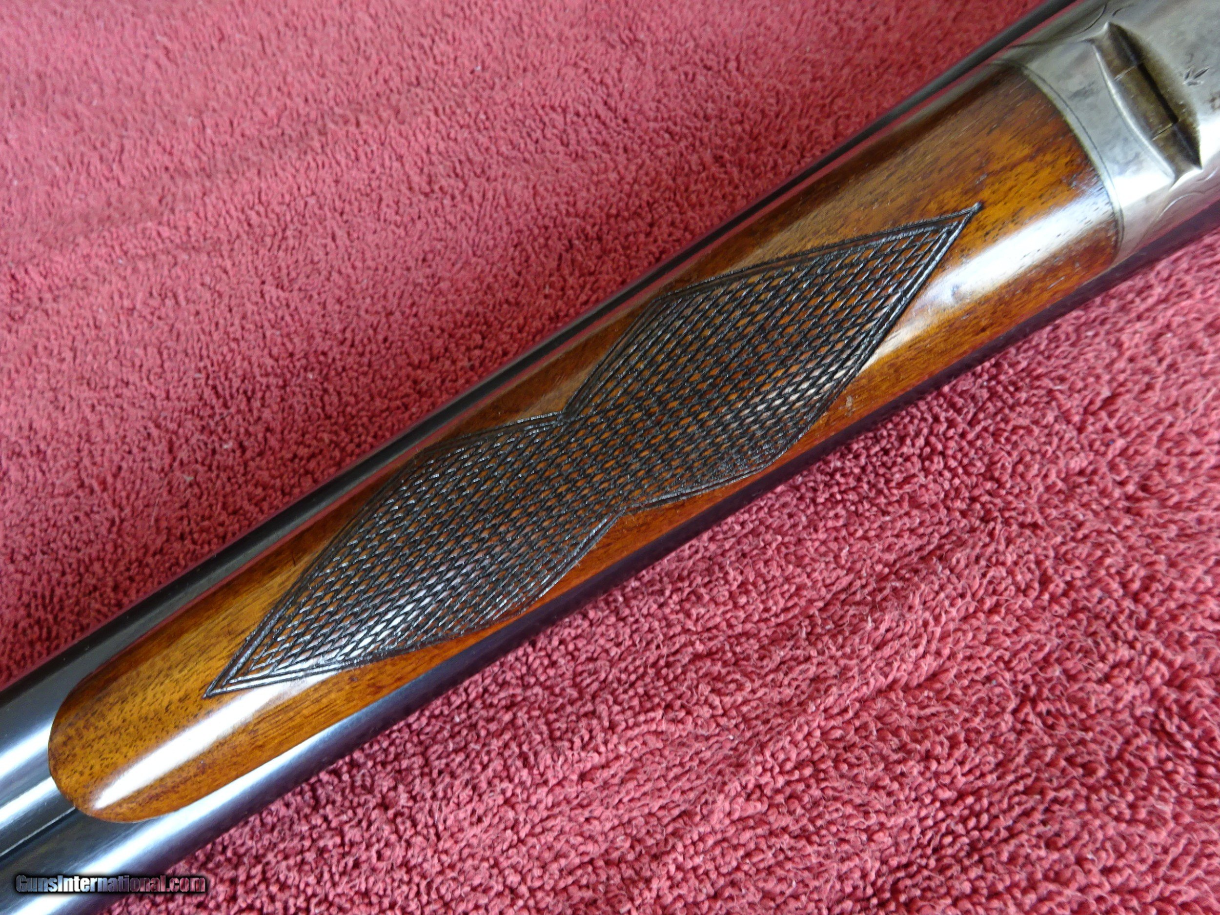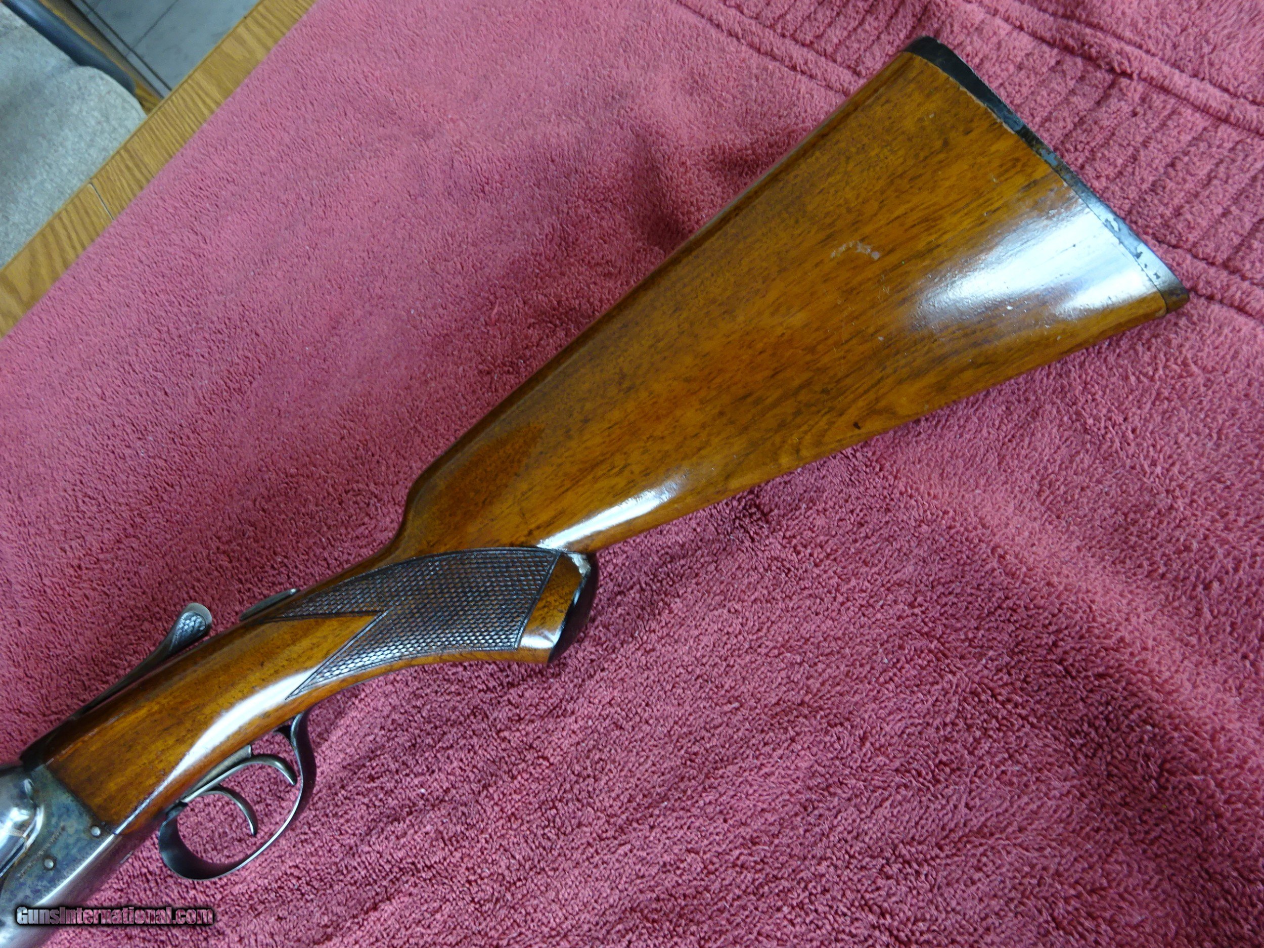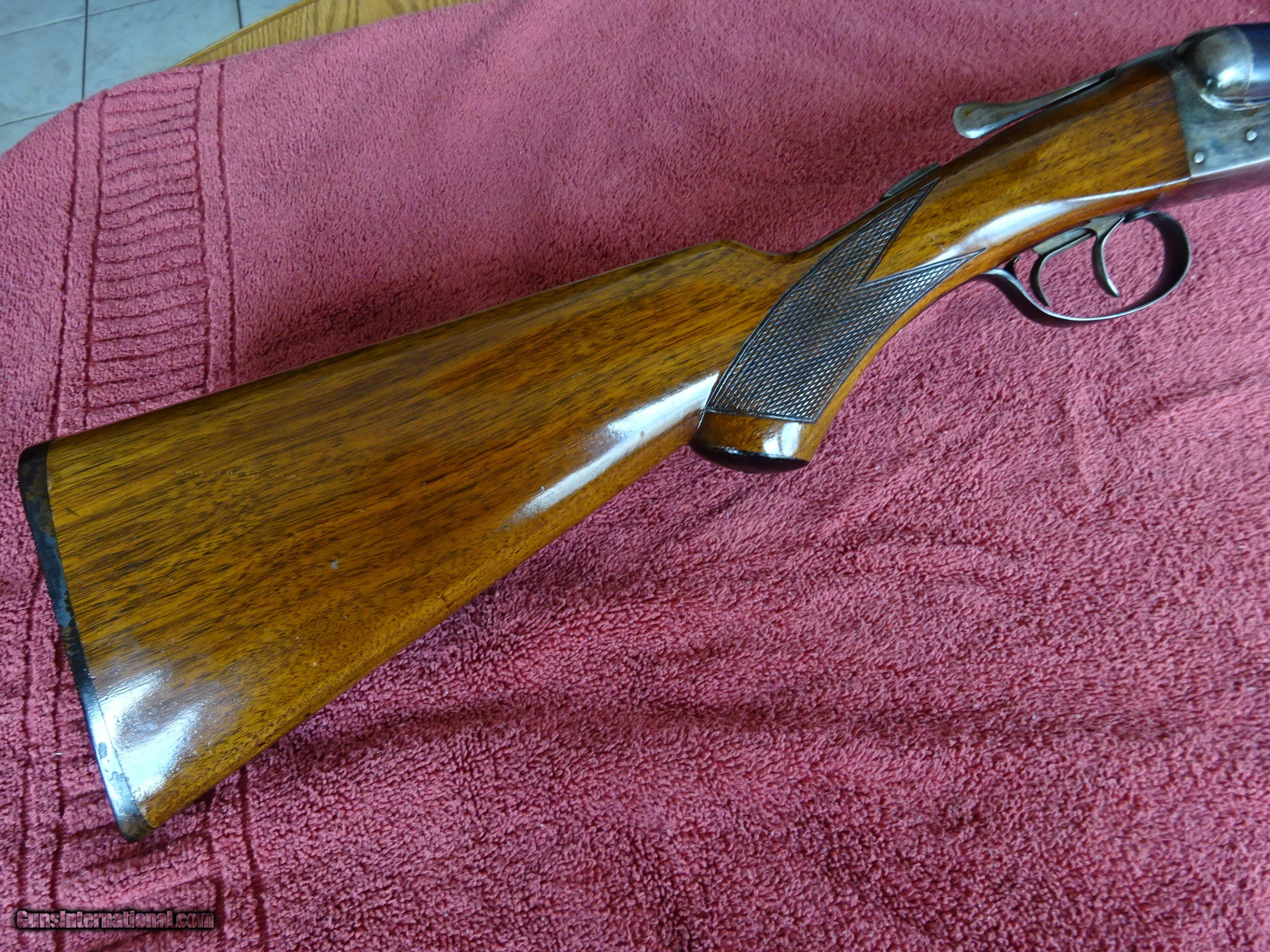 Description: A H FOX, PHIL., STERLINGWORTH 12 GUAGE. 28" NUMBER FOUR WEIGHT BARRELS, FULL AND IMP.MODIFIED, 2 1/2" CHAMBERS, MIRROR PERFECT BORES, EXCELLENT BRIGHT BLUE, BARRELS RING BEAUTIFULLY. GORGEOUS BOLD VIVID CASE COLOR - TOTAL COVERAGE INCLUDING BOTTOM. PISTOL GRIP STOCK, SPLINTER FOREARM, EXCELLENT WOOD AND CHECKERING, NORMAL HANDLING MARKS IN THE VARNISH. ORIGINAL GRIP CAP AND BUTTPLATE, 1 1/2" X 2 7/8" X 14 3/8", 7 POUNDS EVEN. TOP LEVER TO THE FAR RIGHT, TIGHT ON FACE, 99% TRIGGERGUARD BLUE, PERFECT SCREWS. EXCEPTIONAL ORIGINAL CONDITION, MADE IN 1929. $1675.00 + $50.00 Insured shipping to an FFL address. See all Pats listings We also have hundreds of pieces of ORIGINAL gun company advertising & memorabilia available for sale. We have no reprints or reproductions. Email for more information. SOLD Curio/Relic: Yes |