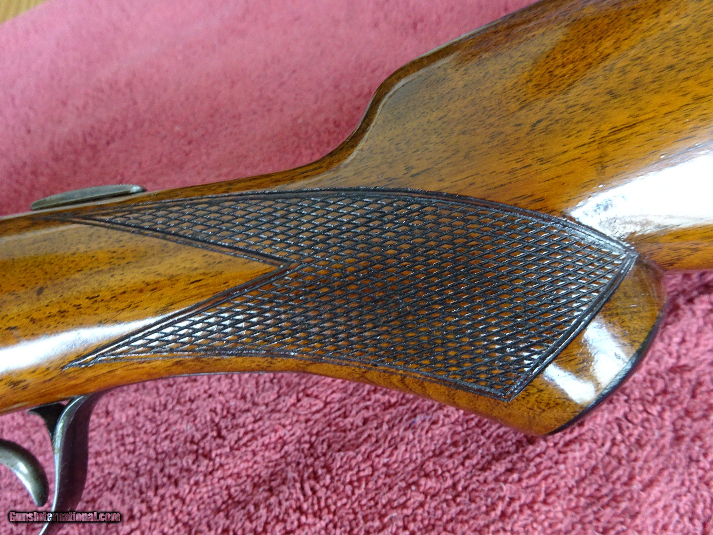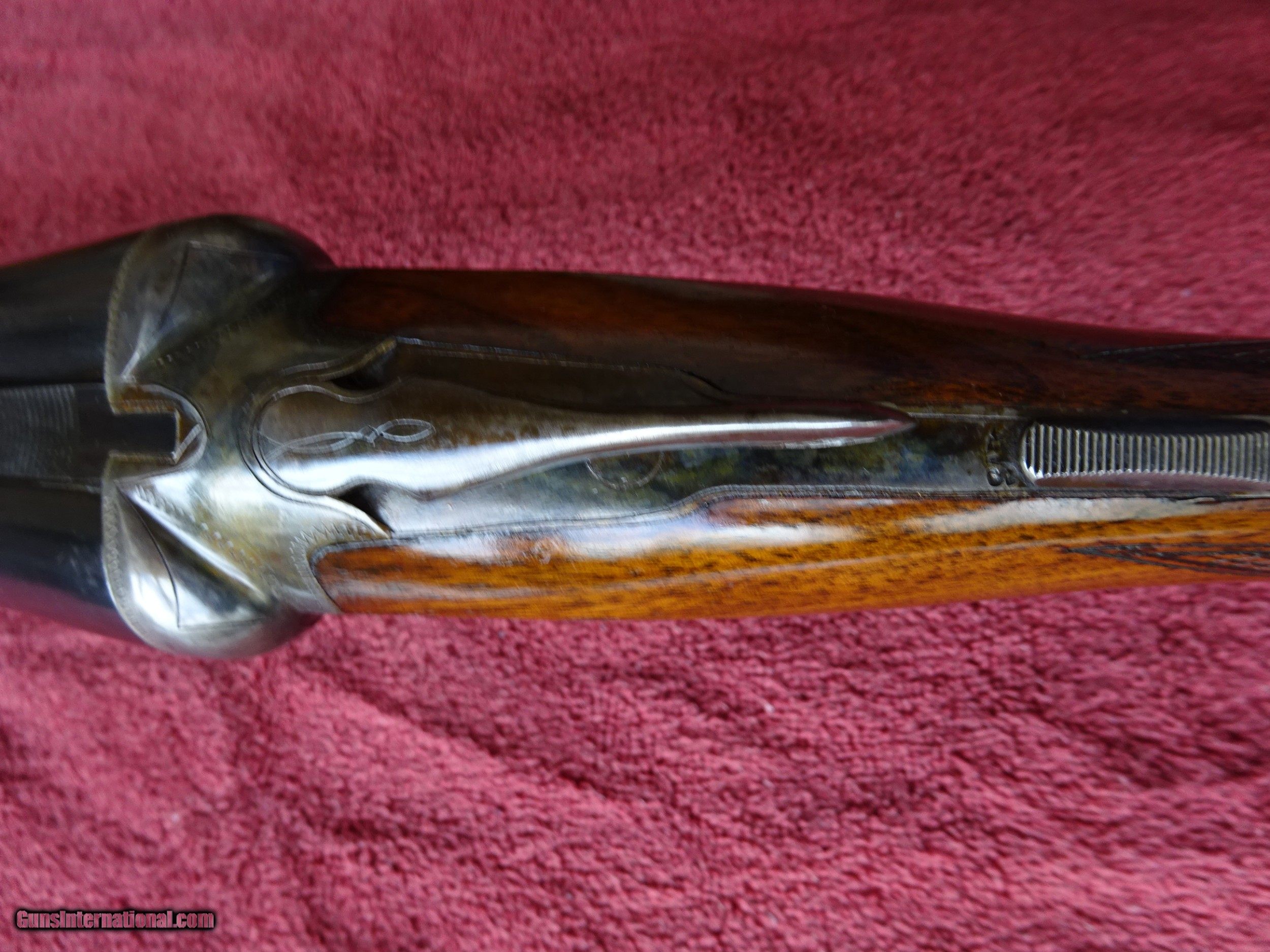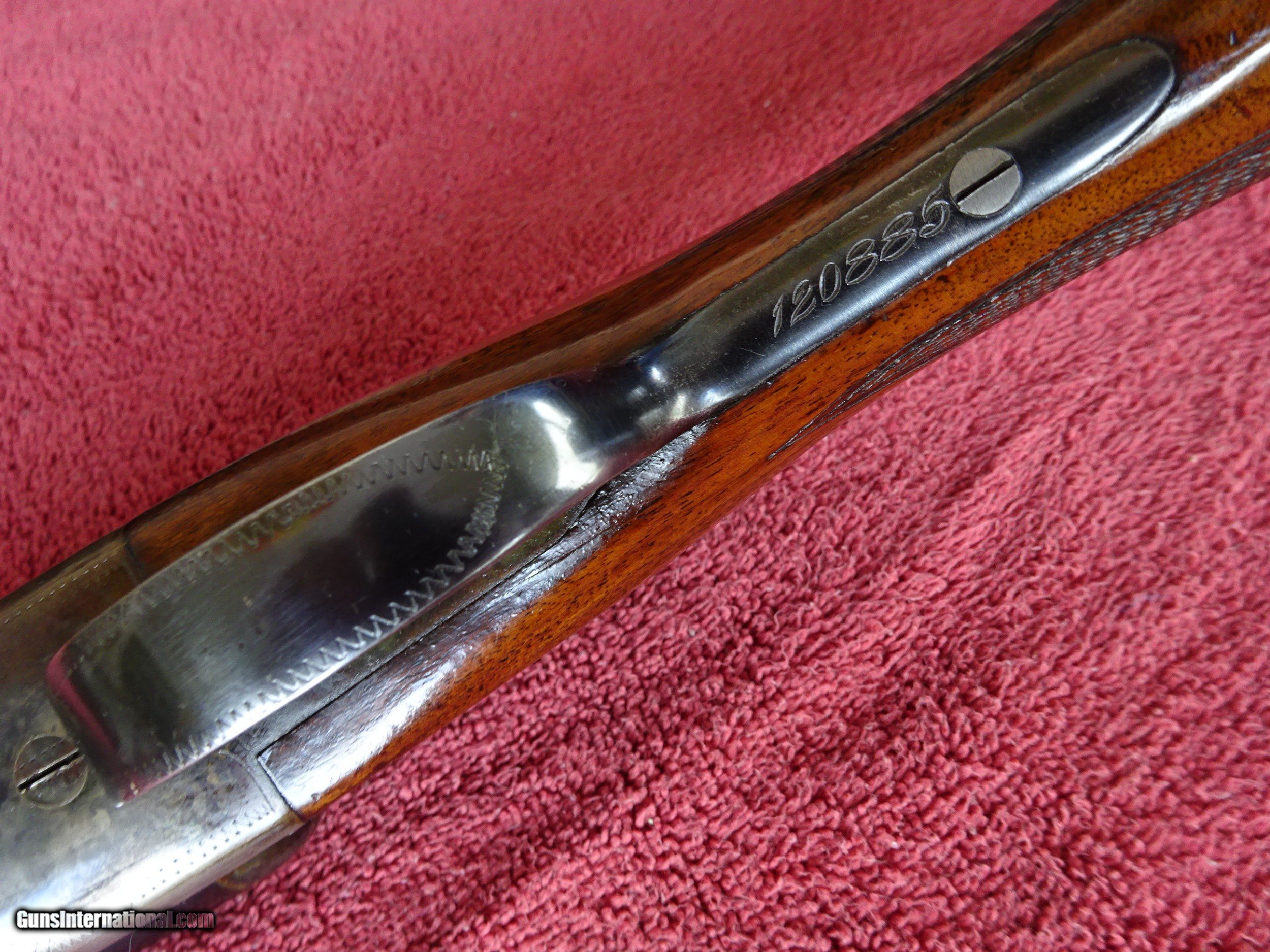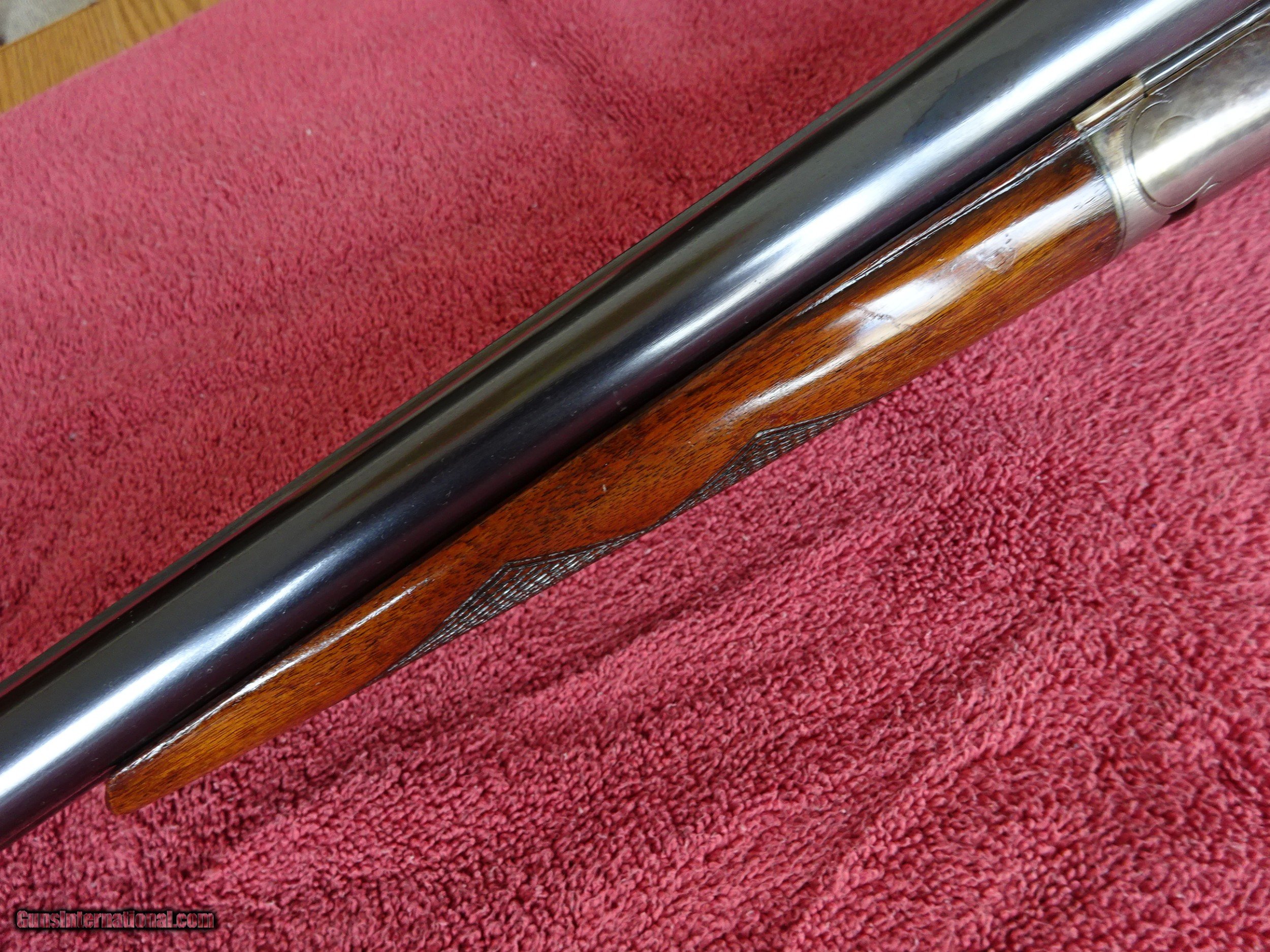 Description: A H FOX, PHIL., STERLINGWORTH 12 GUAGE. 28" NUMBER FOUR WEIGHT BARRELS, FULL AND IMP.MODIFIED, 2 1/2" CHAMBERS, MIRROR PERFECT BORES, EXCELLENT BRIGHT BLUE, BARRELS RING BEAUTIFULLY. GORGEOUS BOLD VIVID CASE COLOR - TOTAL COVERAGE INCLUDING BOTTOM. PISTOL GRIP STOCK, SPLINTER FOREARM, EXCELLENT WOOD AND CHECKERING, NORMAL HANDLING MARKS IN THE VARNISH. ORIGINAL GRIP CAP AND BUTTPLATE, 1 1/2" X 2 7/8" X 14 3/8", 7 POUNDS EVEN. TOP LEVER TO THE FAR RIGHT, TIGHT ON FACE, 99% TRIGGERGUARD BLUE, PERFECT SCREWS. EXCEPTIONAL ORIGINAL CONDITION, MADE IN 1929. $1675.00 + $50.00 Insured shipping to an FFL address. See all Pats listings We also have hundreds of pieces of ORIGINAL gun company advertising & memorabilia available for sale. We have no reprints or reproductions. Email for more information. SOLD Curio/Relic: Yes |