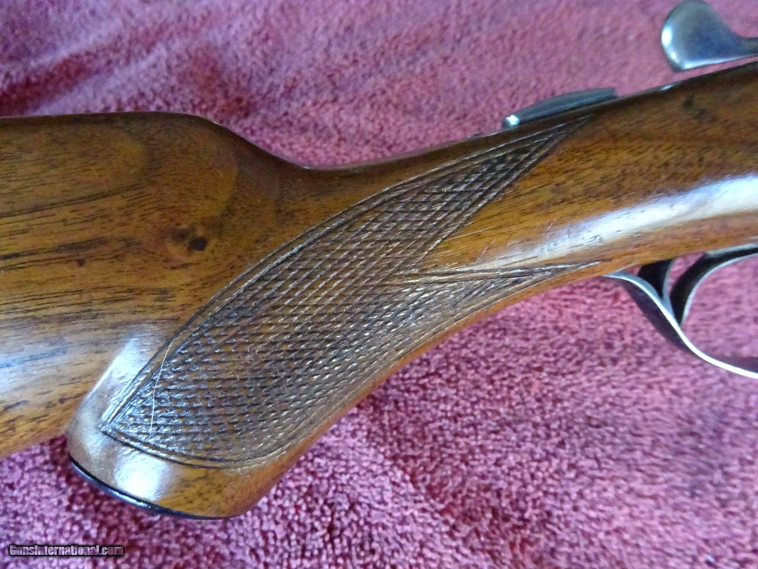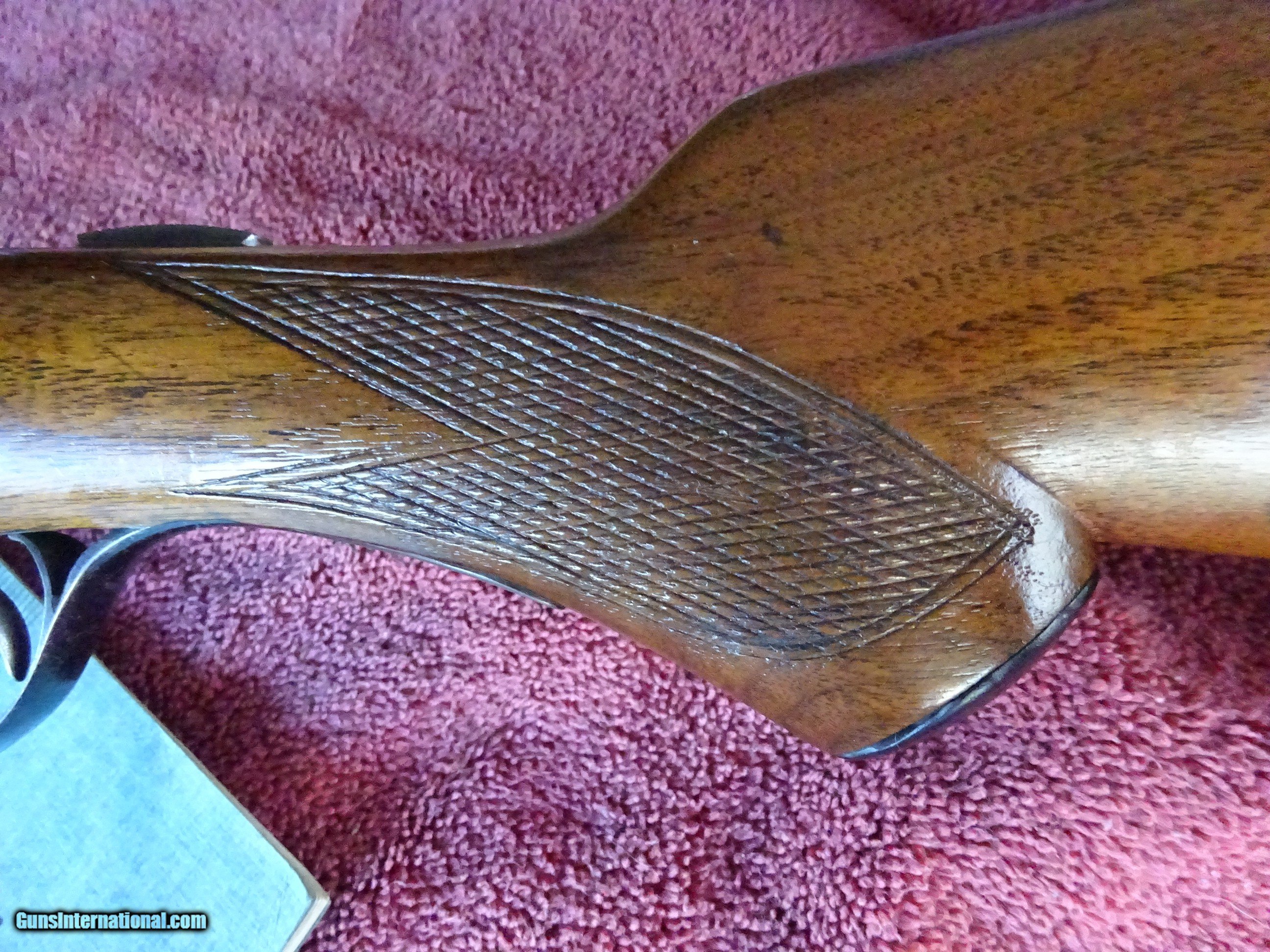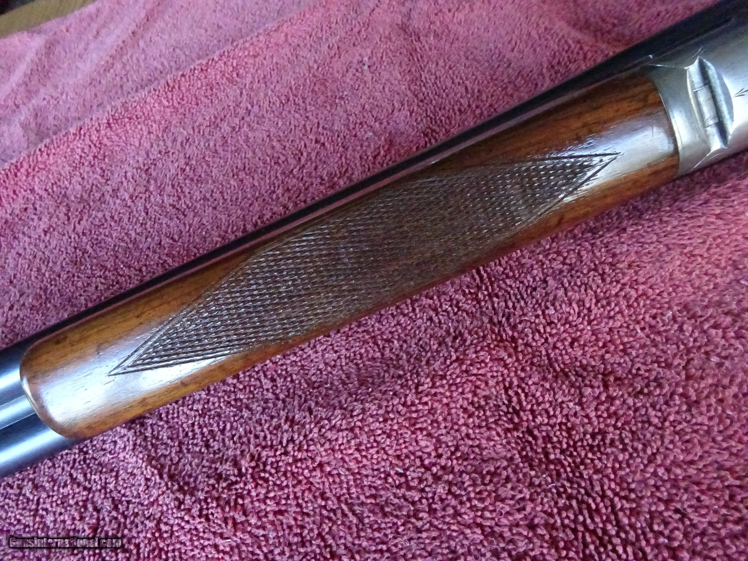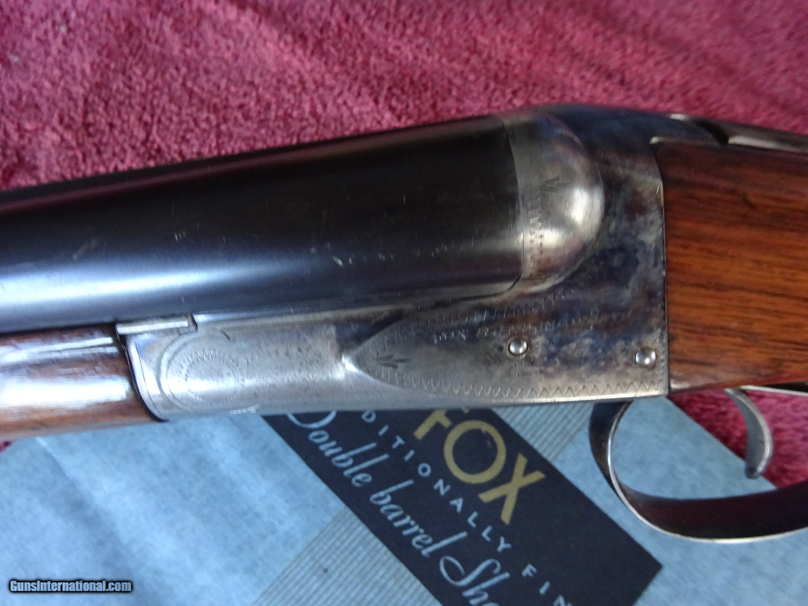 Description: A H FOX, UTICA, DELUXE STERLINGWORTH 20 GAUGE. NUMBER 4 WEIGHT 28" SPECIAL ALLOY - FORGED STEEL BARRELS, MODIFIED AND FULL, 2 3/4" CHAMBERS. EXCELLENT BRIGHT ORIGINAL BLUE, MIRROR BRIGHT BORES, TWIN BEAD SIGHTS, BARRELS RING LIKE A BELL. BOXLOCK FRAME WITH EXCELLENT VIVID CASE COLOR. PISTOL GRIP STOCK, SPLINTER FOREARM, VERY GOOD WOOD AND CHECKERING. CORRECT JOSTAM VENTED PAD, 1 1/2" X 2 1/2" X 14 1/4", 6 POUNDS 1 OUNCE. INCLUDES 1930s ORIGINAL FOX CATALOG ILLUSTRATING THE DELUXE STERLINGWORTH. $2150.00 + $70.00 Insured shipping to an FFL address. Layaway is available. See all Pats gun listings on this site! We also have hundreds of ORIGINAL gun company advertising & memorabilia pieces available for sale on our site SPORTINGCOLLECTIBLES. We have no reprints or reproductions. Email for more information. If you need to call, morning or evening is best, and please note the Seller's Inventory number. SOLD Curio/Relic: Yes |