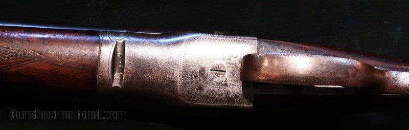 Description: AH FOX PHILA. VERY RARE 1ST YR PRODUCTION STERLINGWORTH 20GA S/S SHOTGUN, 1913 MFG DATE, BORDER SCROLL WITH TRACES OF CASE COLOR, 26" BBLS, 2 1/2 PROOFS, LM/IM, RAISED GAME RIB, EXTRACTORS, DBL TRIGGERS, MEDIUM DARK COLOR STREAKED WALNUT, PISTOL GRIP, SPLINTER FOREND, LOP 14", 1 5/8, 3", 6LBS, TIGHT ACTION, 98% ORIGINAL BLUE, PATINA WITH TRACES OF CC, WOOD 96%, ORIGINAL FINISH, NO CRACKS. SOLD Shotgun Gauge: 20 Gauge Manufacturer: AH FOX PHILA Model: 1ST YR PRODUCTION STERLINGWORTH Bore: 20GA Chambers: 2 1/2 Ejectors: EXTRACTORS Condition: 98%! Action: S/S Triggers: DBL TRIGGERS Stock: MED DARK COLOR STREAKED WALNUT, PISTOL GRIP Fore End: SPLINTER FOREND LOP: LOP 14", 1 5/8, 3 Rib: RAISED GAME RIB Weight: 6LBS Chokes: LM/IM Engraving: BORDER SCROLL WITH TRACES OF CASE COLOR Item Location: SAFARI OUTFITTERS LTD. 2517 ROUTE 44 SALT POINT, NY 12578 |
