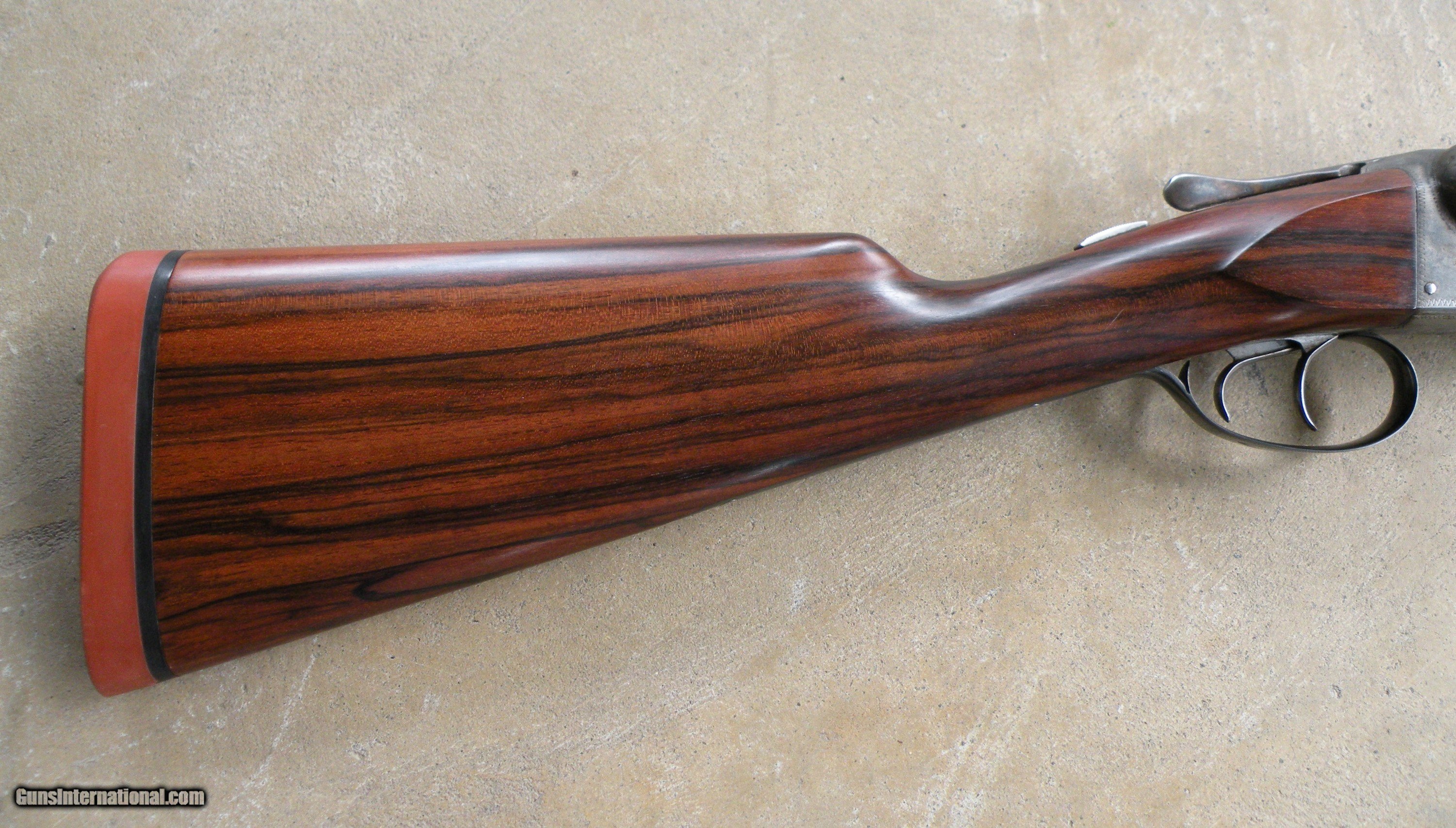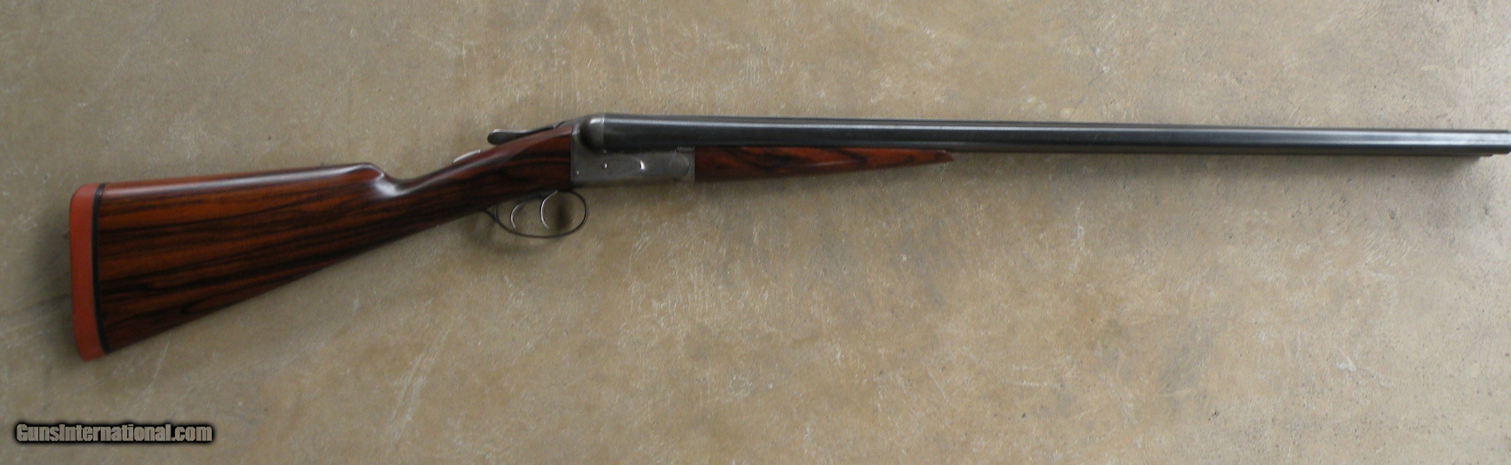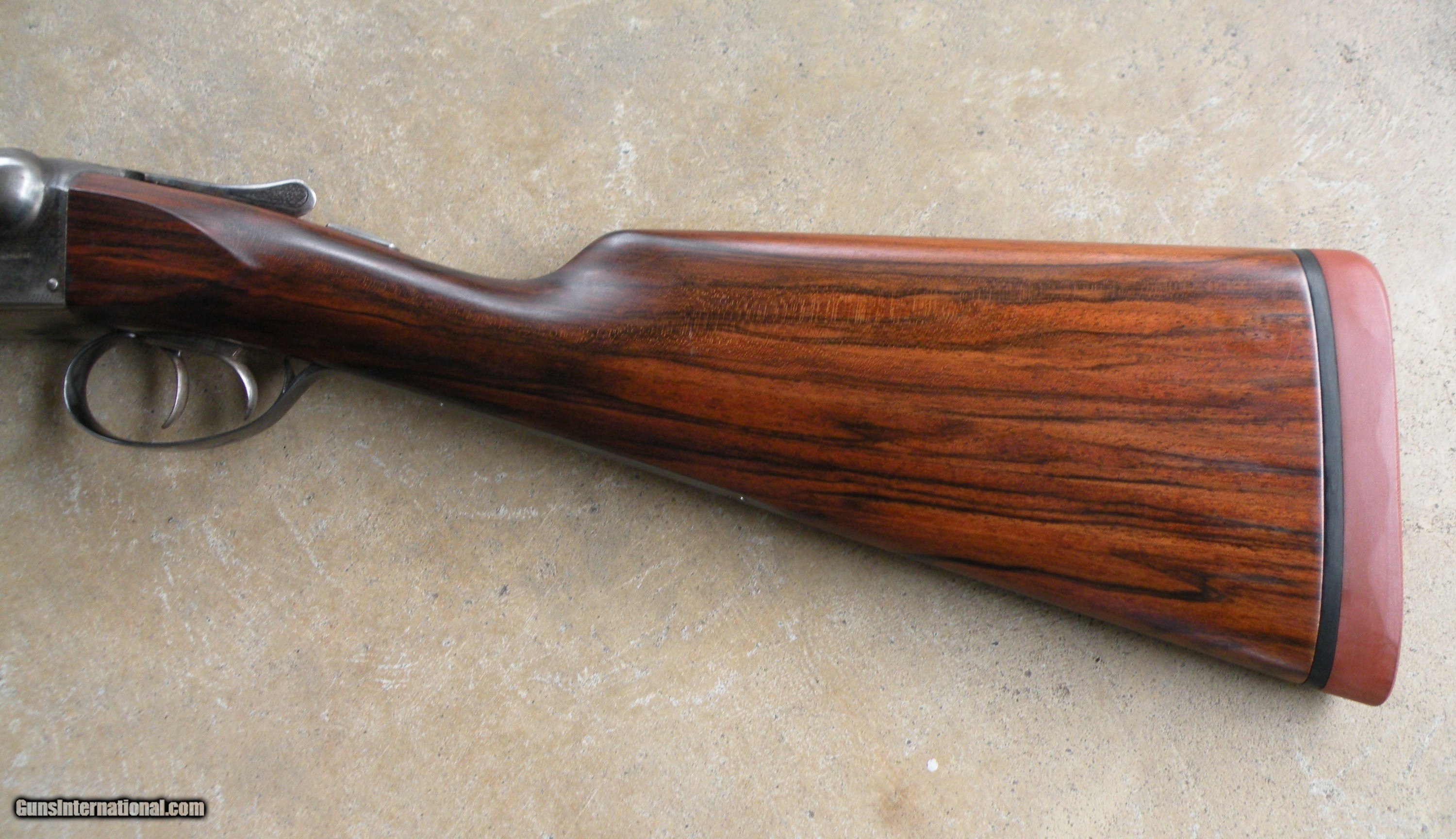 Description: AH Fox Sterlingworth 12 ga. 28 inch extractor barrels choked mod. and full with mirror bores, 2 3/4 inch chambers. Double triggers. no auto safety. Straight grip English walnut stock, no checkering. 14 1/2" x1 1/2'x 2 1/4' with 1/4" cast off. 1 inch Pachmeyer pad and 1/2 inch fitted pad for cold weather clothing. Pac can be changed with a 5/32 inch hex wrench. weight 7 lb. 8 1/2 oz. SOLD Curio/Relic: Yes |