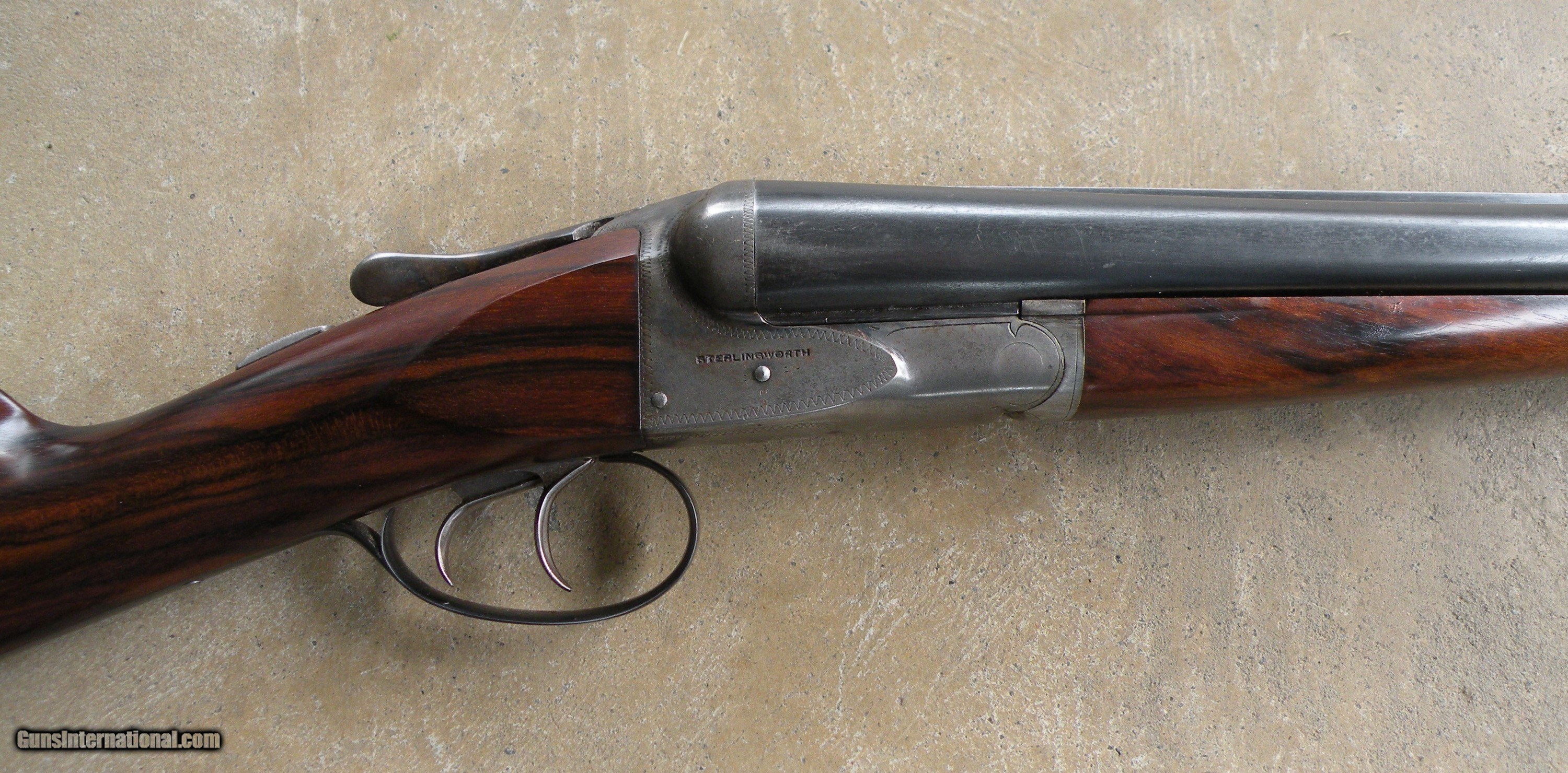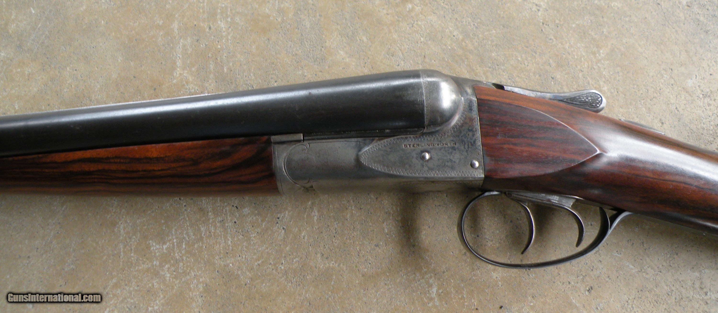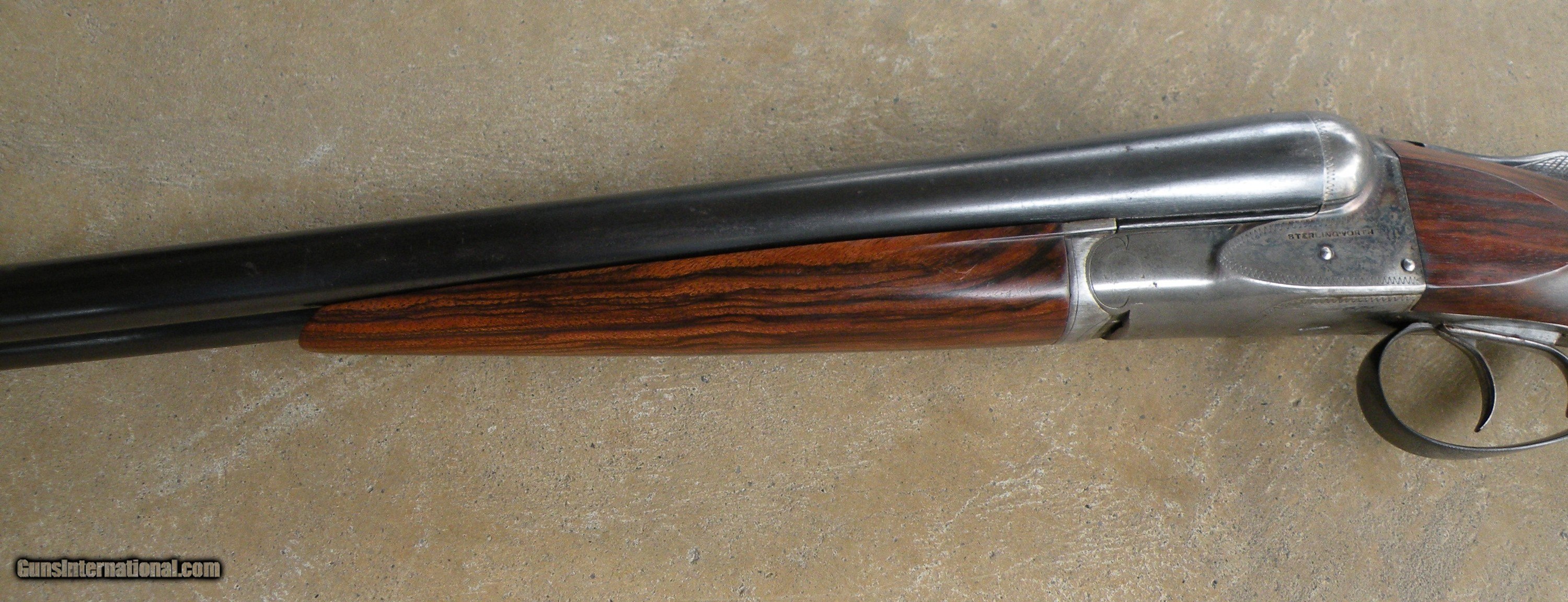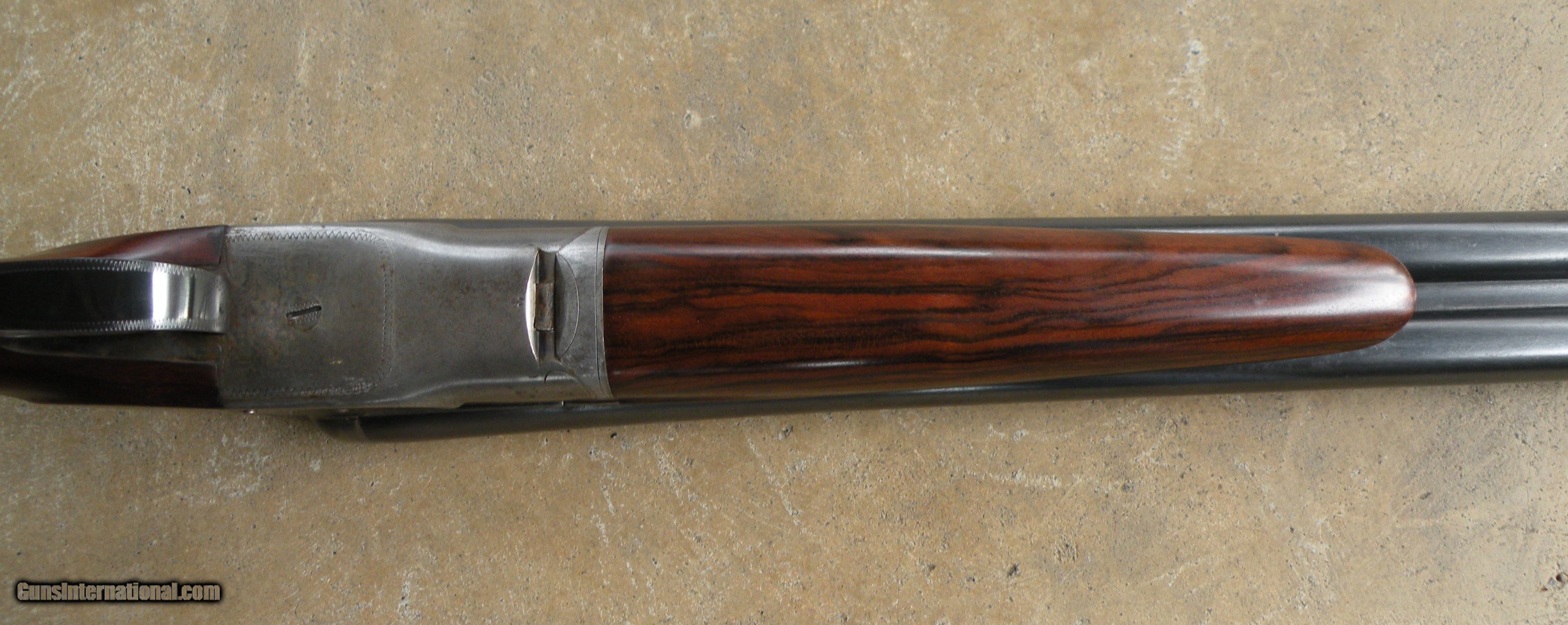 Description: AH Fox Sterlingworth 12 ga. 28 inch extractor barrels choked mod. and full with mirror bores, 2 3/4 inch chambers. Double triggers. no auto safety. Straight grip English walnut stock, no checkering. 14 1/2" x1 1/2'x 2 1/4' with 1/4" cast off. 1 inch Pachmeyer pad and 1/2 inch fitted pad for cold weather clothing. Pac can be changed with a 5/32 inch hex wrench. weight 7 lb. 8 1/2 oz. SOLD Curio/Relic: Yes |