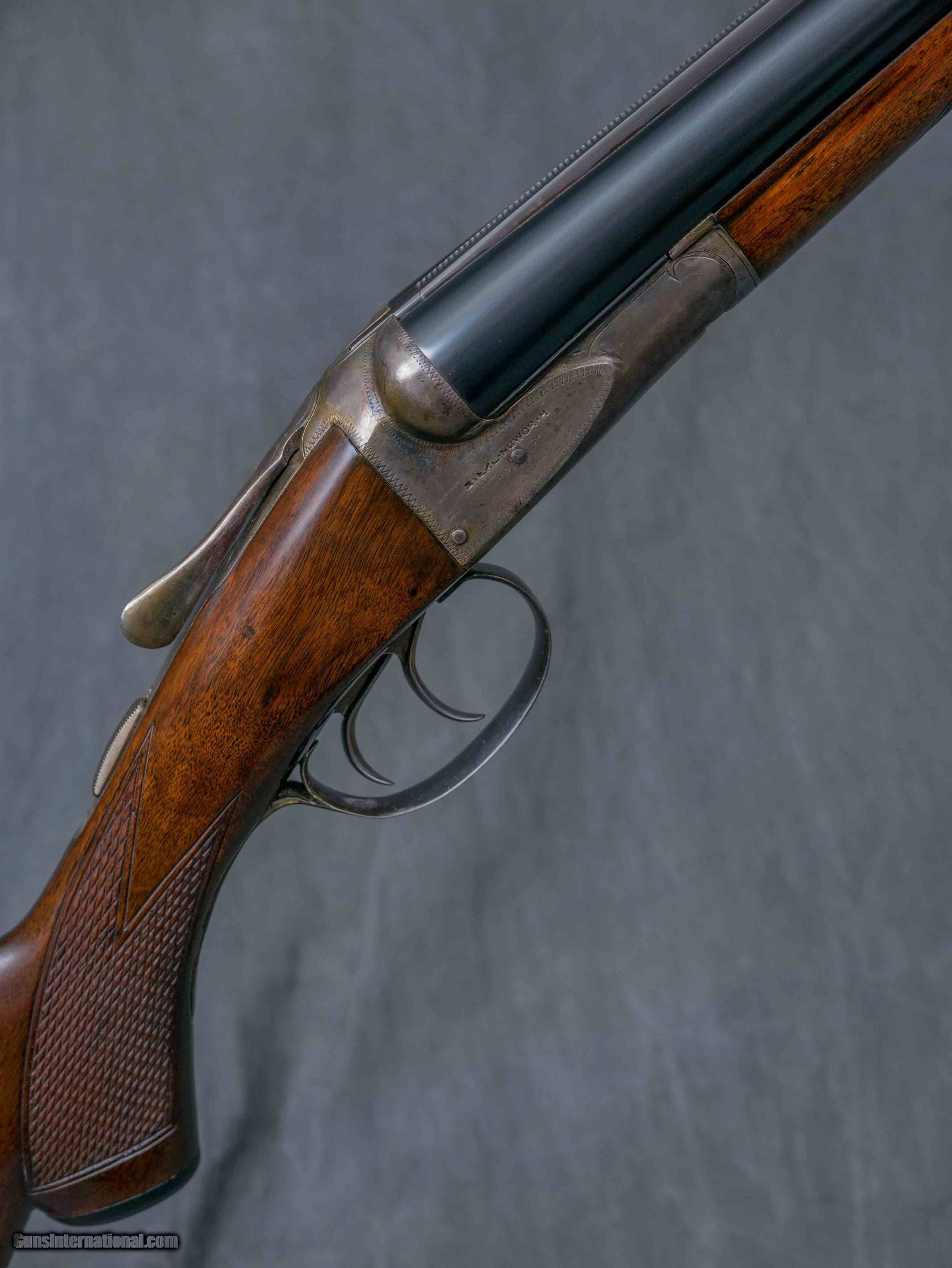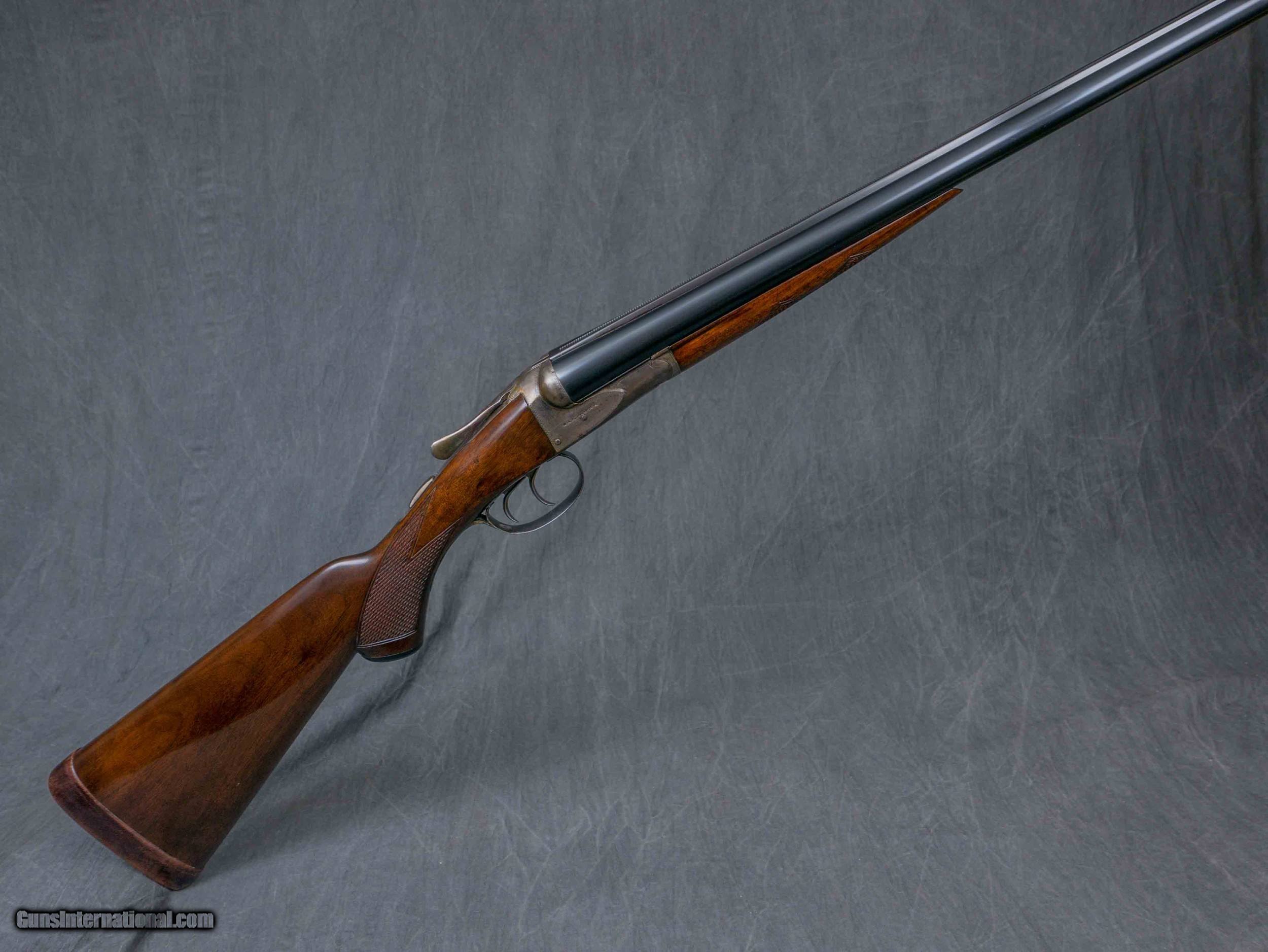 Description: A H FOX Model:STERLINGWORTH Gauge:16 Barrel Length:28" Chambers:2 9/16" Rib Design: MATTED CONCAVE, Weight:6 lb., Bore/Chokes Right:.661 / .014 /M & Left:.660 / .024 / F, Stock Dimensions: Drop At Comb:1 5/8", Drop At Heel:3 1/8", Cast At Heel:0", Length Of Pull:14 3/4" Special Features: Case hardened boxlock action Double triggers Extractors Automatic safety Capped semi-pistol grip stock w/ leather-covered pad Splinter forearm Made in Philadelphia, PA Condition: Excellent Circa:1928 SERIAL #363870 Number:C8472 Price: $2495 SOLD |