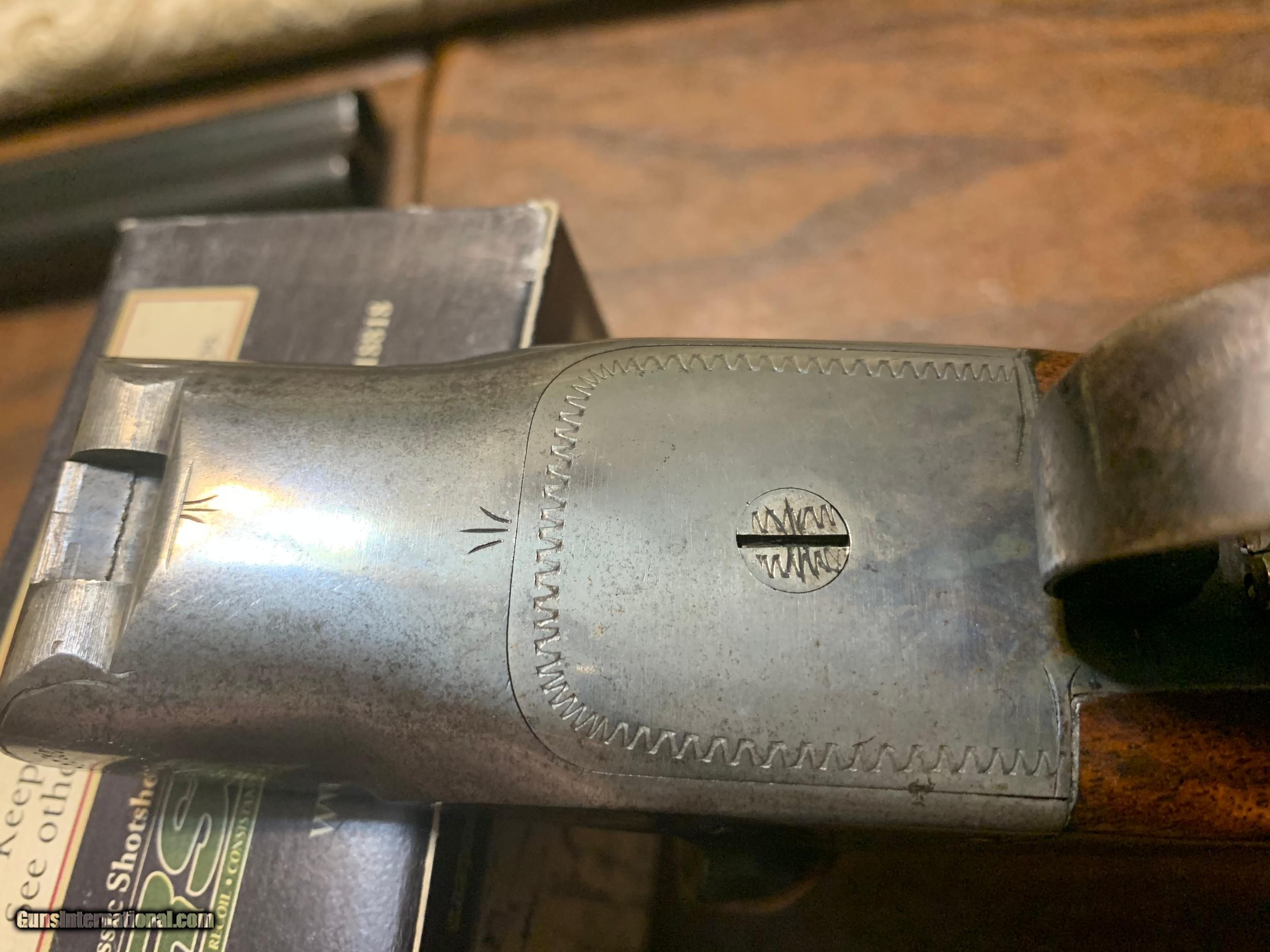 Description: Very Good condition Fox Sterlingworth 16ga with hard to find modern stock dimensions, solid case colors, and very good blue. This Fox has seen little use is tight and on the face. The 28 inch barrels are #3 weight with very good bores. This gun has been stripped, cleaned, lubricated reassembled, test fired and is ready to hunt. Although there is currently a .6 Pachmayr Old English pad installed the stock is uncut and measures 14 1/16 LOP to the end of the wood. As such the length of pull dimension is easily adaptadle up to 15 1/6 LOP with a 1in pad. We offer recoil pad fitting at a labor cost of $60.00 plus the price of the desired pad and choke alterations for $60.00 per choke at the time of the completed sale. customstocksandsteel SOLD Manufacturer: AH Fox Model: Sterlingworth Serial Number: 357214 Barrel Length: 28 Bore: .665 Chambers: 2 5/8 Ejectors: extractor Condition: very good Metal Condition: very good Wood Condition: very good Bore Condition: Very Good Barrel Type: Sterlingworth fluid steel Gauge Info: 16ga Stock Comb: 1 7/16 Stock Heel: 2 7/16 Stock Cast: 1/16 cast off Butt Pad: Pachmayr Old English LOP: 14 5/8 Choke Left: .030 Full Choke Right: .011 Skeet II |