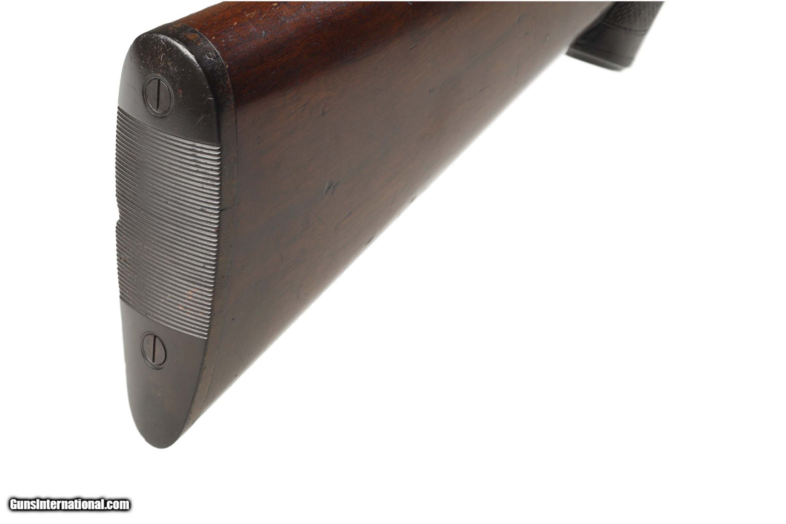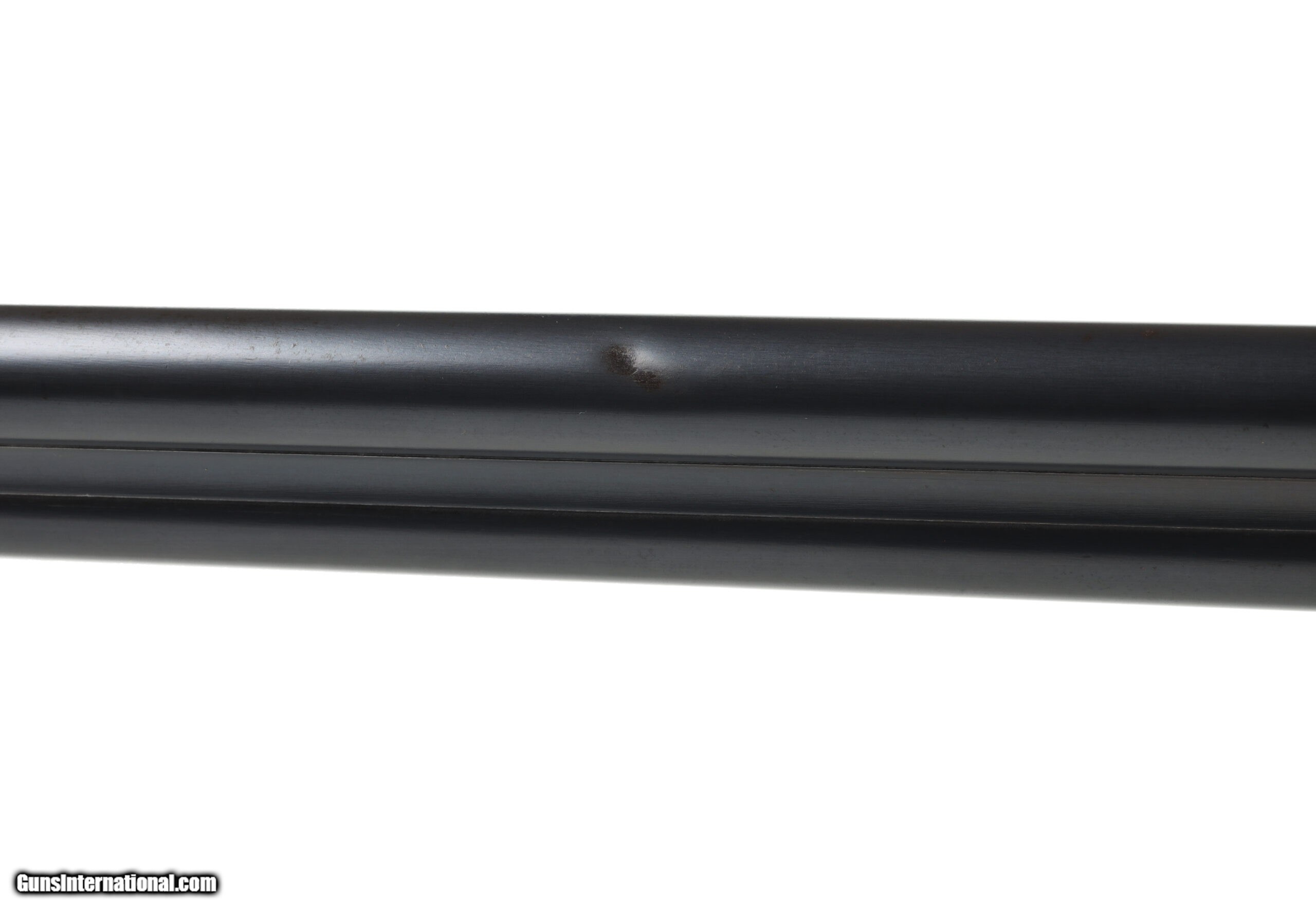 Description: This AH Fox Sterlingworth has good overall external metal condition, with only light spots of superficial corrosion on the barrels and a small dent on the left barrel. The locks function well and lockup is fair to good with a slight wobble to the barrels when the forend is removed. The right ejector is removed from the forend iron and will need replacement and timing. The stocks are in fair to good condition with the only major issues being a chip in the forend and minor oil saturation in the heading of the stock causing a small amount of setback. Manufactured in: USA Hand: Right Hand Action Finish: Case Colored Metal Finish: Original Barrel Length: 28 Inches Barrel Condition: Good Stock Finish: Original Stock Condition: Good Type of Butt: Factory Plate Grip: Pistol Forend: Checkered Splinter Cast Amount: 1/16" SOLD Manufacturer: AH Fox Model: Sterlingworth Ejector Chambers: 2 1/2 Ejectors: Yes Condition: Preowned Metal Condition: Good Action: Side by Side Triggers: Double Gauge Info: 20 Gauge Stock Comb: 1 5/8 Stock Heel: 3 Inches Stock Cast: Off Fore End: Checkered Splinter LOP: 13 7/8 Rib: Matted Game Rib Finish: Original Weight: 5.5 lbs Chokes: M/F Case: NONE |
