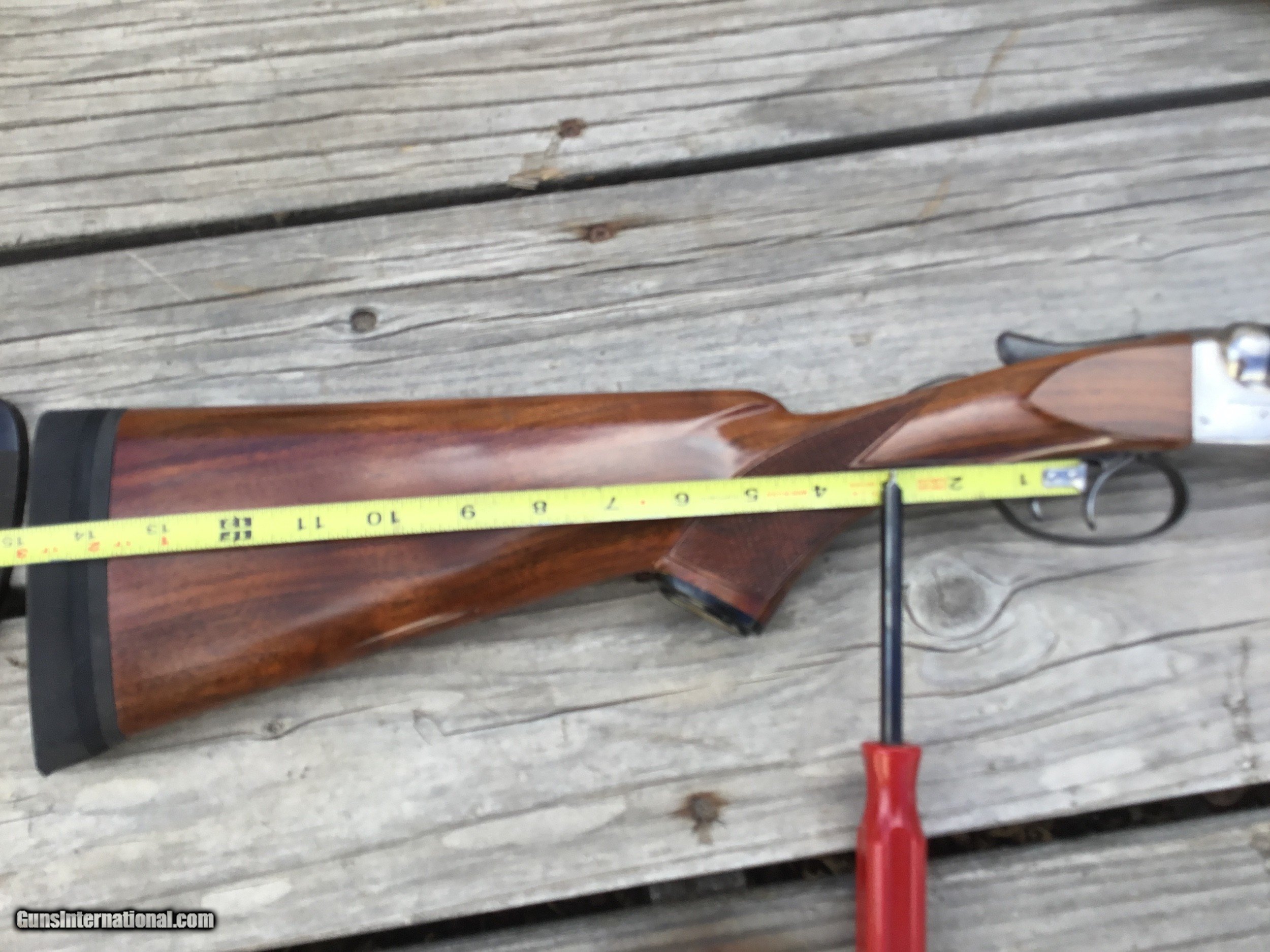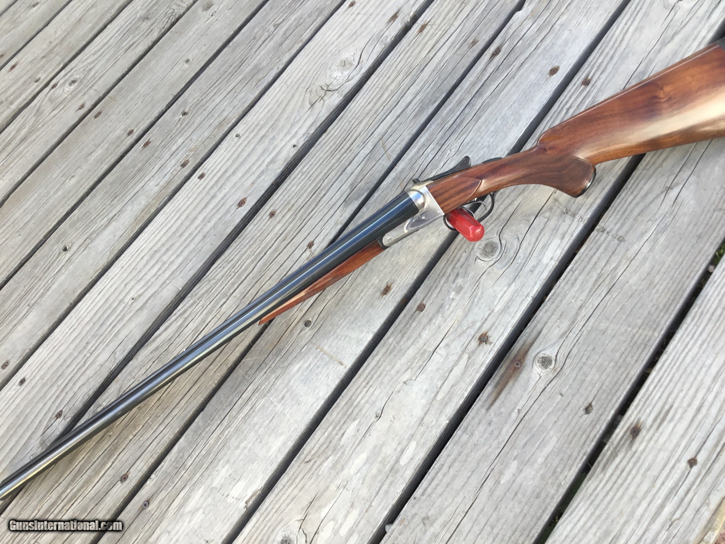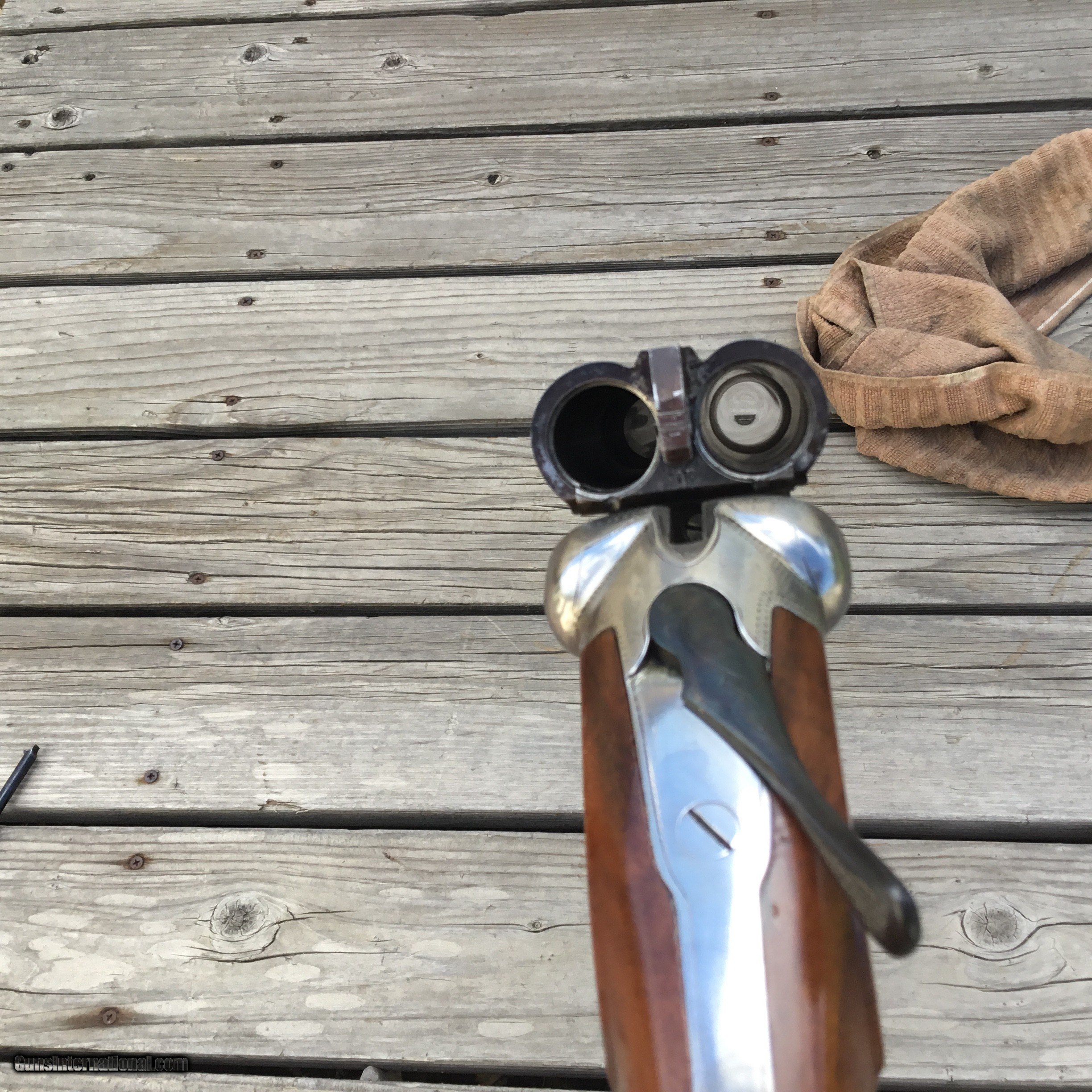 Description: 16 gauge with 26" barrels. Very light weight at exactly 6lbs 3.4 oz per my postal scale. I've been told that the AH Fox 16s of this era were built on 20 ga frames and it feels like a twenty in hand. I don't shoot it well, I can't get enough length for my ape-like arms and it's a bit low in the comb. This gun will however make an outstanding upland gun for the right shooter. Refinished at some point and looks near new. Length of pull is just shy of 15". The stock was never shortened or cut but a Pachmayr Decellerater was added to get the near 15" length and I still have the original butt plate that can be installed to reduce the length by 1". I cannot find choke markings but my best guess is IC on the right and light full on the left. I have had the chamber checked and at some point it was lengthened to accommodate 2 3/4" shells which I have shot several boxes through it with no issues. Mirror bores. Tight lock up and the lever is still slightly right of center for another lifetime of shooting. Feel free to ask questions. I can take credit card payment through Guntab. Payment can also be made by money order or cashiers check. Shipping will be a flat $40. Be sure your FFL will receive a gun from a non-FFL. Excellent shotgun in fantastic condition. Gun is also for sale locally. Shoot me an offer, may consider trades. SOLD Shotgun Gauge: 16 Gauge Manufacturer: AH Fox Model: Sterlingworth Barrel Length: 26 Bore: 16 Chambers: 2 3/4 Ejectors: No Condition: Excellent Metal Condition: Very good Wood Condition: Excellent Bore Condition: Excellent Action: Boxlock Triggers: Double Stock Comb: 1 5/8” Stock Heel: 2 3/4” LOP: -15” Weight: 6# 3.4 oz Manufacture Date: 1919 |