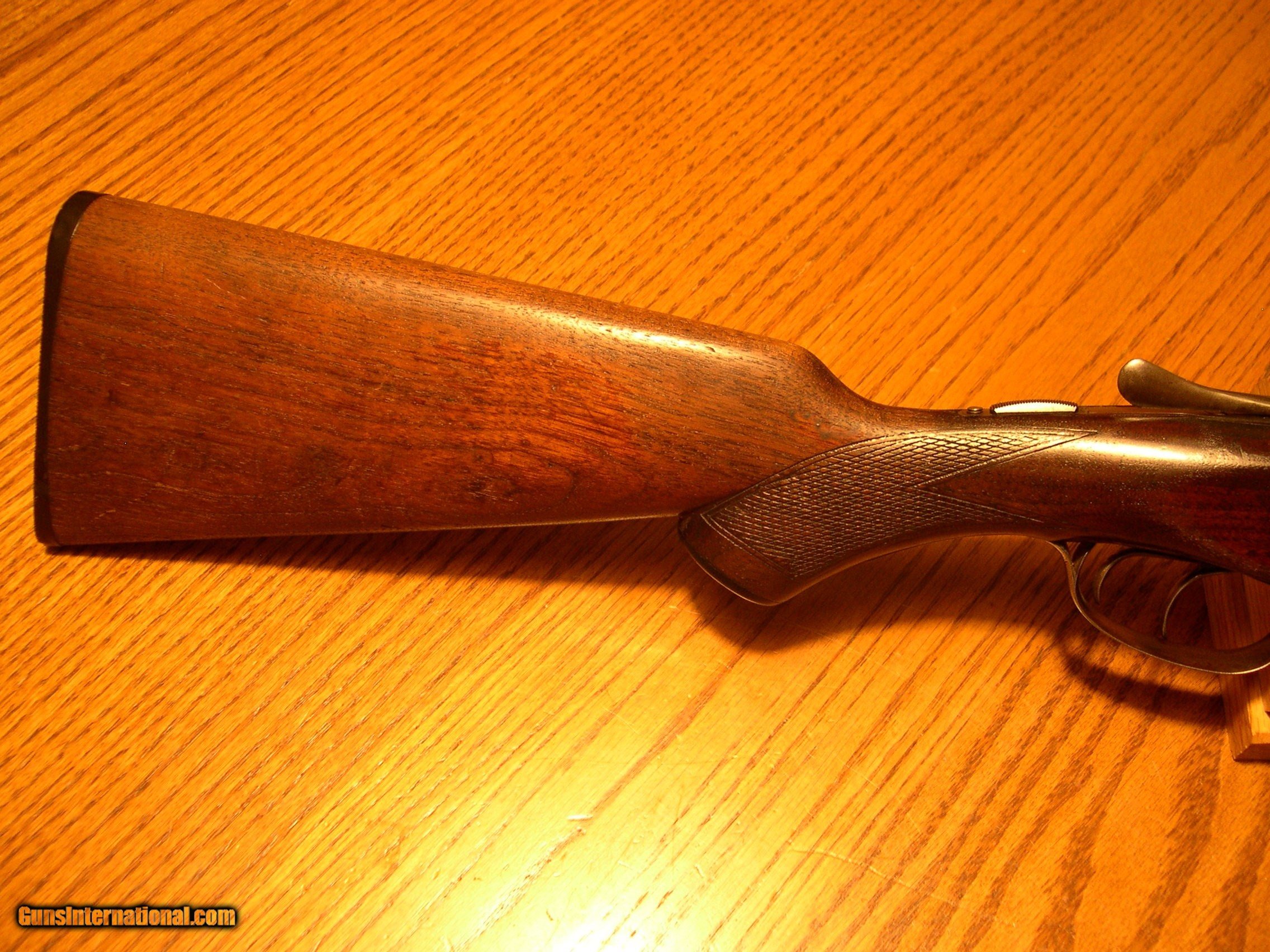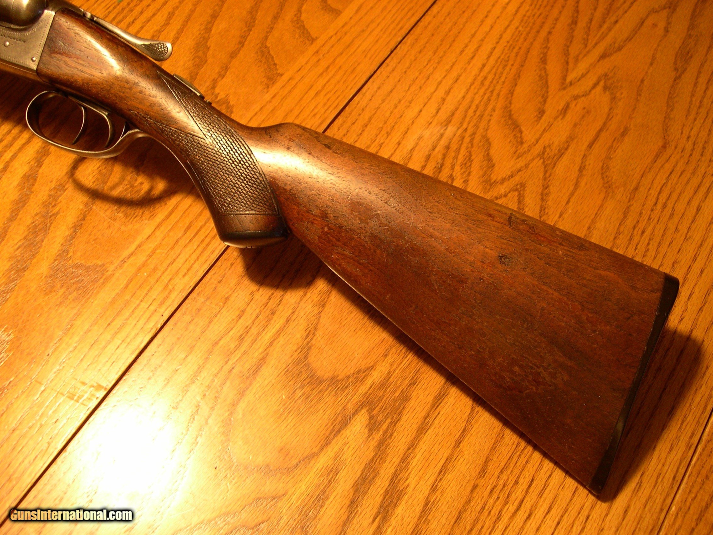 Description: Made in Phila. 12 ga w/ EJECTORS, EXC Bores and very tight with lever to right, 30" F&M chokes start 5" from end of barrel, DAC 2 1/4" DAH 3 1/8" 14 1/8" LOP to original BP. no dents or cracks, original varnish starting to flake off, never redone!! A lot of life left in this one! SOLD |