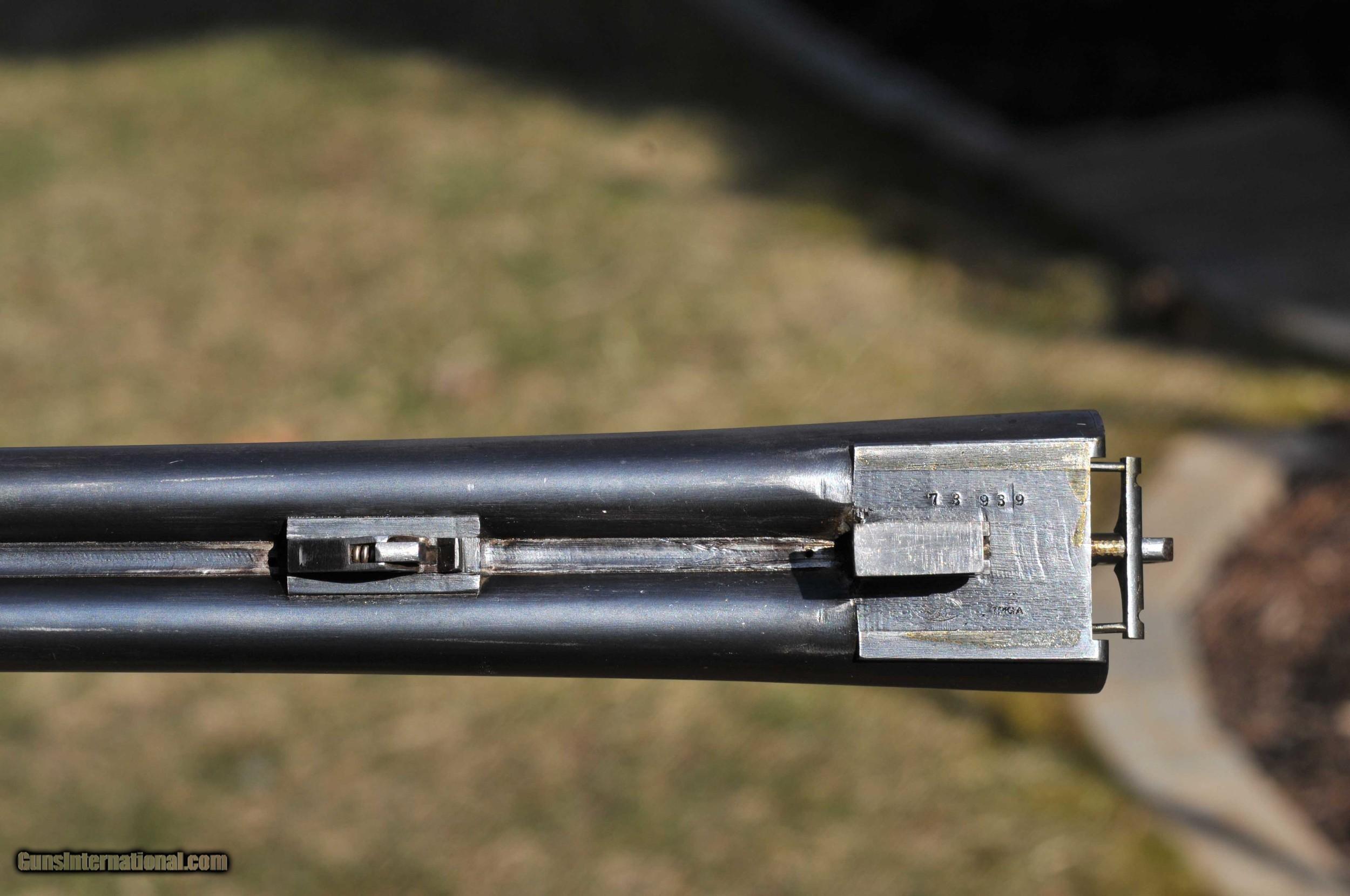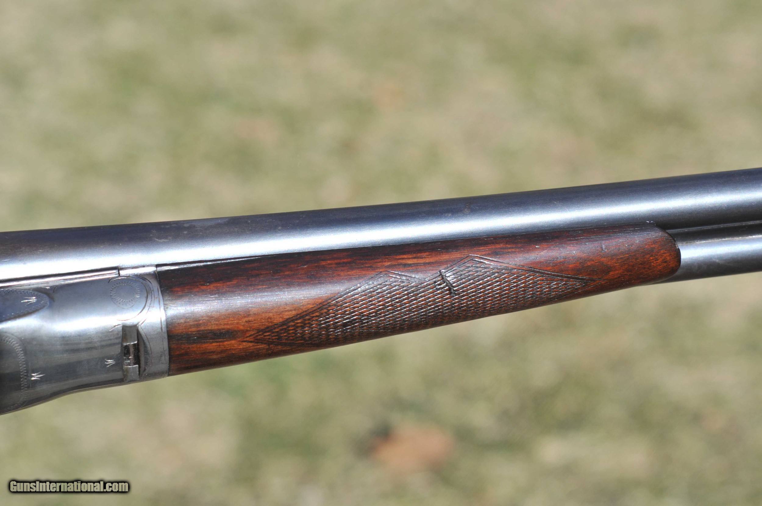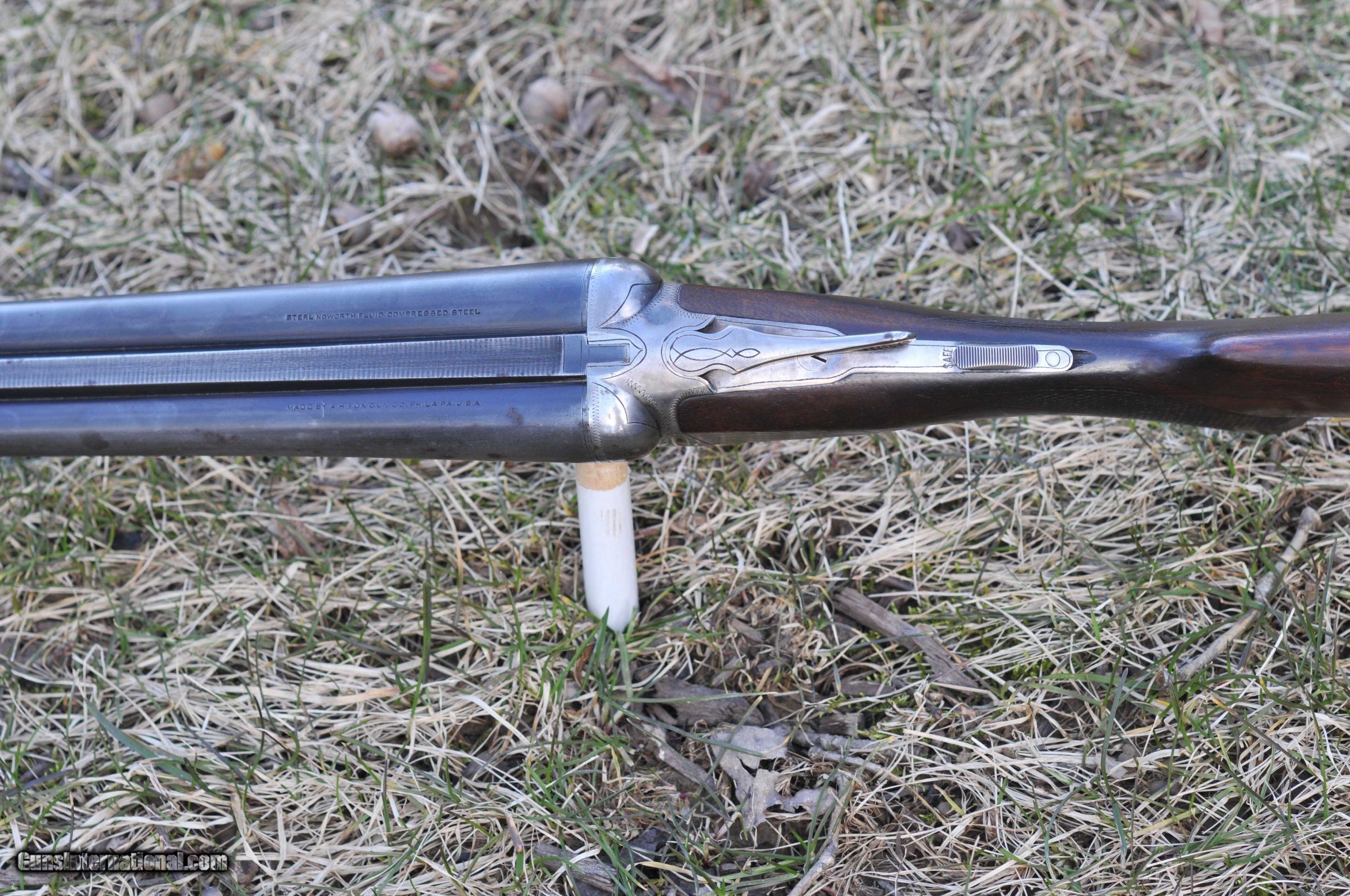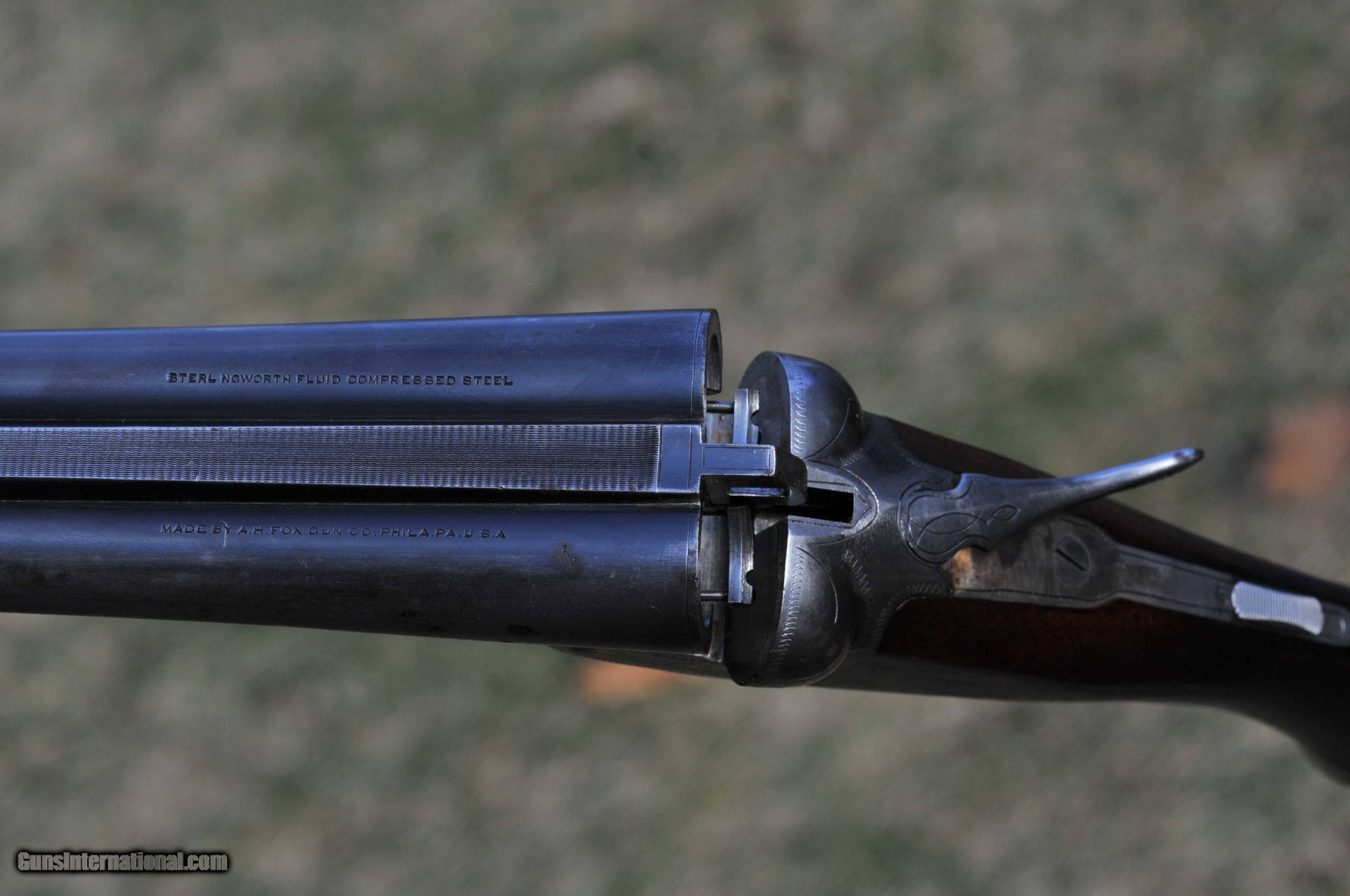 Description: Phila. Fox Sterlingworth Serial number 73939, 12 ga. SxS 28" barrels Field Grade Ser. 73939 Mfg. Bet. 1913 and 1914, M/F, barrels in excellent shape, action locks up like Fort Knox, stock in excellent condition has not been cut, forend has tiny nick in checkering area, butstock is black plastic along with the end of the pistol grip, case color about 10% left, bluing has not been touched, just normal wear from hunting. Where Sterlingworth is stamped on top of barrels, there is a space between the L and N where the I should have been stamped. there is a canvas and leather take-down case that was purchased with gun, 5 boxes of vintage shotgun shells included SOLD Curio/Relic: Yes Manufacturer: A H Fox Model: Sterlingworth Serial Number: 73939 Barrel Length: 28 Caliber Info: 12 ga. Bore: Excellent Chambers: Excellent Condition: Good Metal Condition: Good Wood Condition: Good Bore Condition: Exccellent Barrels: Double Barrel Type: Side By Side Triggers: Double Gauge Info: 12 ga. Stock: Wood Fore End: Splinter Butt Pad: Plastic LOP: 14 1/2 Rib: yes Finish: Good Manufacture Date: Approx. 1913 Chokes: F/M Item Location: Pennsylvania |