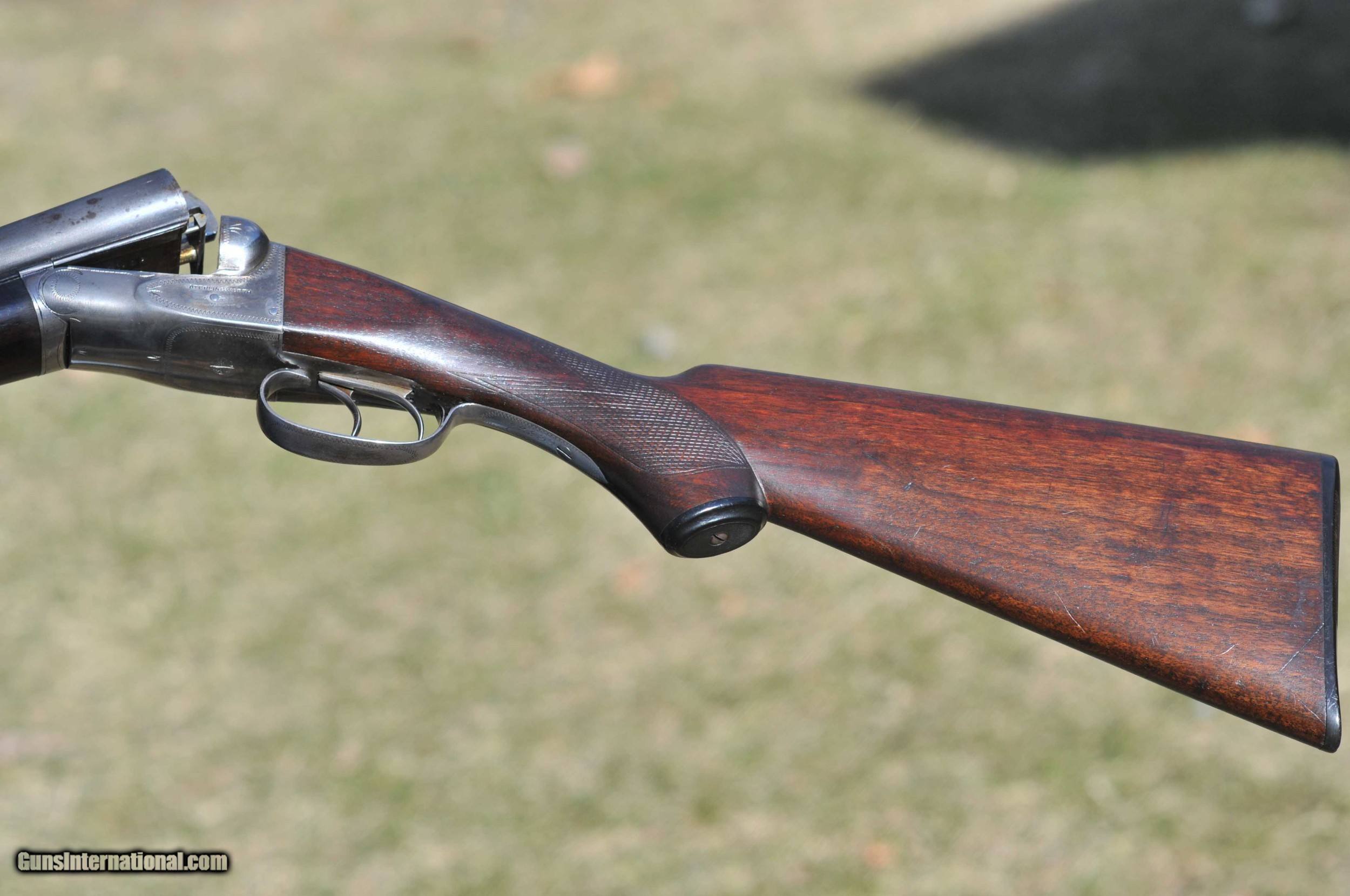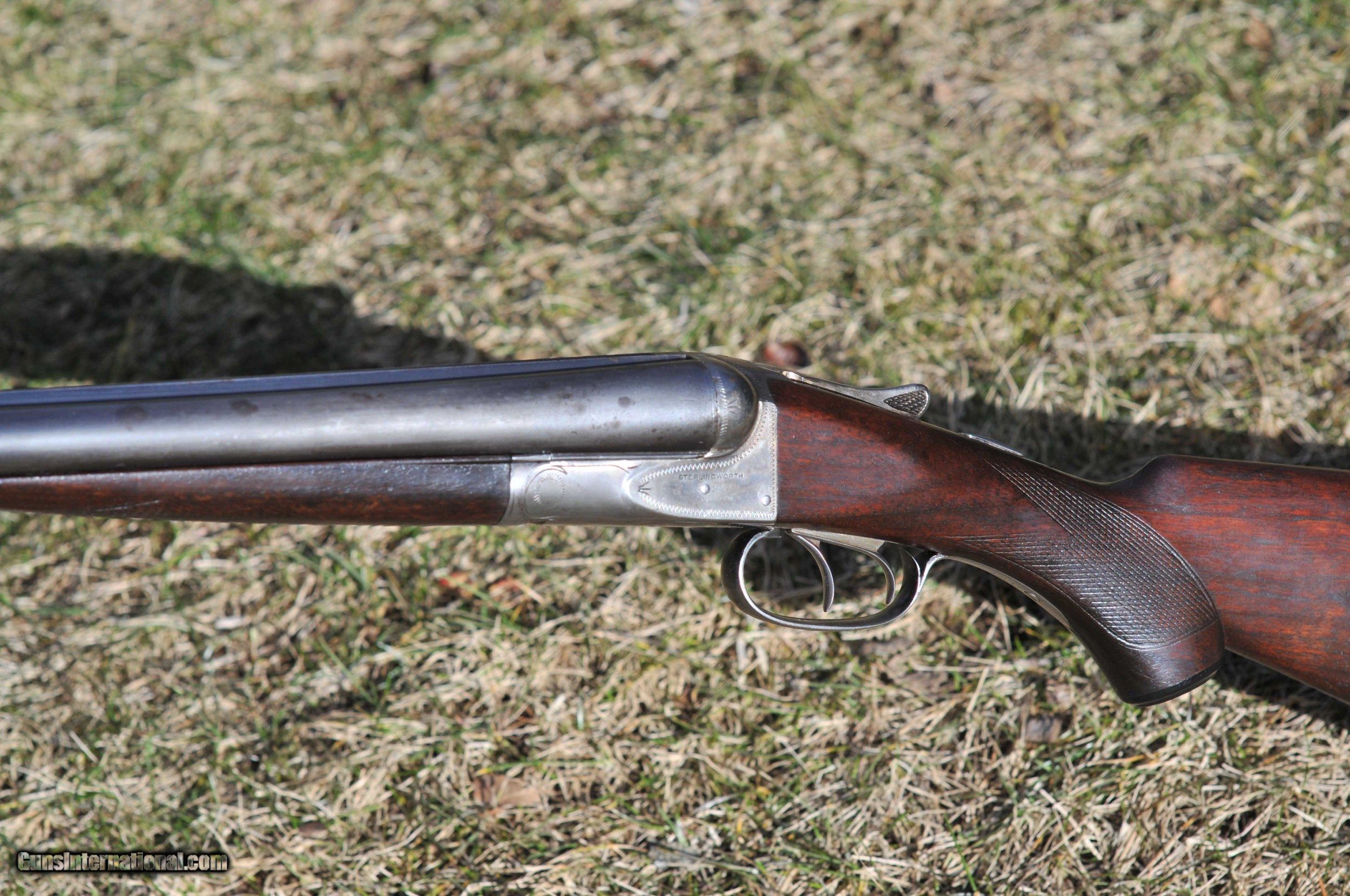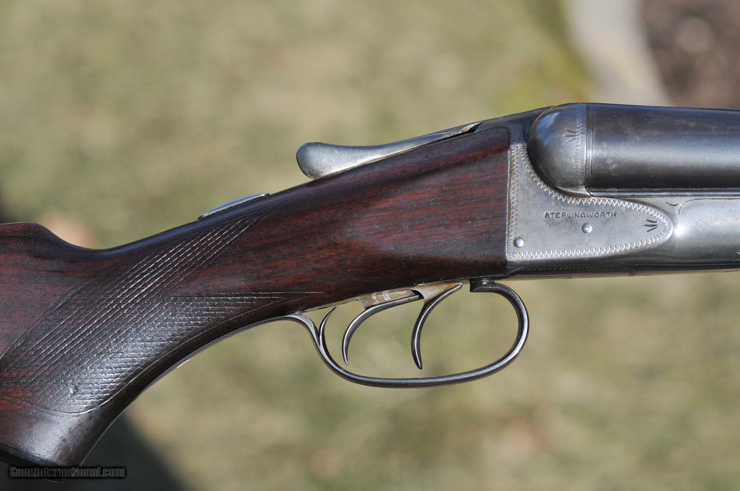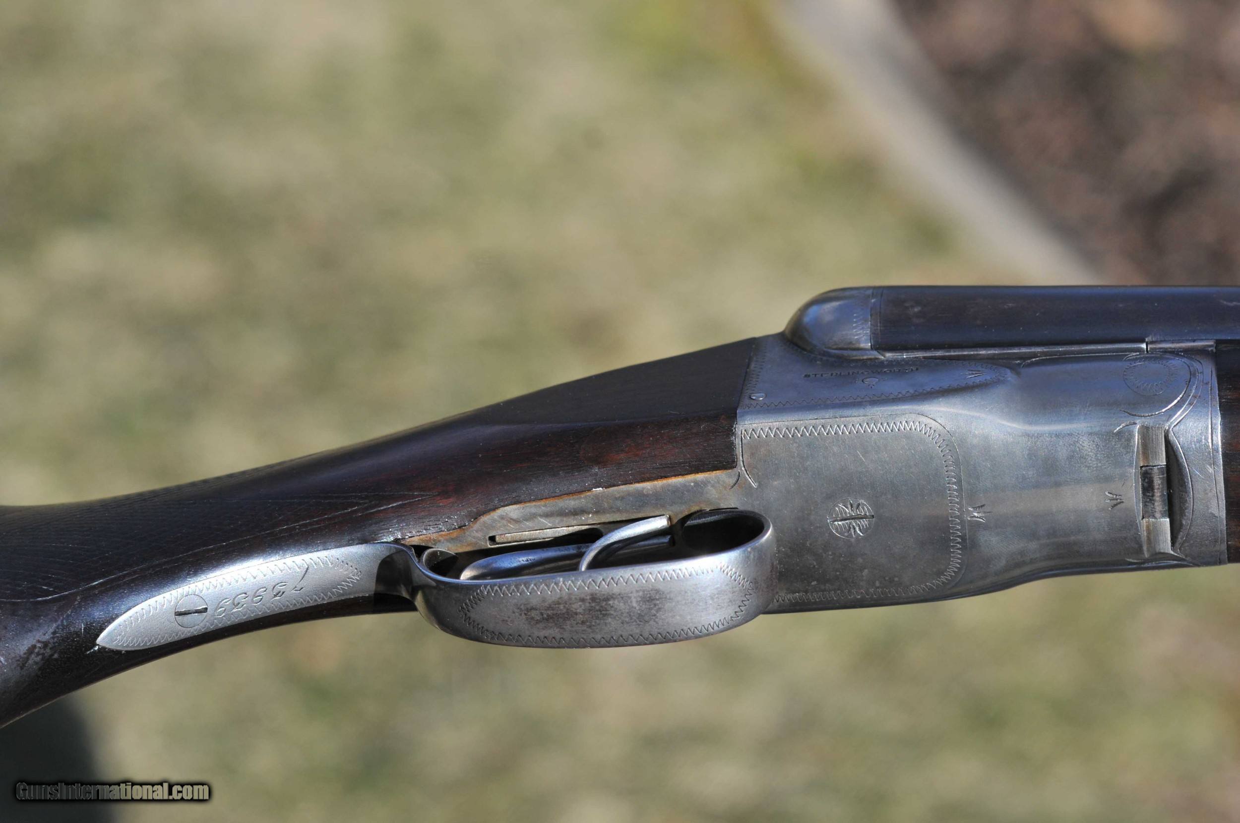 Description: Phila. Fox Sterlingworth Serial number 73939, 12 ga. SxS 28" barrels Field Grade Ser. 73939 Mfg. Bet. 1913 and 1914, M/F, barrels in excellent shape, action locks up like Fort Knox, stock in excellent condition has not been cut, forend has tiny nick in checkering area, butstock is black plastic along with the end of the pistol grip, case color about 10% left, bluing has not been touched, just normal wear from hunting. Where Sterlingworth is stamped on top of barrels, there is a space between the L and N where the I should have been stamped. there is a canvas and leather take-down case that was purchased with gun, 5 boxes of vintage shotgun shells included SOLD Curio/Relic: Yes Manufacturer: A H Fox Model: Sterlingworth Serial Number: 73939 Barrel Length: 28 Caliber Info: 12 ga. Bore: Excellent Chambers: Excellent Condition: Good Metal Condition: Good Wood Condition: Good Bore Condition: Exccellent Barrels: Double Barrel Type: Side By Side Triggers: Double Gauge Info: 12 ga. Stock: Wood Fore End: Splinter Butt Pad: Plastic LOP: 14 1/2 Rib: yes Finish: Good Manufacture Date: Approx. 1913 Chokes: F/M Item Location: Pennsylvania |