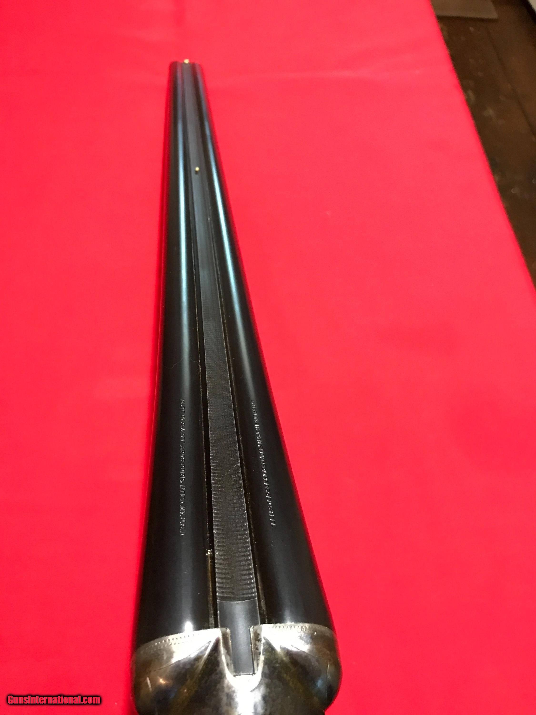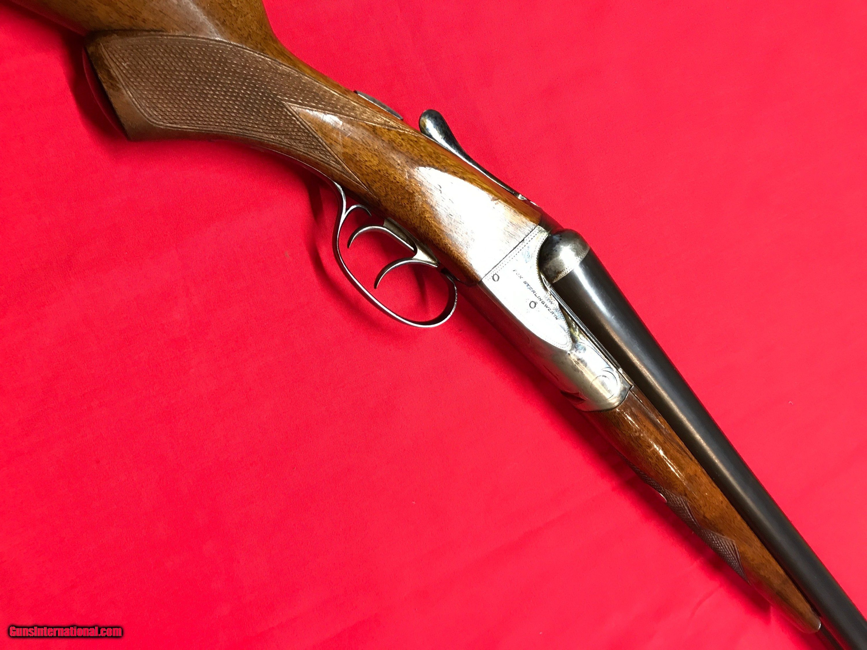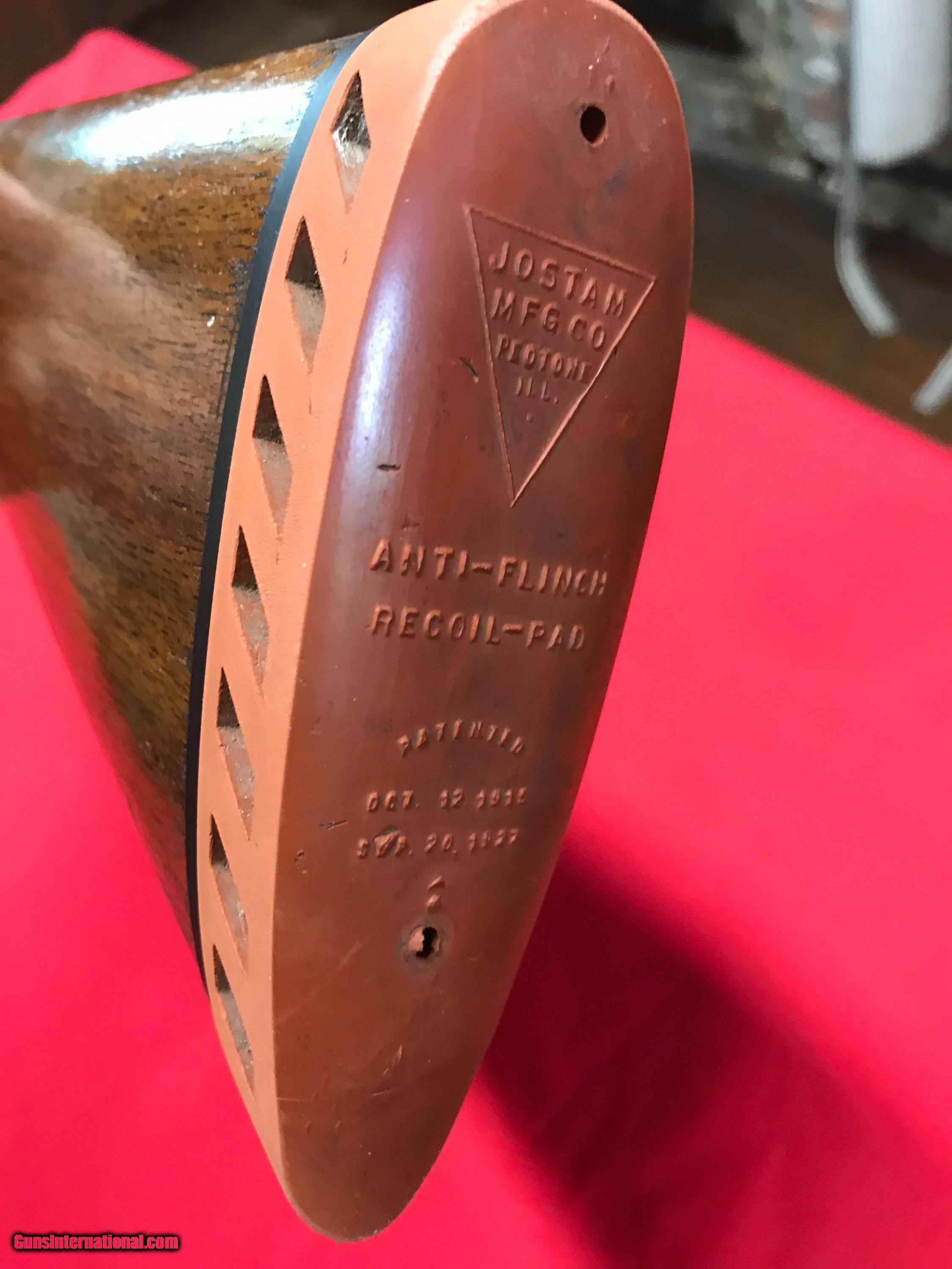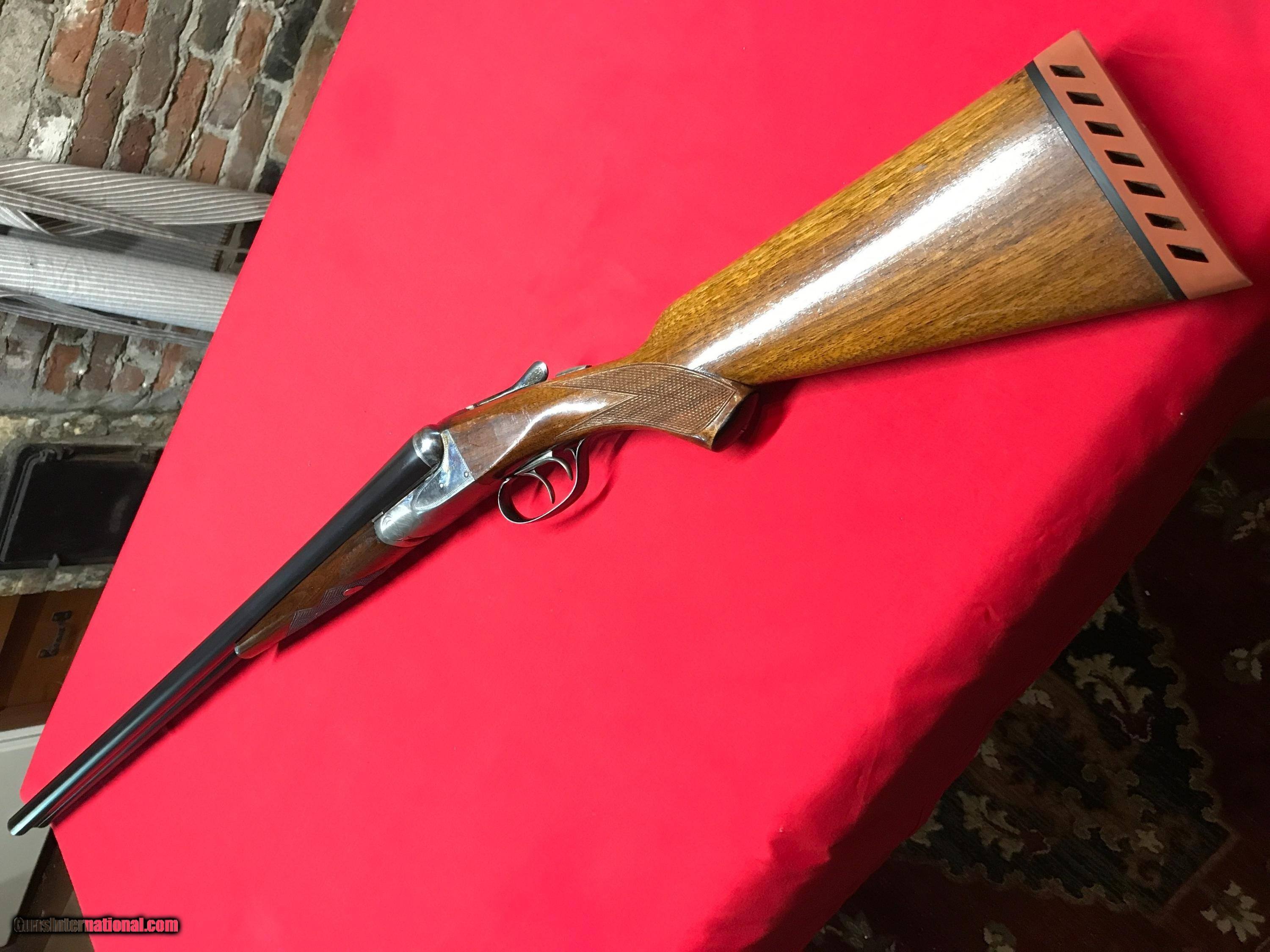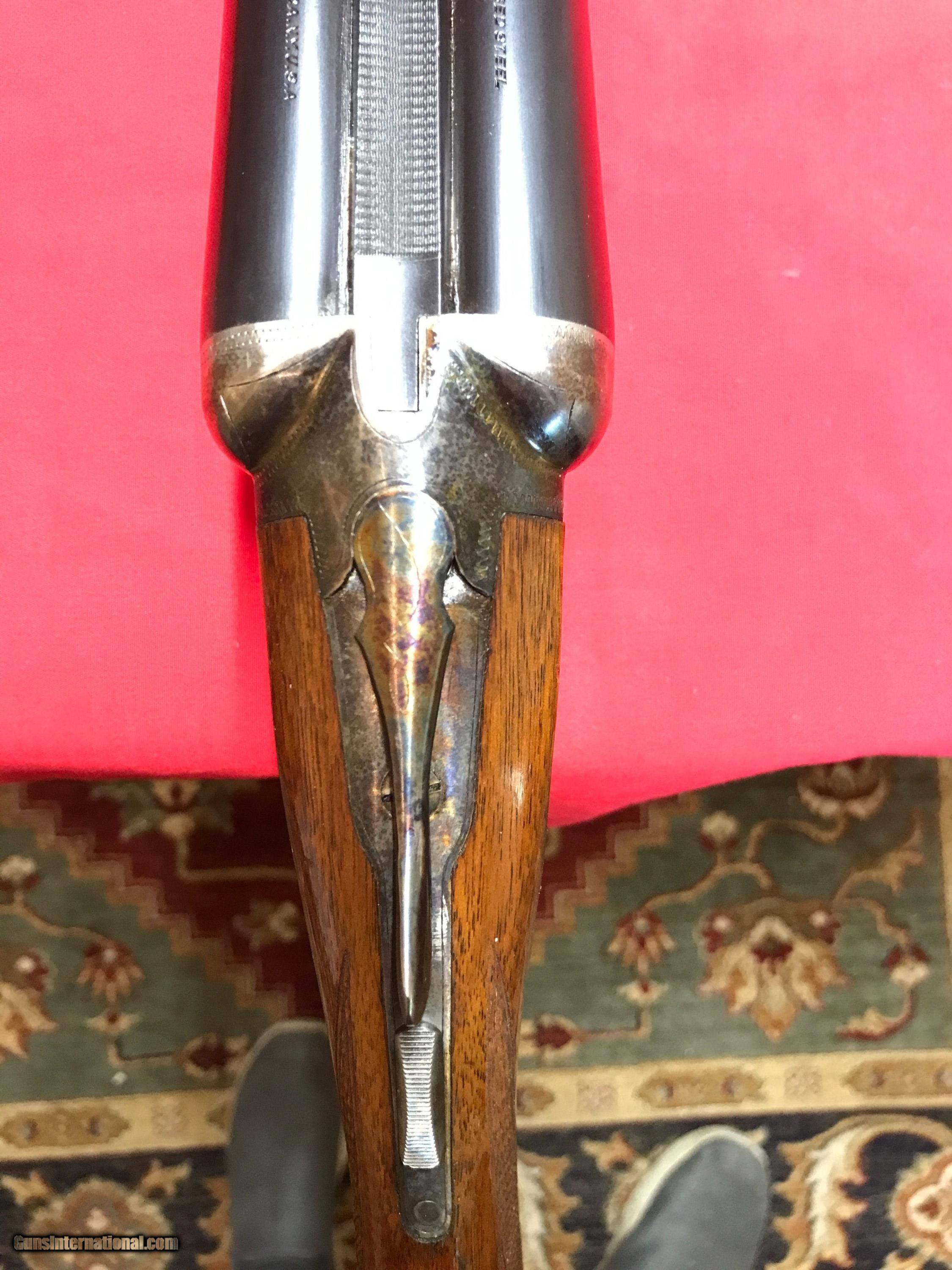 Description: This is a rare Fox Sterlingworth Deluxe/Brush Model ejector gun...The 26" barrels are choked ic and mod. 2 3/4" chambers, excellent bores...Two ivory beads, rare automatic ejectors...14 length of pull over correct pad...About 98% barrel blue and wood finish, with about 80% case colors showing...All original, except for pad, which looks too good to be original for a gun this old...#122xxx, made by Savage Arms in the thirties...Have never seen another one this good, and with ejectors, no less! I SOLD Curio/Relic: Yes |