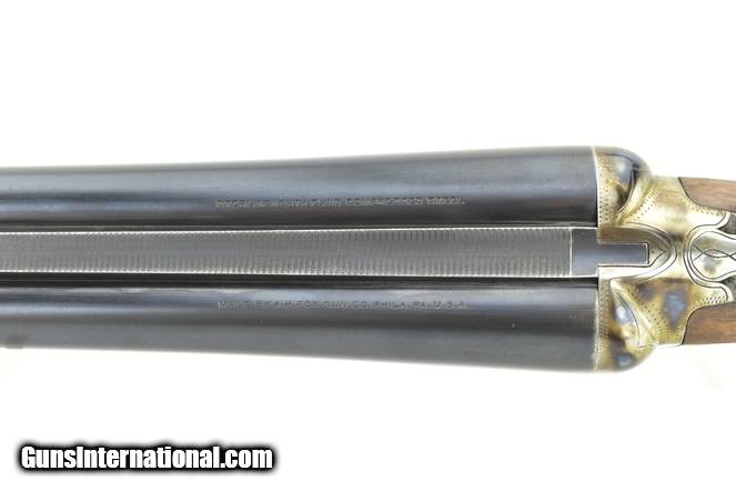 Description: Fox Sterlingworth 12 Gauge shotgun. Excellent restored side by side double. Has 30” full/full barrels, double triggers and extractors. The metal finish is expertly restored and the stock is beautiful custom feathered walnut. L.O.P. is 14½” over a recoil pad. The bores are excellent, and the action is tight. A great looking piece.