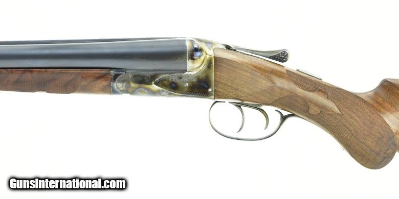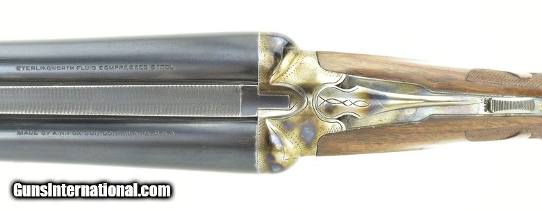 Fox Sterlingworth 12 Gauge shotgun. Excellent restored side by side double. Has 30” full/full barrels, double triggers and extractors. The metal finish is expertly restored and the stock is beautiful custom feathered walnut. L.O.P. is 14½” over a recoil pad. The bores are excellent, and the action is tight. A great looking piece.