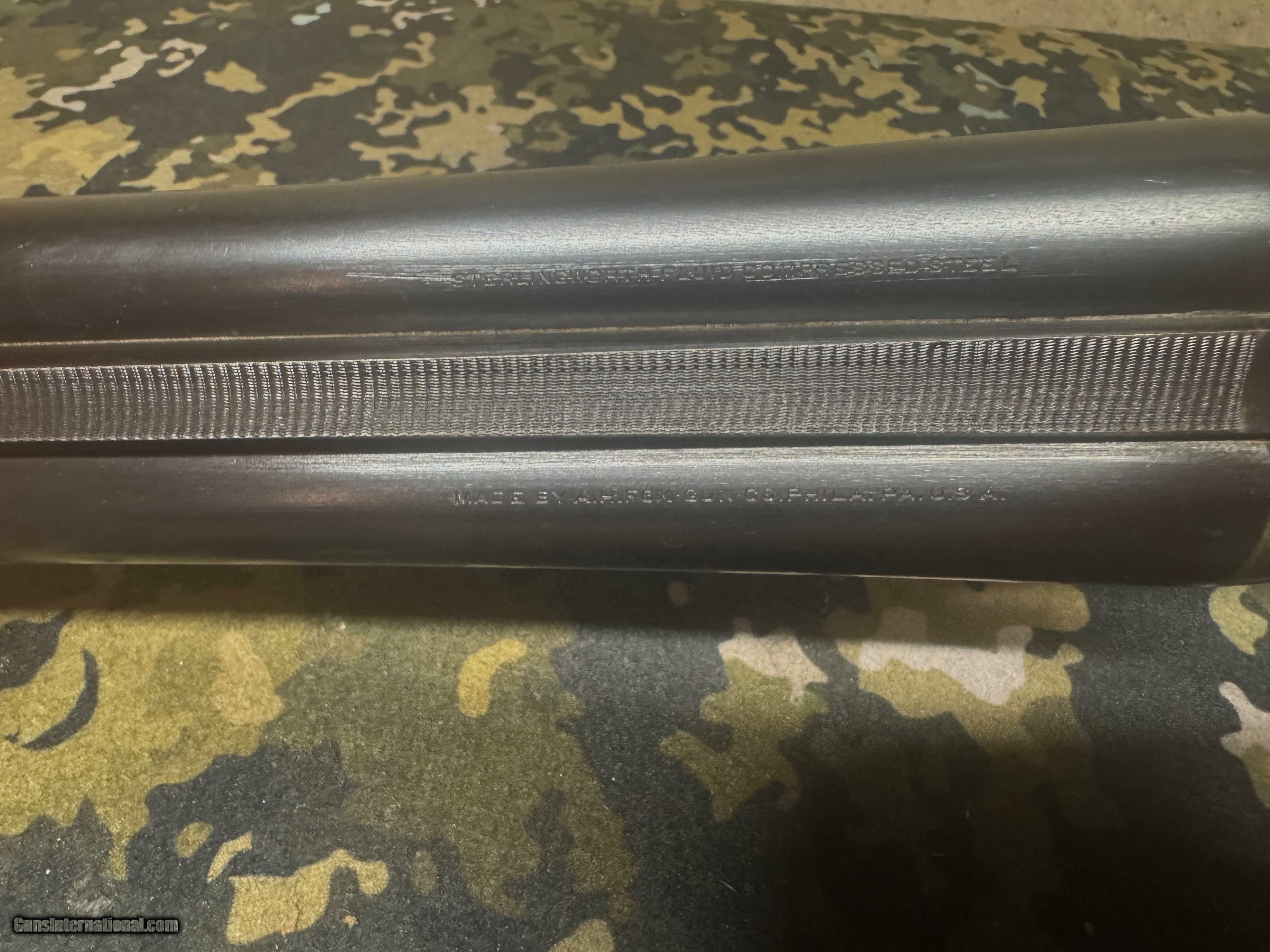 Description: Fox Sterlingworth 12 gauge 30 inch barrels choked IM and Full. Philadelphia gun with matching serial numbers. Very strong case color looks to have been redone. Gun locks up tight with lever still far to right. Wood has scattered handling marks. Barrels have some scattered nicks nothing major. Feel free to ask for more pictures. Shotgun Gauge: 12 Gauge Manufacturer: Ah Fox Model: Sterlingworth Barrel Length: 30 Condition: Very Good Price: $1,099.00 Shipping: $50.00 Buy Now Contact Seller |
