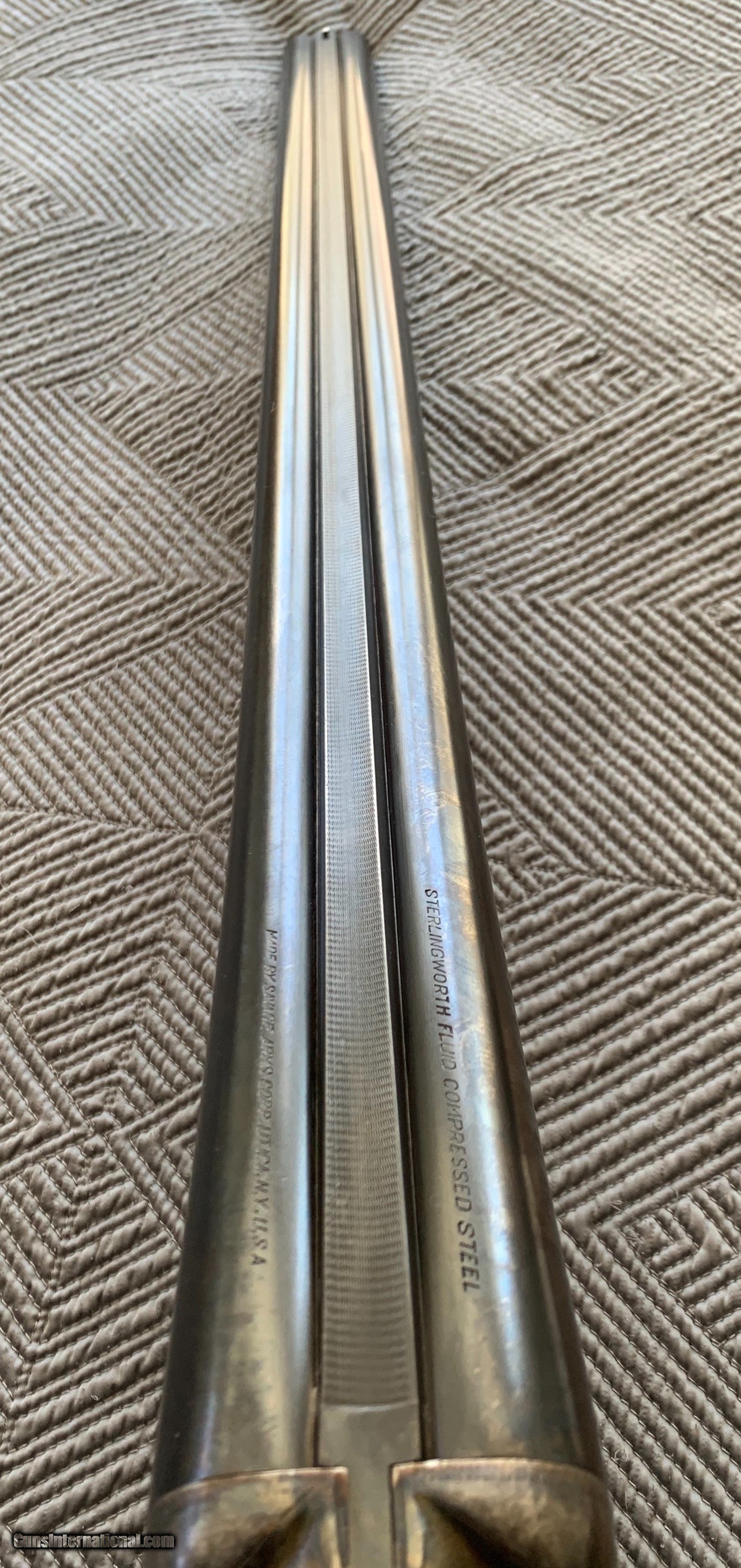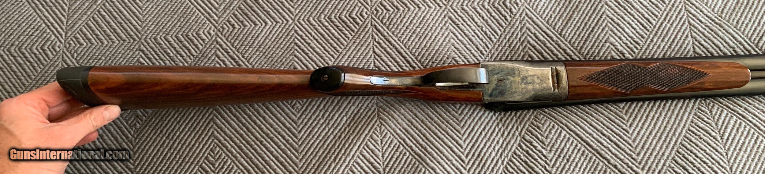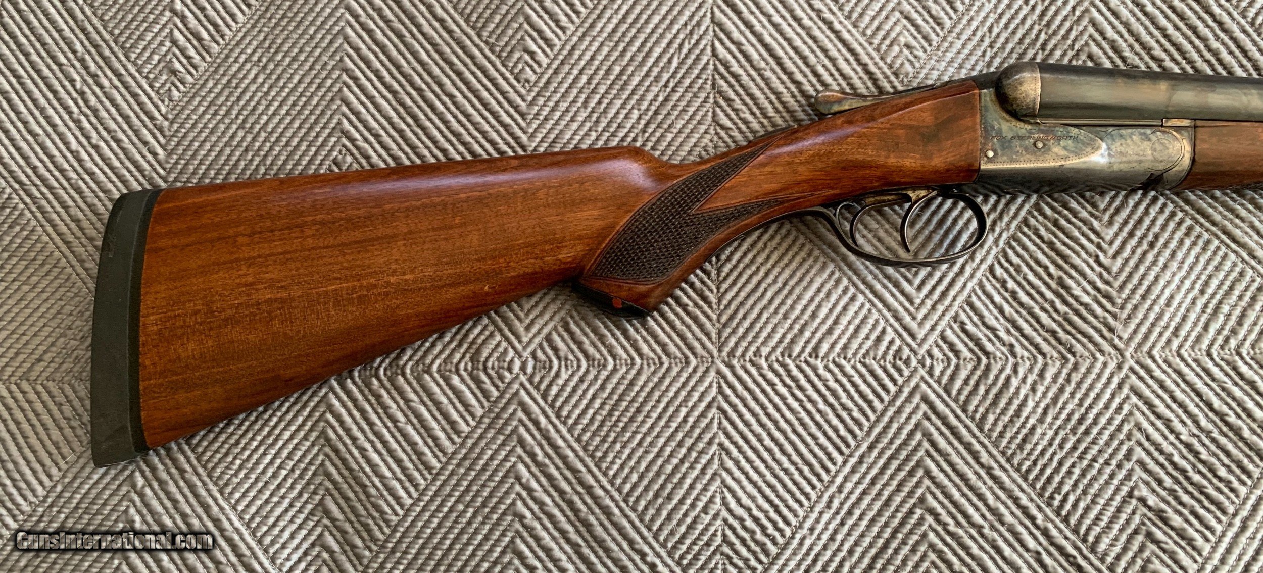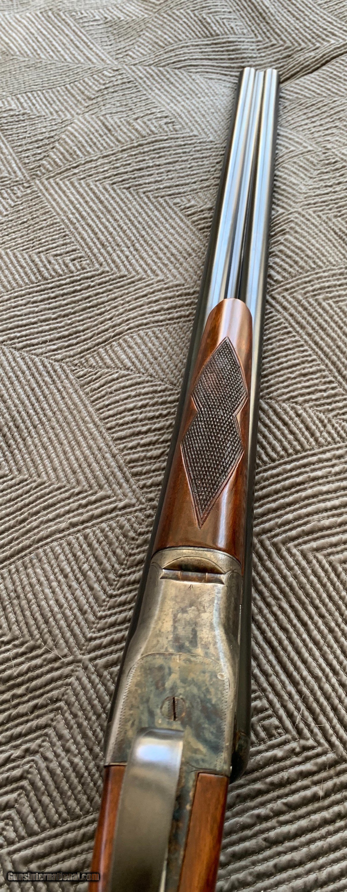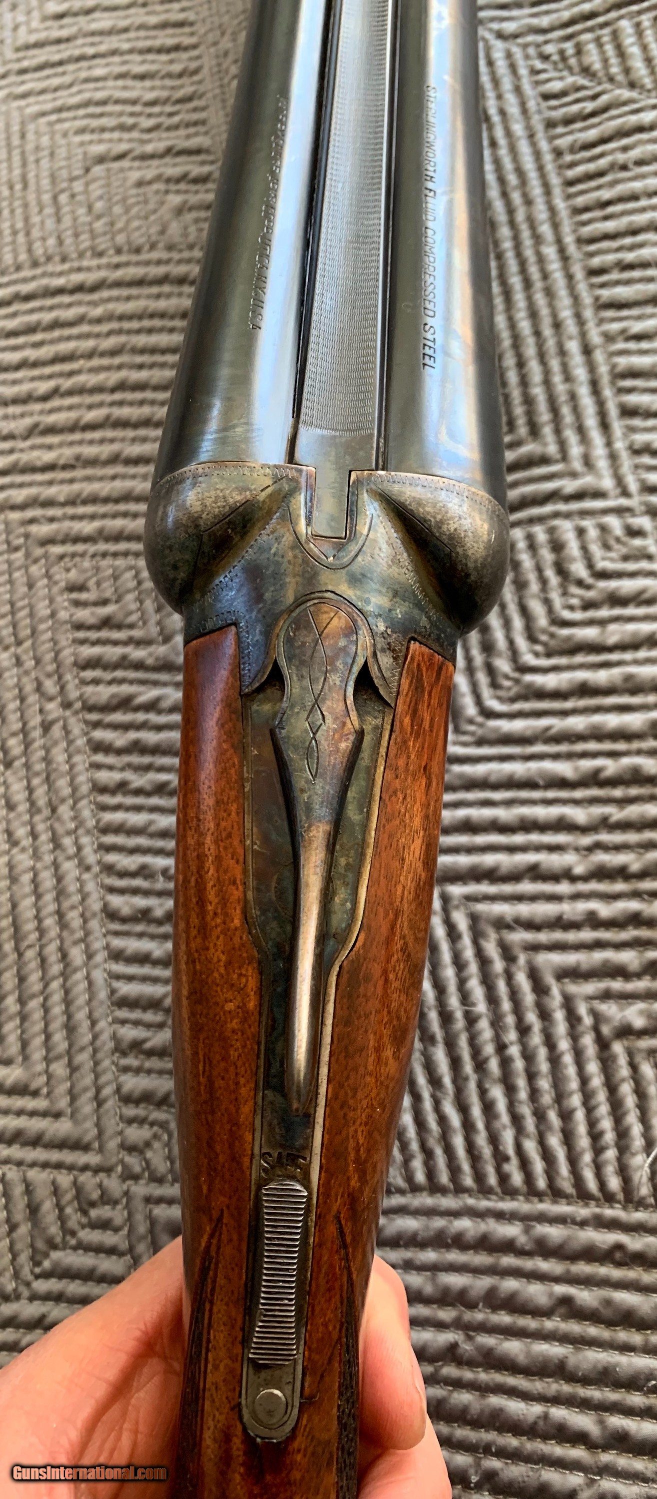 Description: This is a Fox sterlingworth 12g that has been professionally restored. The stock has been beautifully refinished and the barrels re blued. the barrels were originally 30’s but have been professionally shortened to 25” by Jaeger. They are choked sk/sk. This gun is the perfect woods gun for grouse and was designed for that job in mind. The stock is pretty much 100% perfect apart from one ding on the right side (see photo). It has lovely deep grain and new oil finish. LOP is 14 3/4 from front trigger to a pacmyer pad, with plenty of drop. The gun retains most of the original case color on the action. Barrels are also professionally re blued and are 98%. Wonderful gun for upland hunting. SOLD Curio/Relic: Yes Manufacturer: Fox Model: Sterlingworth Serial Number: 129521 Bore: 12 Ejectors: No Condition: Excellent Bore Condition: Excellent/professionally restored Stock Dimensions: 14 3/4 LOP to front trigger Item Location: Michigan. |