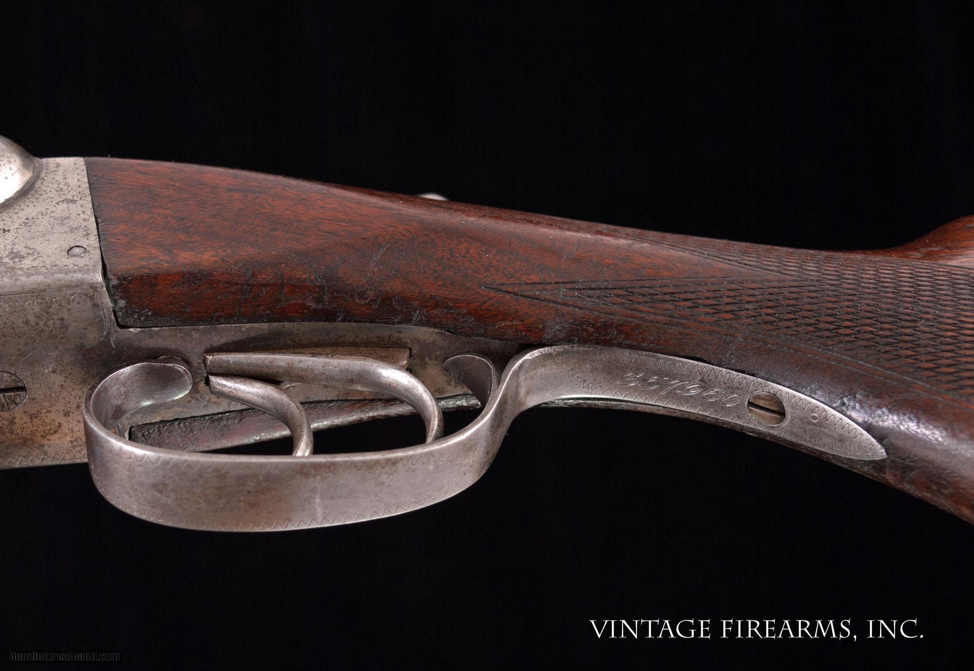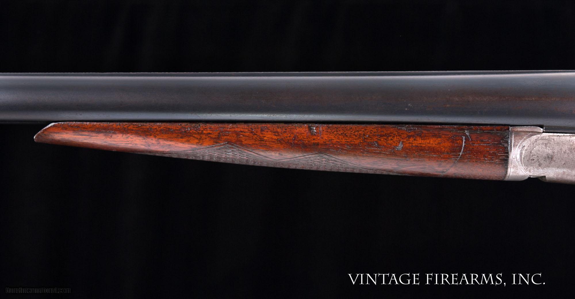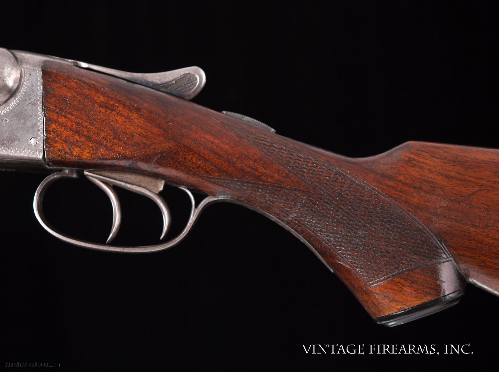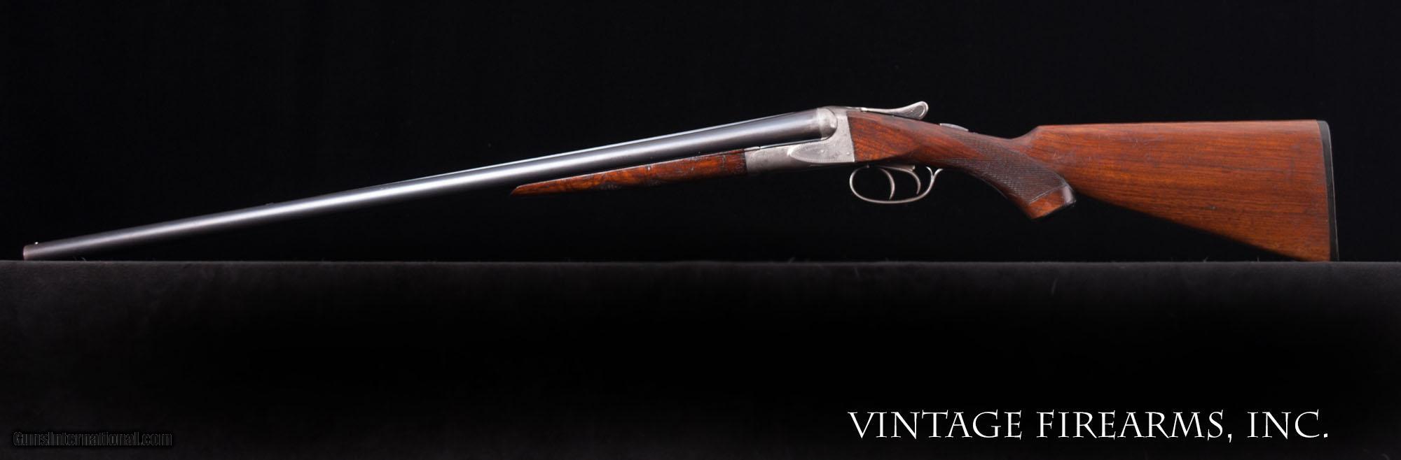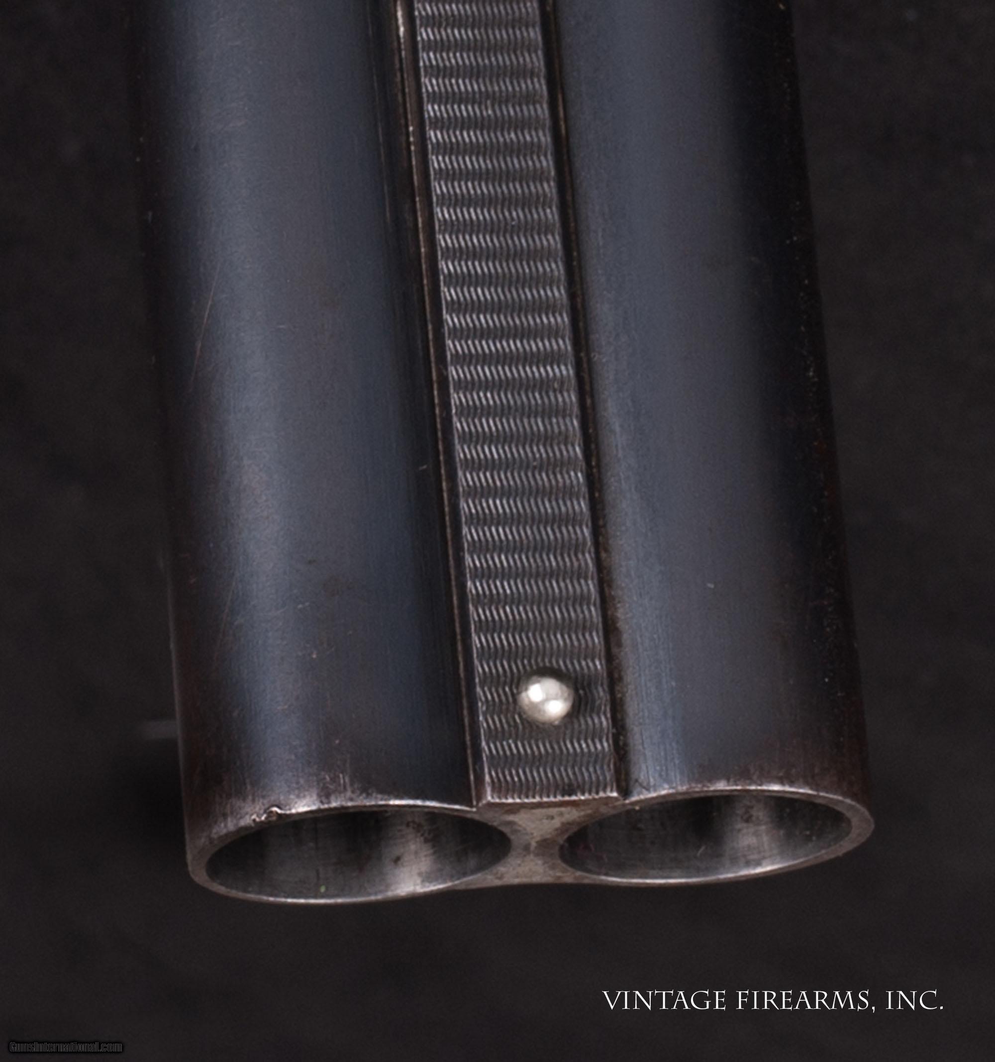 Description: Fox Sterlingworth 16 Gauge Side-by-Side 1922, UNTOUCHED, GOOD DIMENSIONS General Specs: Fox, Year 1922, 16 Gauge, 6lbs, SxS Serial Number: 357960 Fox Sterlingworth guns in 16ga. are seen often enough. Anybody who has watched the vintage gun market realizes that the 16ga. Sterlingworth value has been discovered, as they are all built on the diminutive 20ga. frame and handle better than most all other American built 16's. The prices have gone up significantly with the nice 16ga. guns being bought up, thereby reducing the available guns on the market. Most will agree the Fox Sterlingworth 16ga. is the best value for a fine small gauge vintage American double in today's marketplace. Balanced delightfully on the hinge pin and weighing just 6lbs., this particular Sterlingworth, sn357960 made in 1922, is better than most in that it was built during the early years with great care for wood to metal fit, checkering, and overall fit and finish. The gun has seen use over the 95 years it has done its job, but has been well cared for, with no cracks or repairs, mirror bores, perfect screws, and the original butt plate. Priced affordably, it is a great bird or clays gun for your rainy days or rough terrain and will function flawlessly as you enjoy carrying a piece of American history. If you like a "pretty gun" this one is a perfect candidate for a full restoration, as it is all in great condition wood and metal wise. Of course, that can be done through our shop for as little as $1600 added cost even with Turnbull case colors. Barrels Barrel Length: 26" #3wt Chokes: 0.008/.029 Bores: excellent Bore Diameter: .658/.657 Wall Thickness: .031/.029 % Blue: 95% Chambers: 2 1/2" Ribs: tight Sights: single silver Action Action: tight, right of center Ejectors or Extractors: extractors Case Color: 20% fading Screws: perfect Engraving: clear Trigger Type: double, crisp Trigger Guard Color: mostly grey Stock Type: capped pistol grip/splinter forend LOP: 14 3/16" LOP To End Of Wood: 13 7/8" DAH: 3" DAC: 1 11/16" Cast: 0 Checkering Condition: excellent, factory flat top Butt Treatment: factory plate There are more photos upon request. We offer a 30 day mechanical warranty on this fine shotgun. Call us for full details. PLEASE SEE MY OTHER FINE VINTAGE FIREARMS. Just open one of my ads and click on the line that says “see all items from this seller” and a very nice list of fine sporting and collectible arms will appear. I have many more fine sxs shotguns not yet listed. Thanks for looking! We employ a full time gunsmith on premises and can perform alterations to suit your needs within a few weeks of purchase. Payment Methods: Money Order, Certified Check, Personal Check, Wire Transfer Inspection Period / Return Policy: Three Days from the date the item was received. Sales Tax: 6% Michigan Only Shipping & Insurance: Ground $45.00 We ship internationally! Item Condition: Used Requires FFL?: Yes SOLD Curio/Relic: Yes |