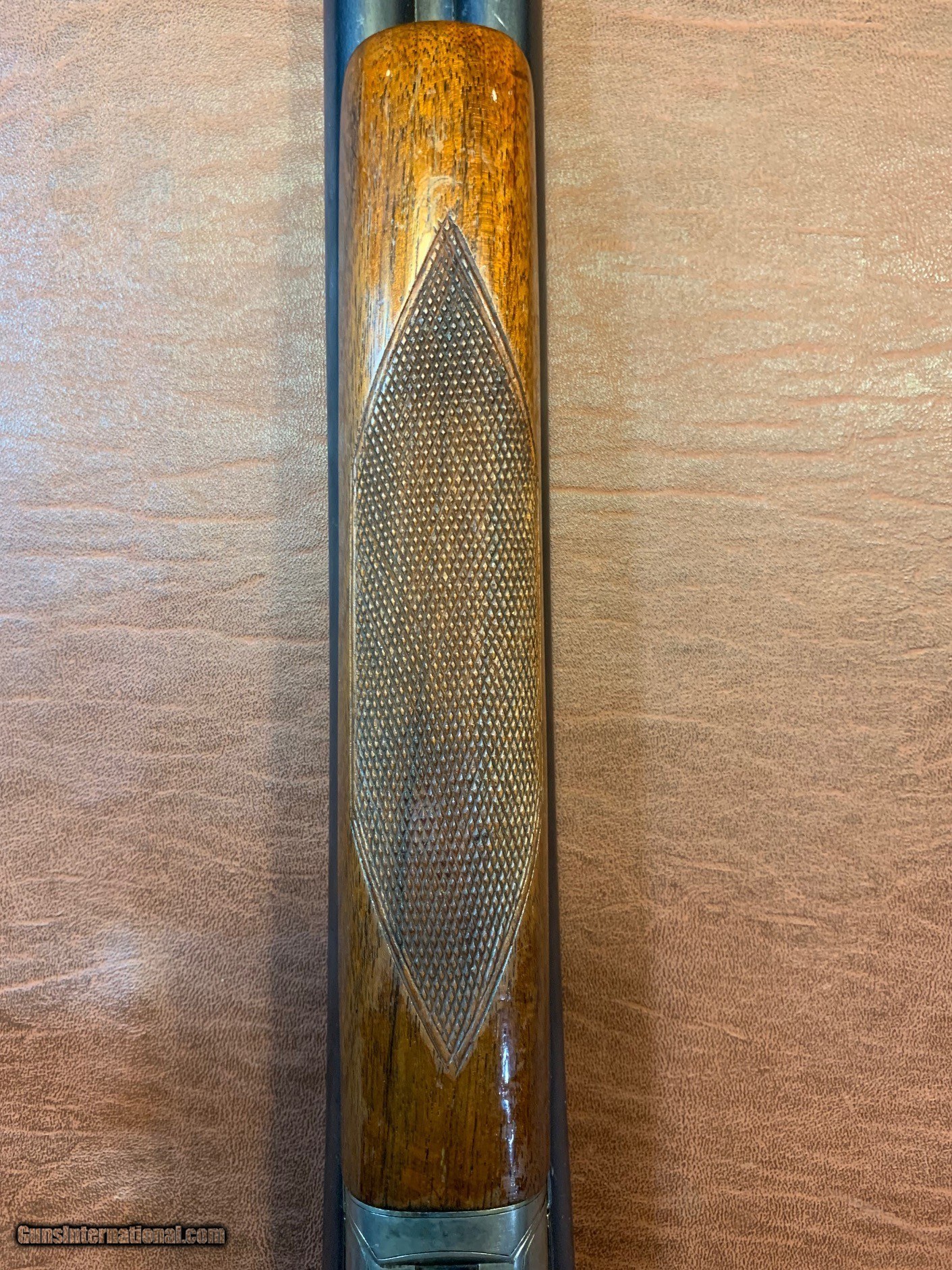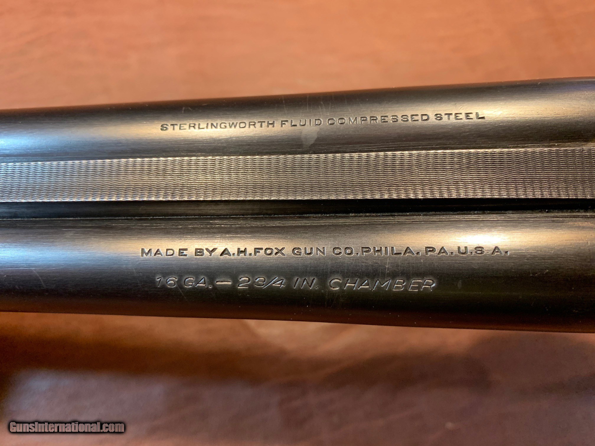 Description: Fox Sterlingworth, 1930, 28" IC/M, 2 3/4" (as marked), extractors, DAC 1 1/2" DAH 2 3/4", LOP 14 1/4". A very balanced 6.45 pounds. Excellent blue, barrels ring like church bells and are free of dents, bores are bright, excellent checkering, outstanding wood on a field grade shotgun, nice vivid case colors, lever to the right, crisp triggers, tight action right down to the tension on the top lever and the safety. Very nice all-around American double ready for some action! $50 UPS insured shipping to your FFL. NO CA sales, private party will send copy of DL for transfer. If your FFL needs it sent from an FFL add $20. Thank you SOLD |