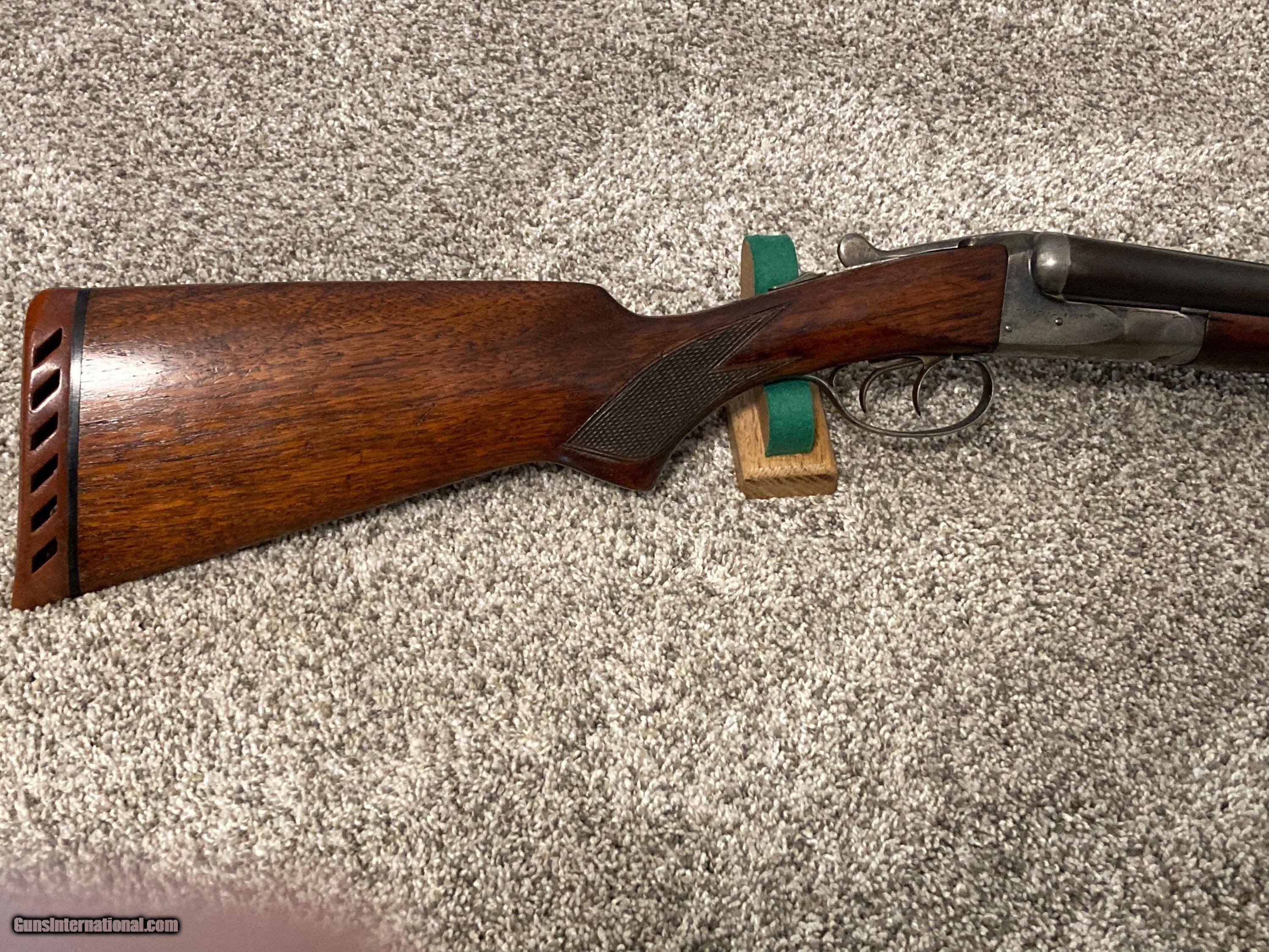 Description: Fox Sterlingwoth Savage Deluxe16 gauge. Manufactured in 1936. M&M chokes, 2 1/2" chambers. Price was $1895, reduced to $1795. Now 1695.00! Ken 402-203-8422 SOLD Shotgun Gauge: 16 Gauge Manufacturer: A. H. Fox Model: 16 ga. Sterlingworth Serial Number: 373xxx Barrel Length: 28” Bore: Excellent Chambers: 2 1/2” Ejectors: Extractors, no Ejectors Condition: Excellent Metal Condition: Excellent Wood Condition: Excellent Bore Condition: Excellent Barrels: Approximately 85% blue Barrel Type: Special Alloy Steel Action: Break Triggers: Double Stock: Checkered Walnut Pistol Grip Stock Dimensions: Lop 141/8 Fore End: Checkered Walnut Butt Pad: Original Red Rubber Jostam Pad LOP: 14 1/8 Rib: Matted Finish: Barrel Blue Approx. 85%. 10% Case colors Weight: 6 1/4 lbs Sights: Ivory Middle Bead, Ivory & Brass front Manufacture Date: 1936 Chokes: M&M Choke Left: M Choke Right: M Engraving: Outline Engraving on Receiver & Lever Case: Approx. 10% Item Location: Nebraska |