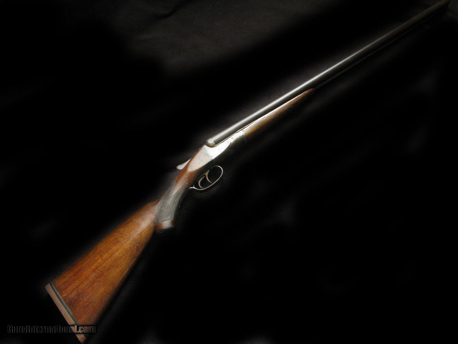 Description: 28" gun with nice barrels, no dents, strong blue and good bores choked 654/640 (light mod) and 653/630 (imp mod) with 2 9/16" chambers; tight action, lever to r, plenty of case colors remaining. Buttstock has a splice repair to the head on either side and has been refinished (correct oil finish) with new rubber pad. Dims 14.5, 1 3/4, 3, neutral cast. Checkering is strong, gun has not been shot much. Nice light 16 for those who appreciate the chambering. SOLD |
