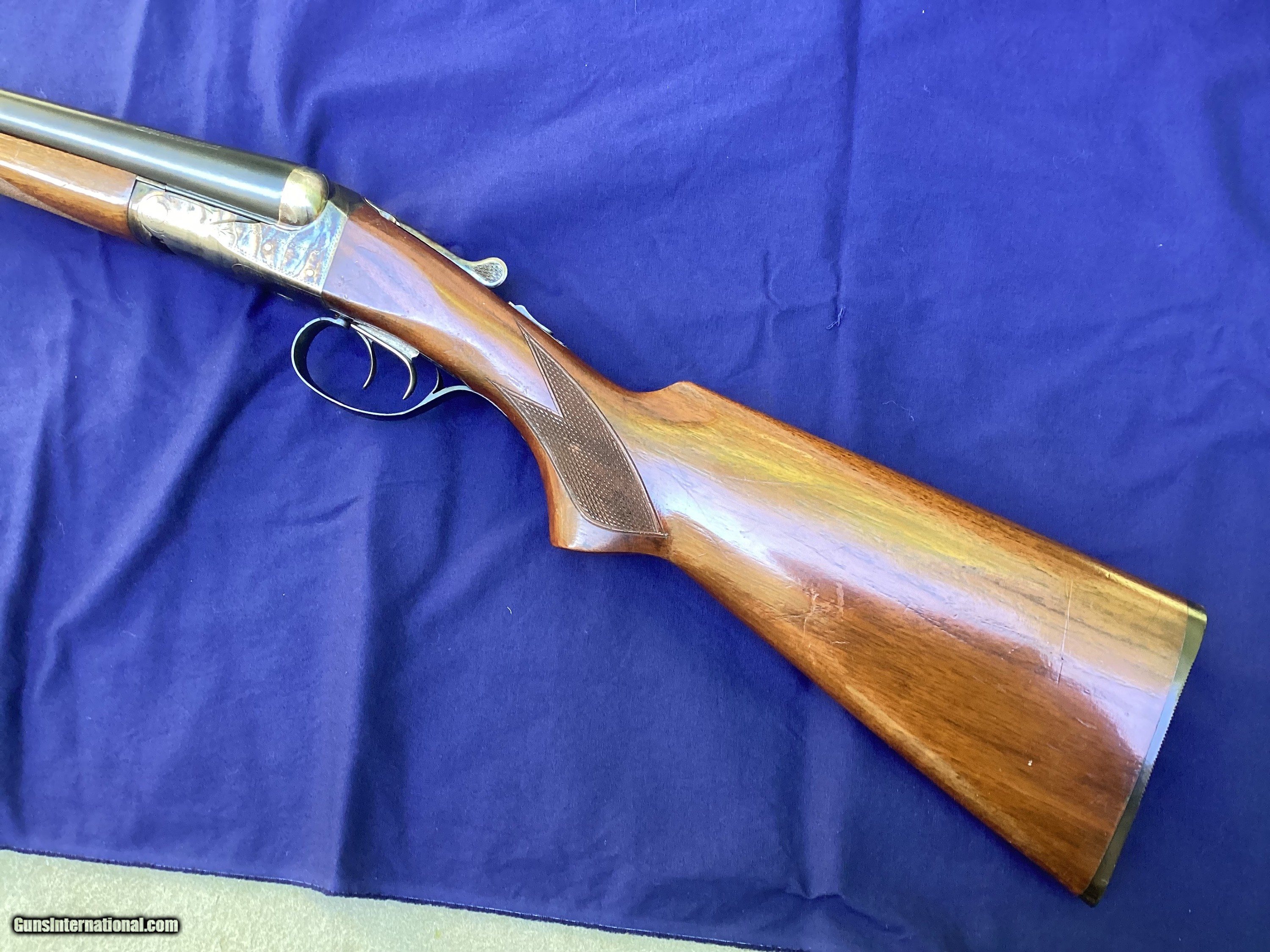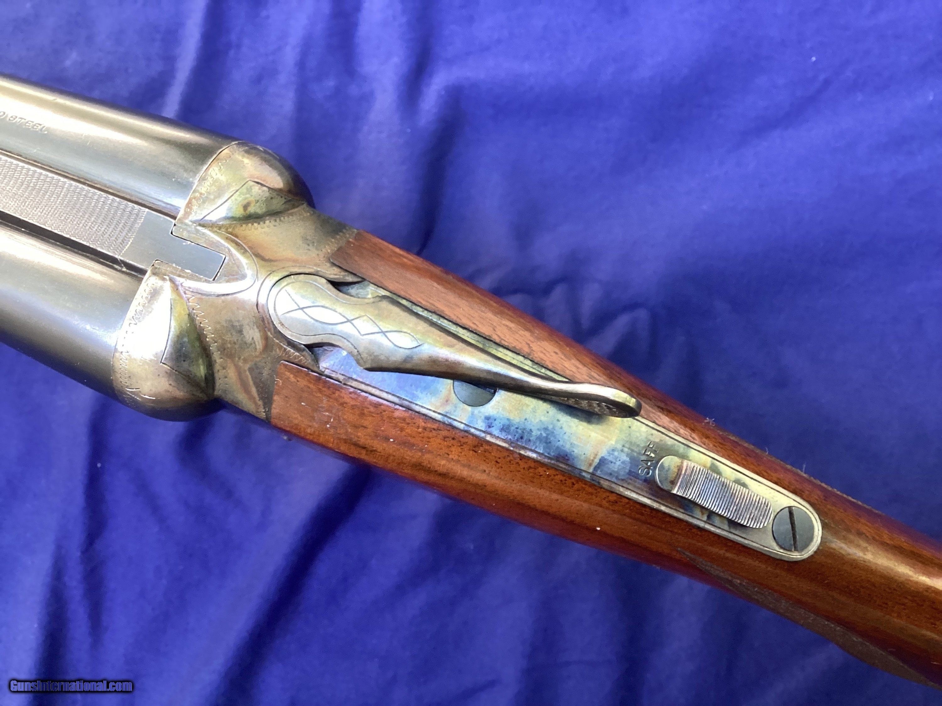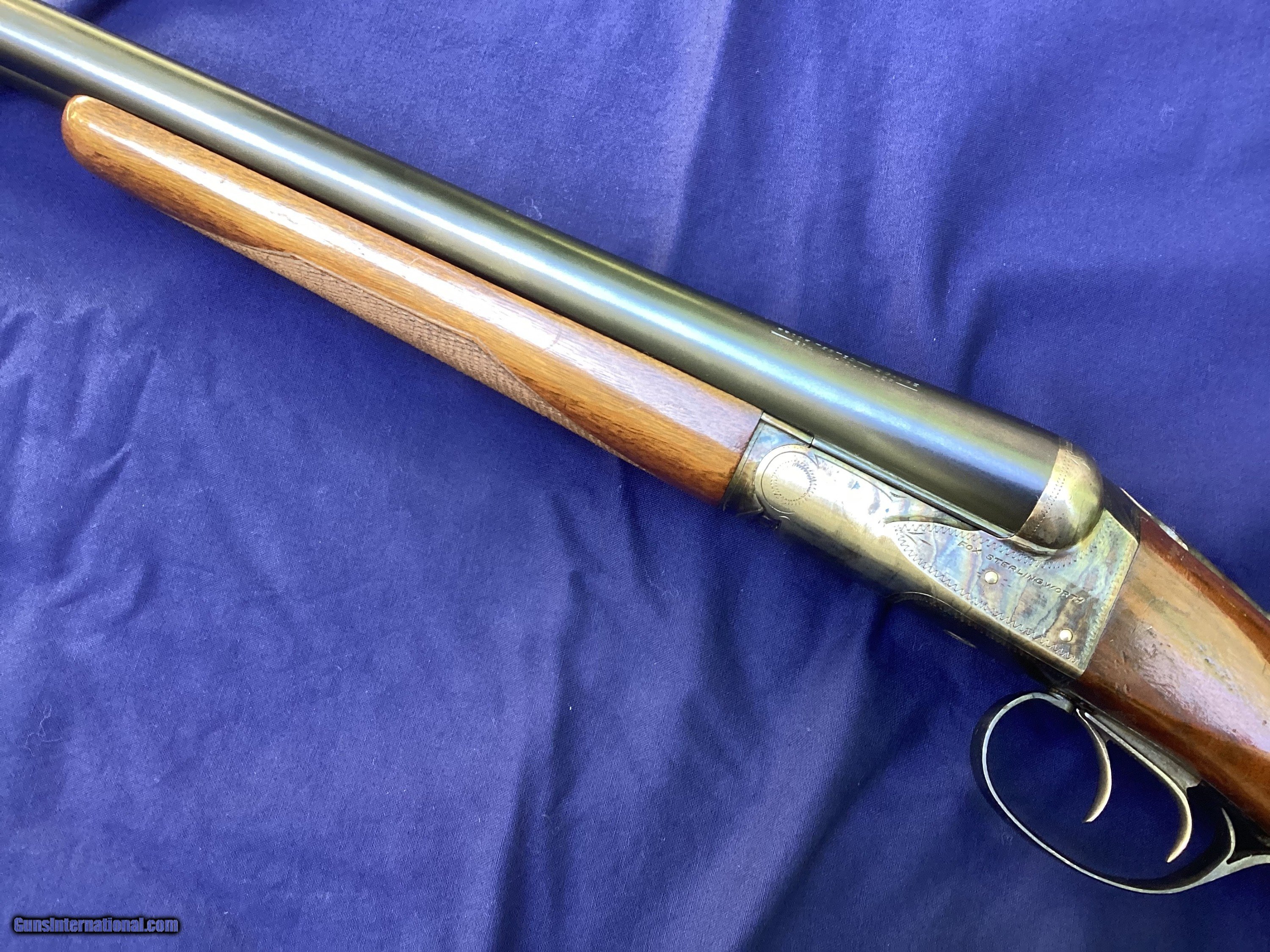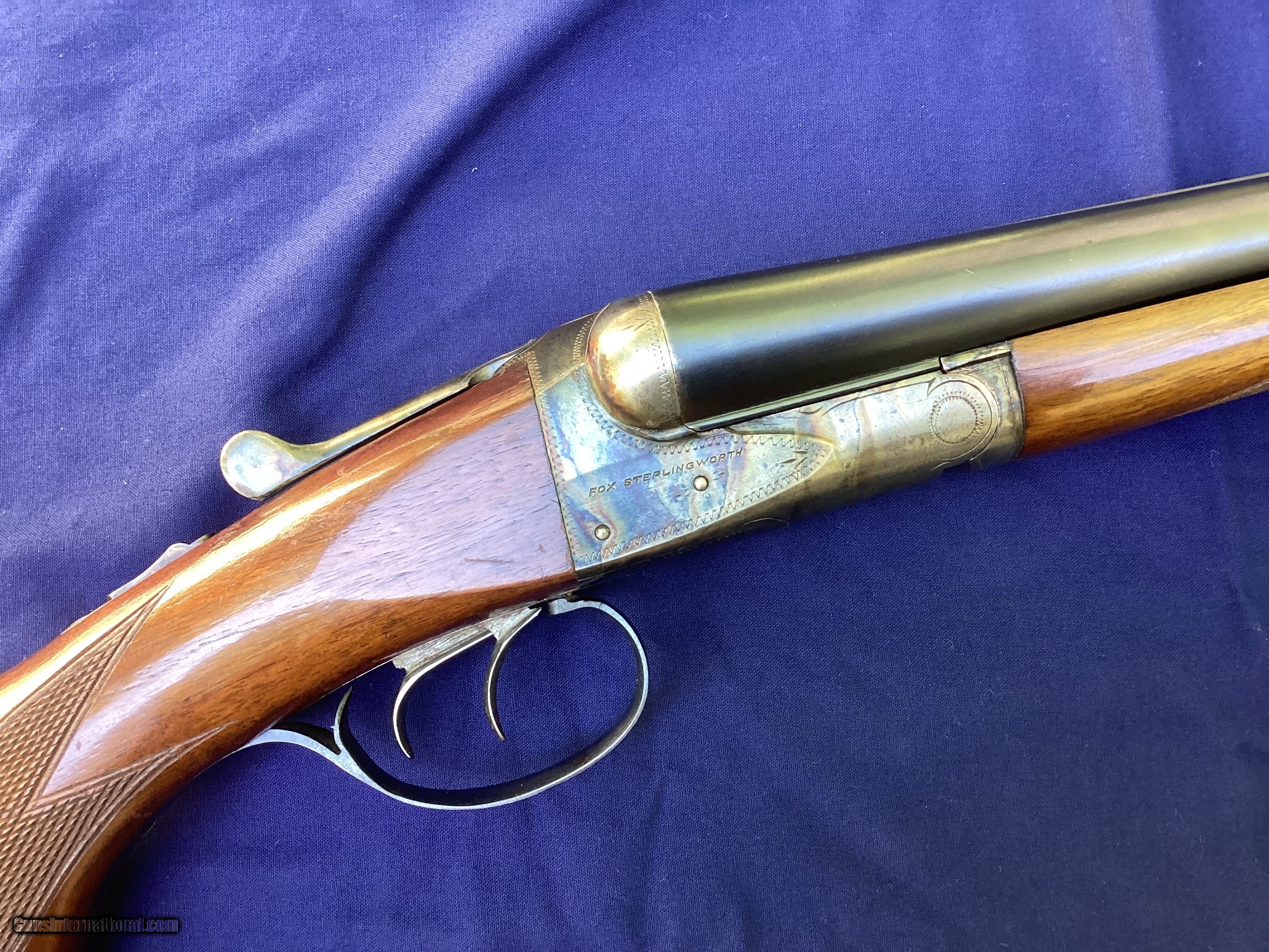Description: Fox Sterlingworth made 1937, 12 gauge, 28" barrels. In very fine original condition with all case colored receiver, and 99+% bluing. The action is as new, as are the bores. A collector quality Fox. Please examine the photos to see actual condition. Certified checks or USPS MOs only accepted. Shipping by Fedex will be $60.00 in the CONTUS. Cannot ship to Ca., NYC, and N.J. will not accept C&Rs. Sorry, too old to entertain trades or financial arrangements. Please use email for contact if possible. SOLD Shotgun Gauge: 12 Gauge Manufacturer: Fox (Utica) Model: Sterlingworth Serial Number: 138049 Barrel Length: 28 Chambers: 2-3/4 Ejectors: No Condition: Fine Metal Condition: Fine Wood Condition: Vg Bore Condition: Fine Triggers: 2 LOP: 14-1/4” Manufacture Date: 1937 Choke Left: .028” Choke Right: .008” |