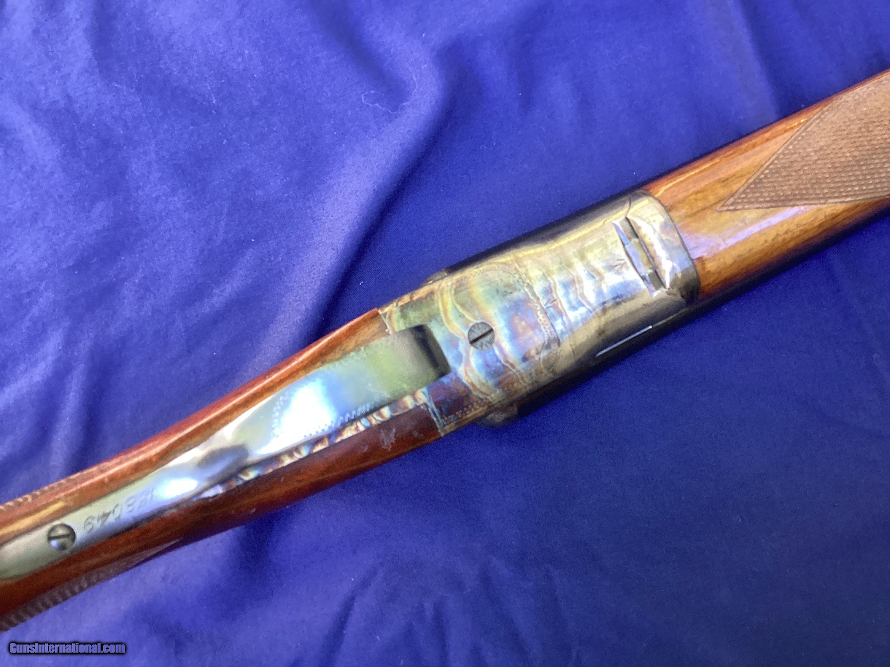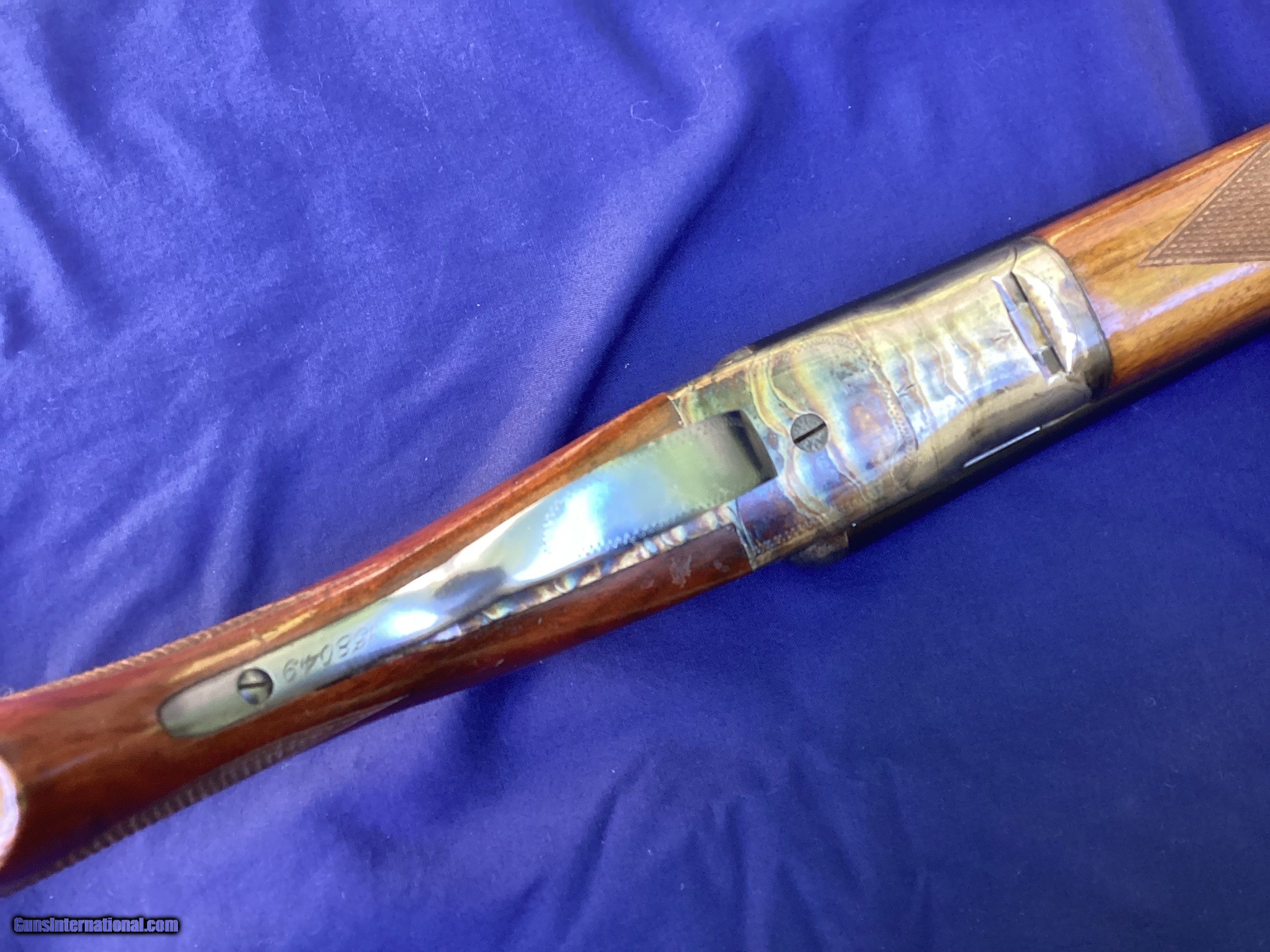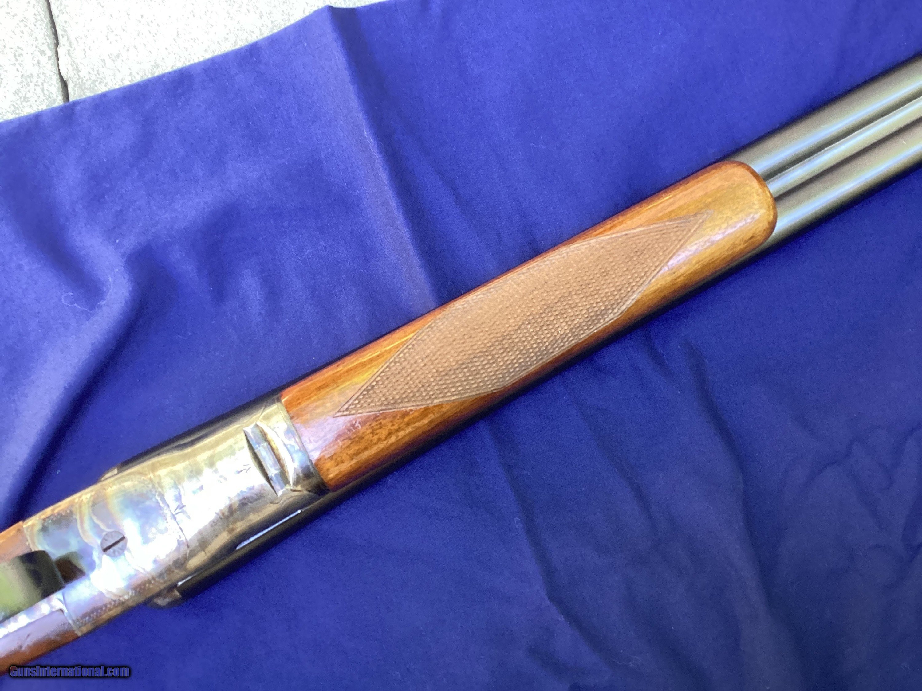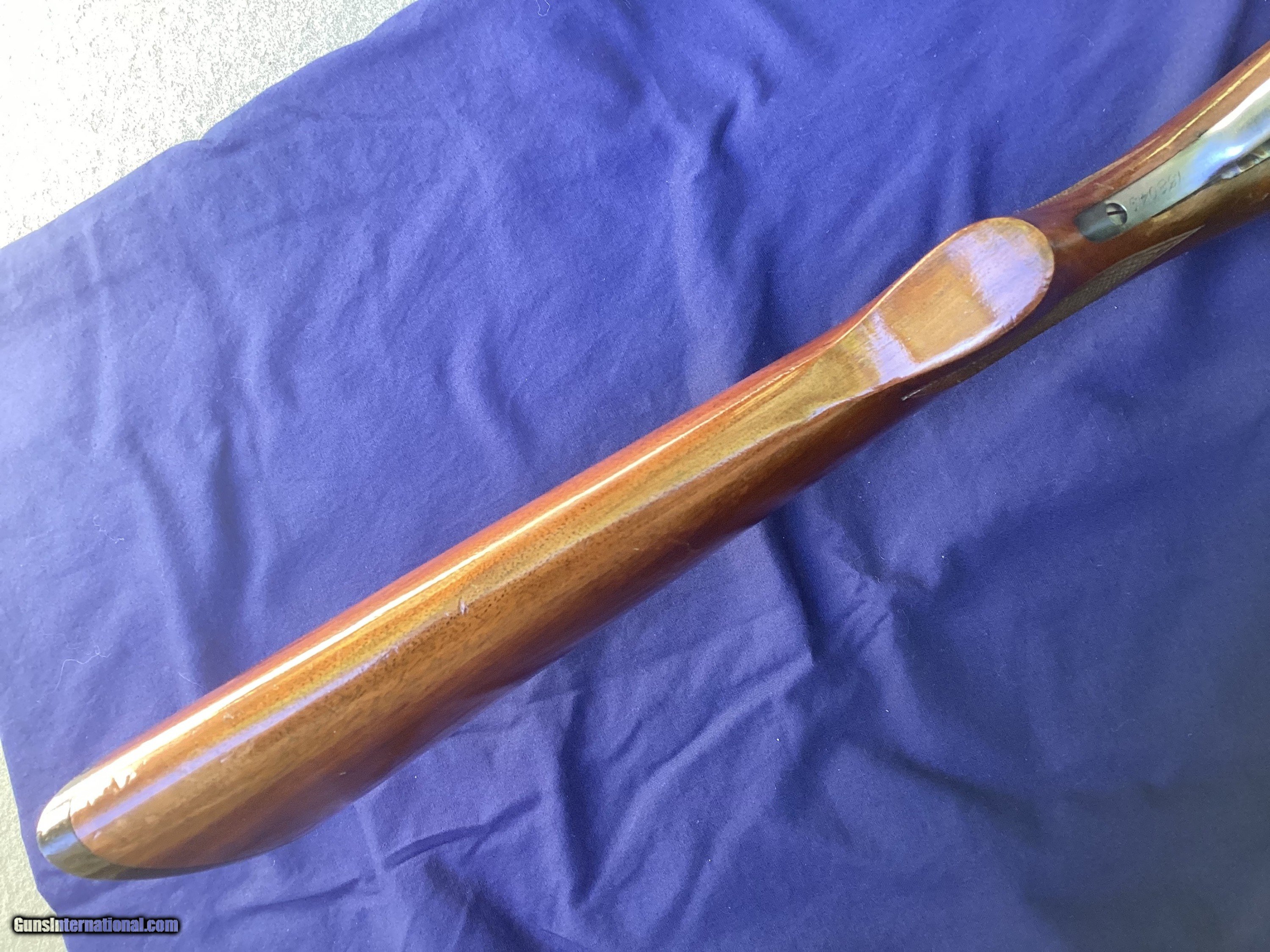Description: Fox Sterlingworth made 1937, 12 gauge, 28" barrels. In very fine original condition with all case colored receiver, and 99+% bluing. The action is as new, as are the bores. A collector quality Fox. Please examine the photos to see actual condition. Certified checks or USPS MOs only accepted. Shipping by Fedex will be $60.00 in the CONTUS. Cannot ship to Ca., NYC, and N.J. will not accept C&Rs. Sorry, too old to entertain trades or financial arrangements. Please use email for contact if possible. SOLD Shotgun Gauge: 12 Gauge Manufacturer: Fox (Utica) Model: Sterlingworth Serial Number: 138049 Barrel Length: 28 Chambers: 2-3/4 Ejectors: No Condition: Fine Metal Condition: Fine Wood Condition: Vg Bore Condition: Fine Triggers: 2 LOP: 14-1/4” Manufacture Date: 1937 Choke Left: .028” Choke Right: .008” |