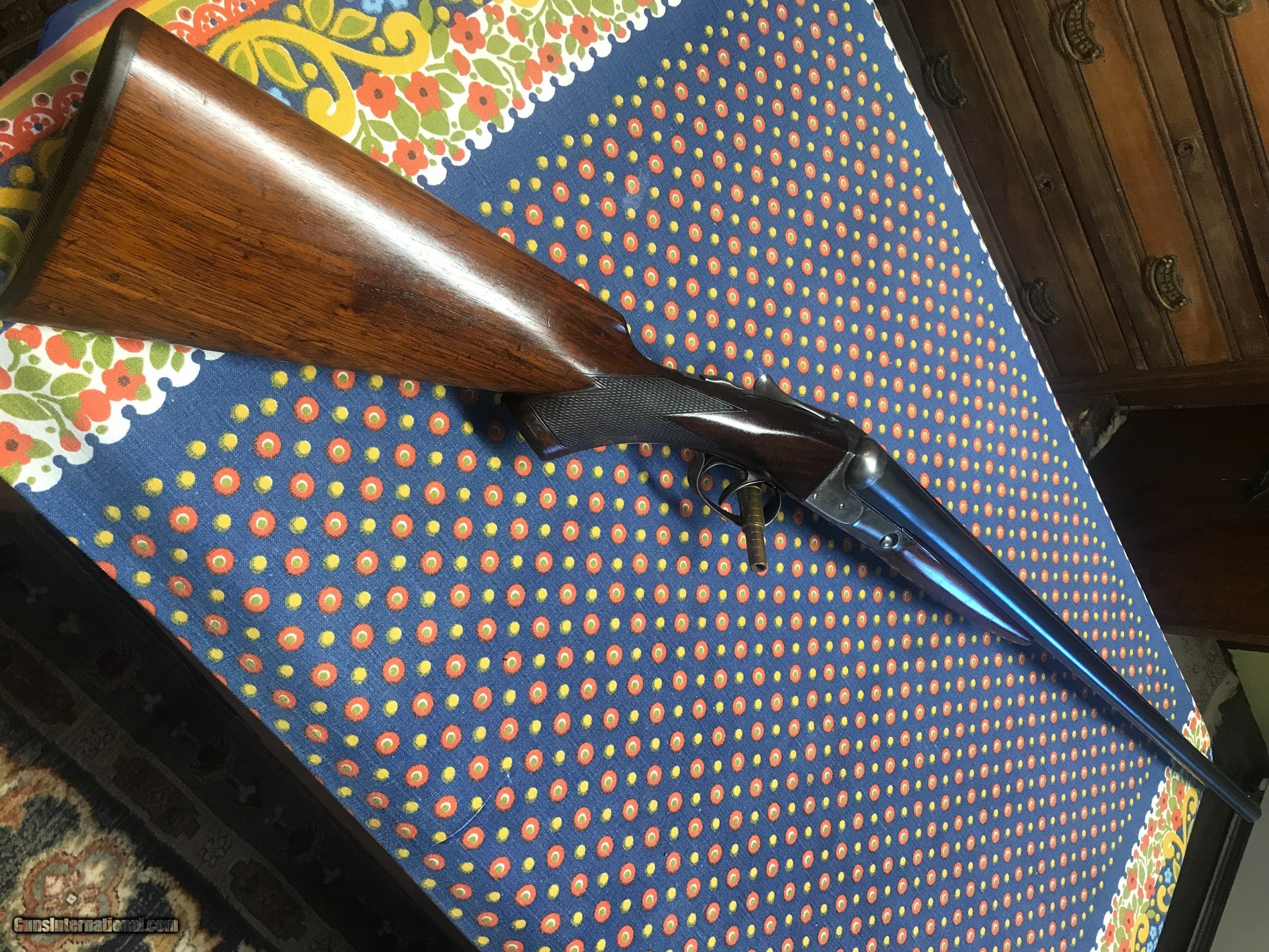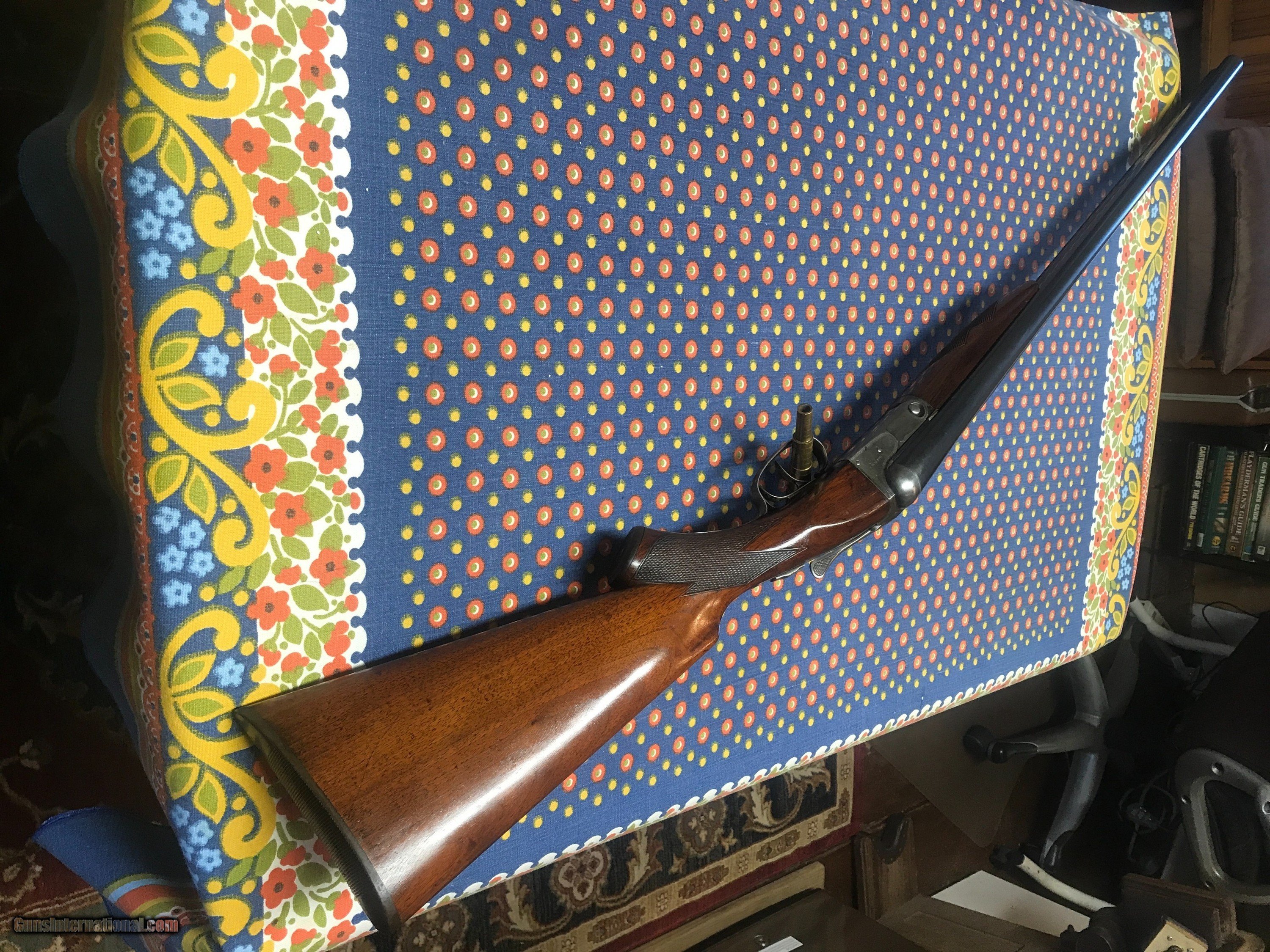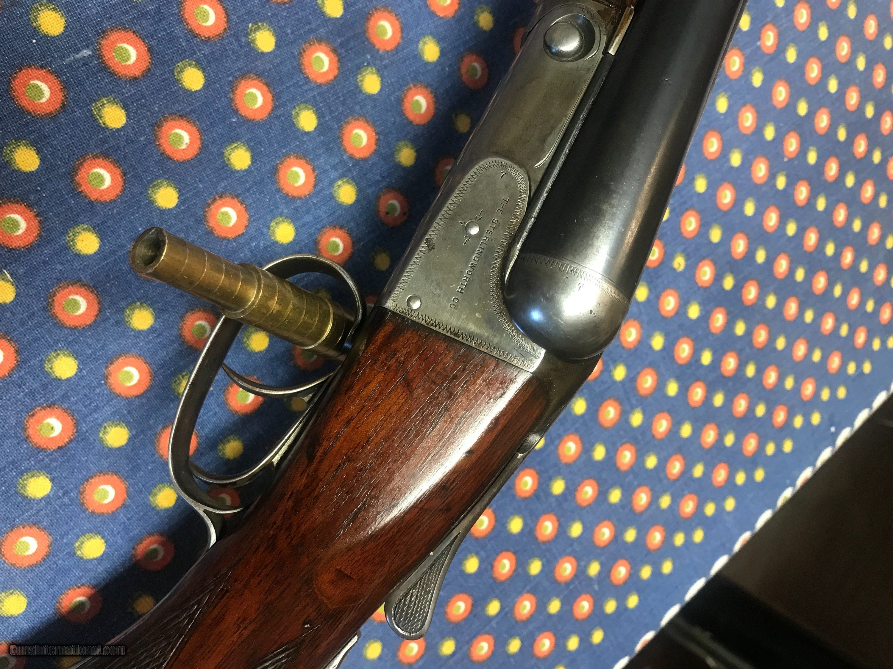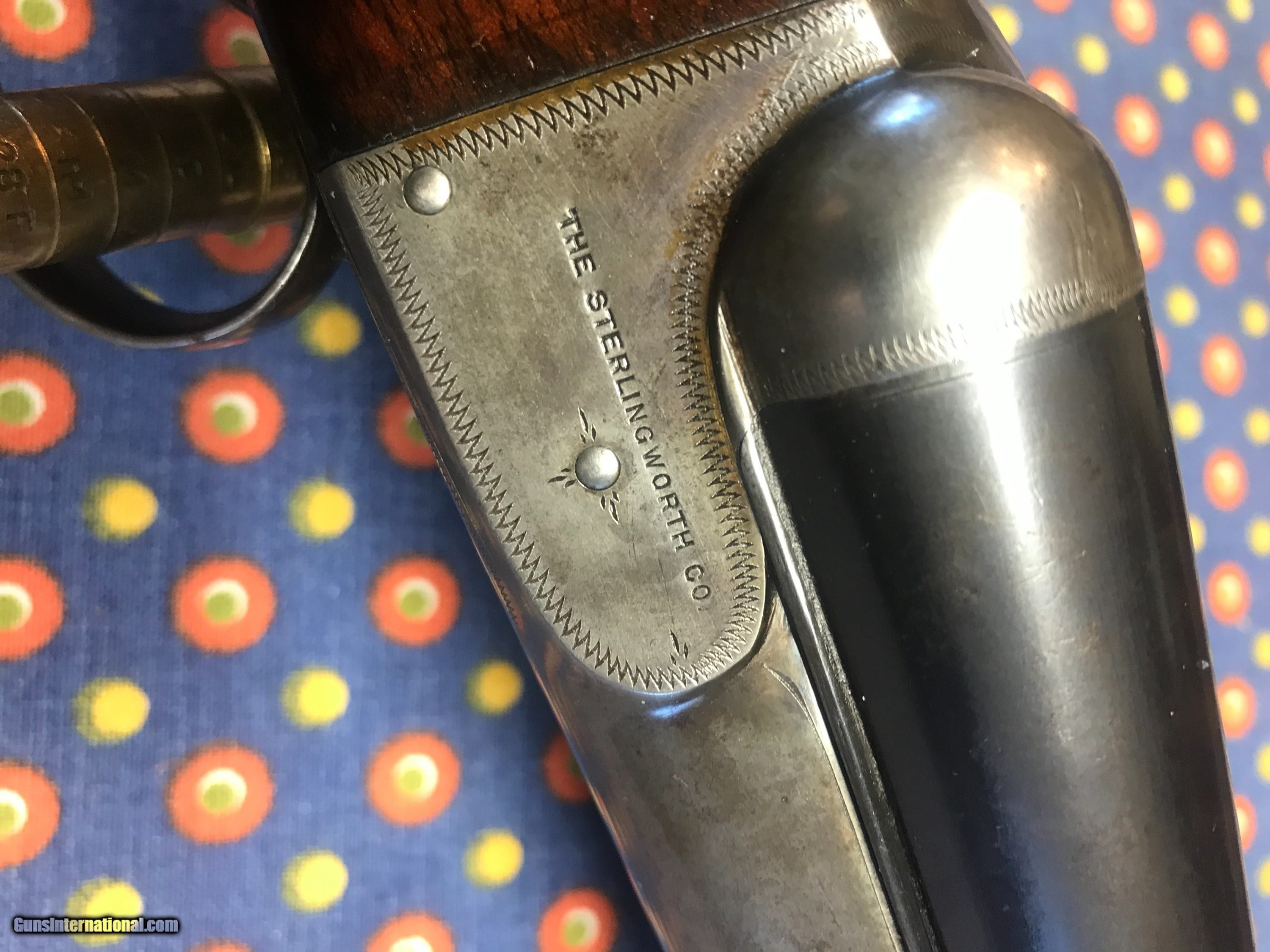 Description: This is a rare, The Sterlingworth Co. marked, 12 gauge Fox pin gun, made circa 1910...It has 30" barrels, with 2 3/4" chambers...Serial # 5021x...In addition, this rare Fox gun is in excellent condition, with about 95% + barrel blue and wood finishes...Case colors and trigger guard have mostly faded to gray...This is one of only approx. 3000 The Sterlingworth Co. stamped guns ever made...have never seen another like this one, except for the one pictured in the following link: ://foxcollectors/fox-gun-grades/sterlingworth-directory... Note the rounded frame front side panels...This feature is unlike other Fox guns, in that they have a pointed frame side panel front...Only about 100 tsc guns were made in this configuration...making it super rare!... Hard to put a value on something like this...So, offers are encouraged... SOLD Curio/Relic: Yes |