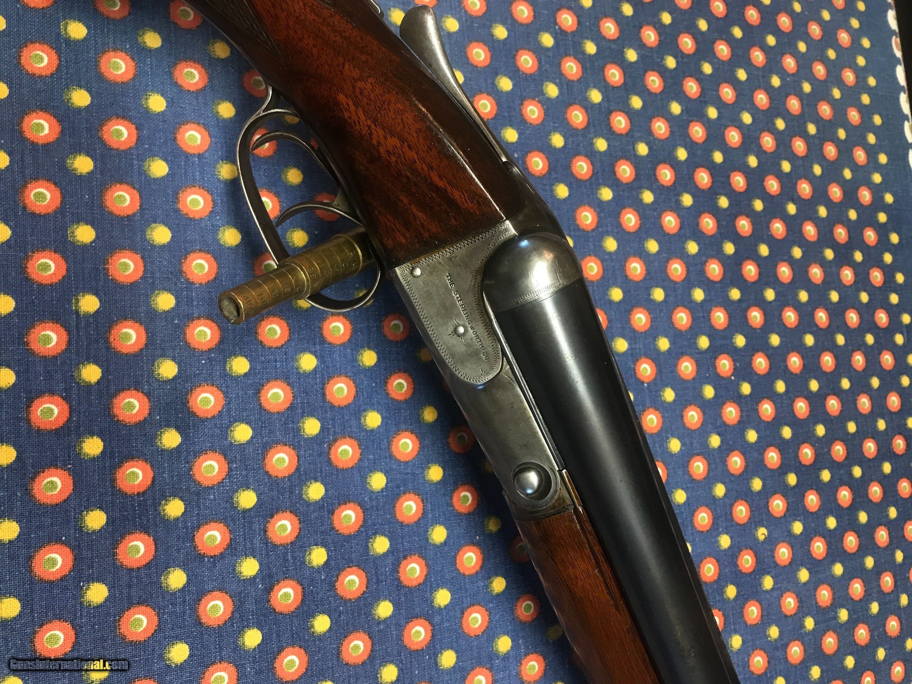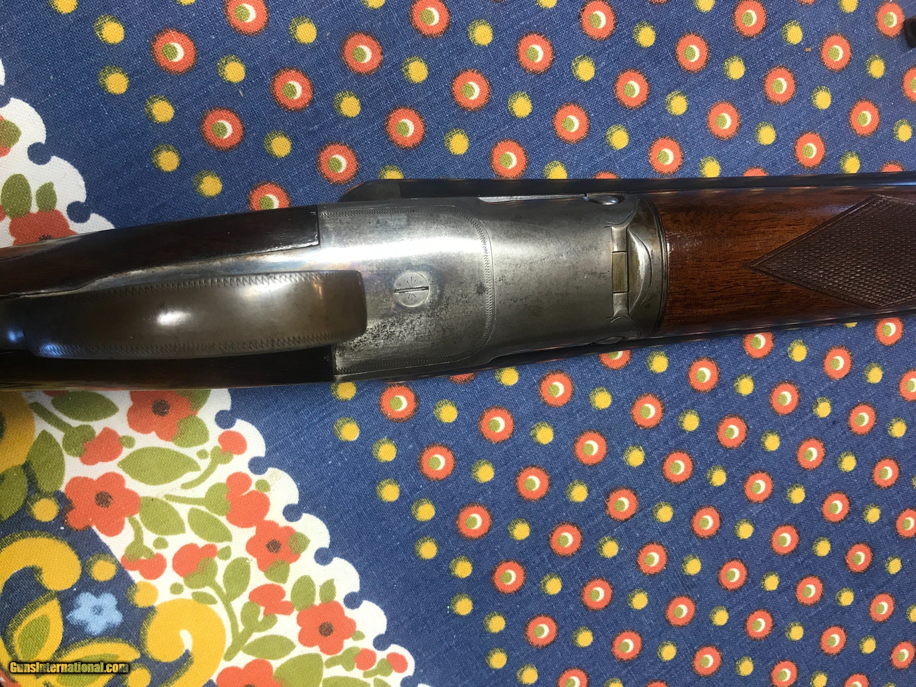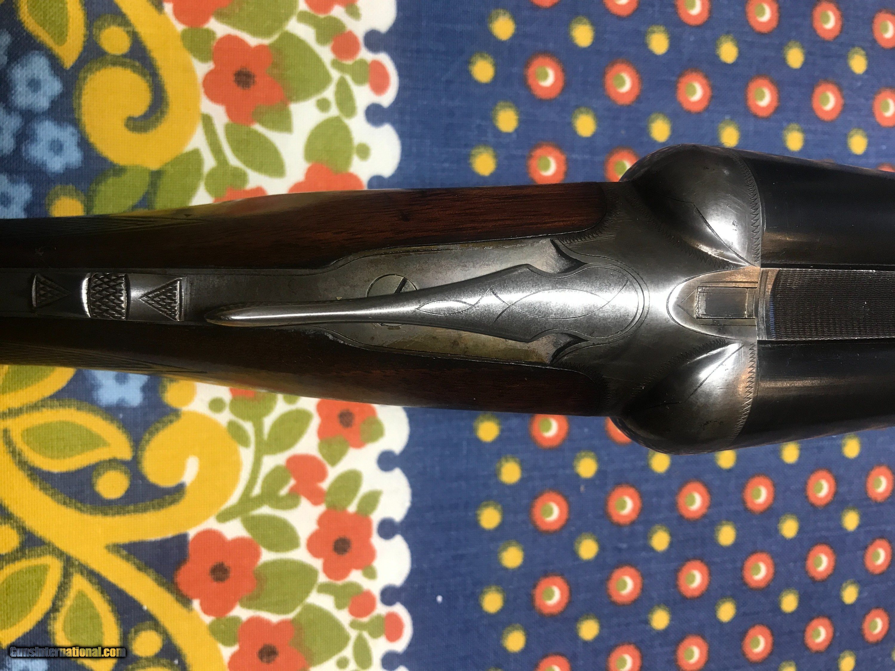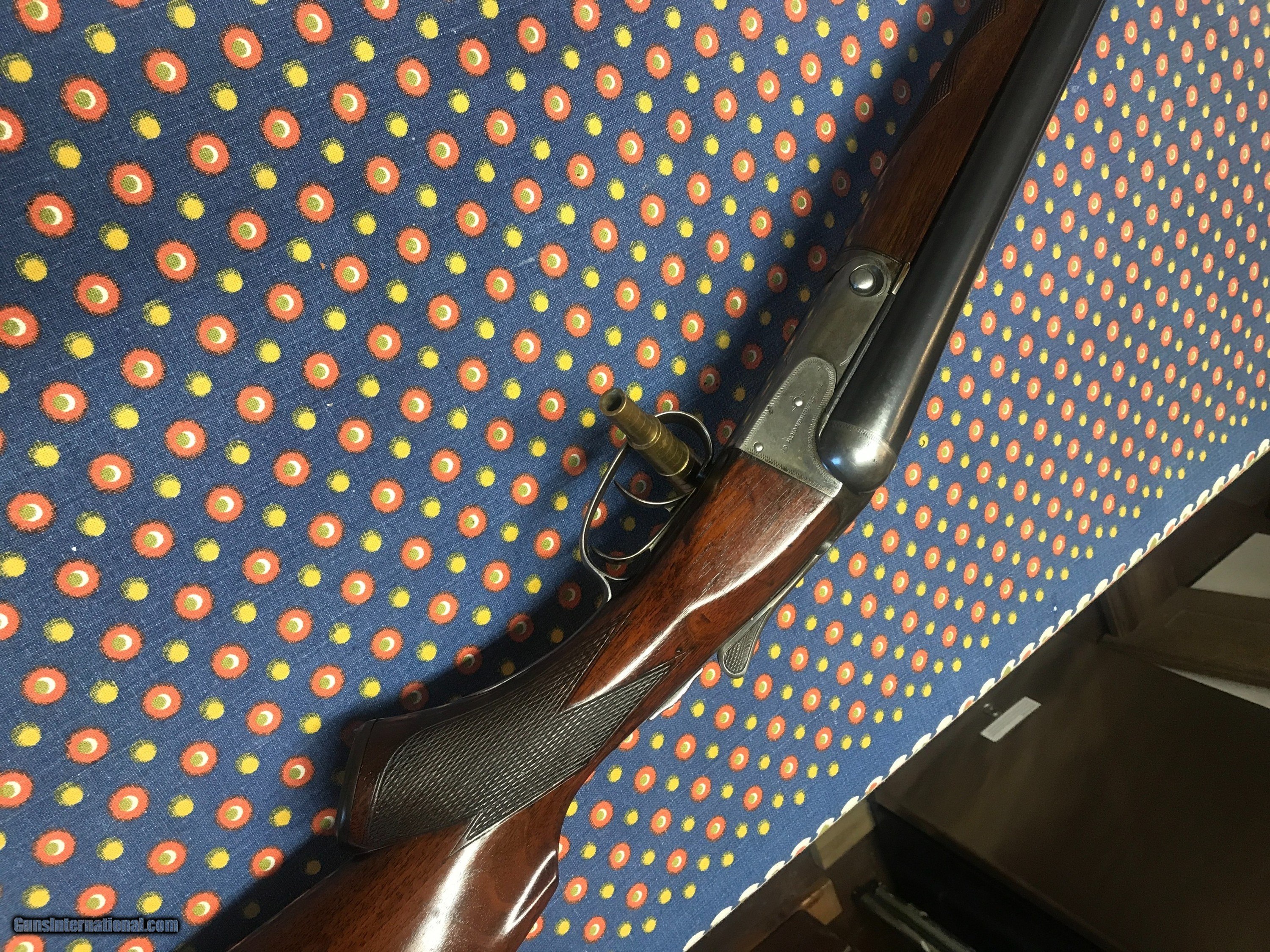Description: This is a rare, The Sterlingworth Co. marked, 12 gauge Fox pin gun, made circa 1910...It has 30" barrels, with 2 3/4" chambers...Serial # 5021x...In addition, this rare Fox gun is in excellent condition, with about 95% + barrel blue and wood finishes...Case colors and trigger guard have mostly faded to gray...This is one of only approx. 3000 The Sterlingworth Co. stamped guns ever made...have never seen another like this one, except for the one pictured in the following link: ://foxcollectors/fox-gun-grades/sterlingworth-directory... Note the rounded frame front side panels...This feature is unlike other Fox guns, in that they have a pointed frame side panel front...Only about 100 tsc guns were made in this configuration...making it super rare!... Hard to put a value on something like this...So, offers are encouraged... SOLD Curio/Relic: Yes |