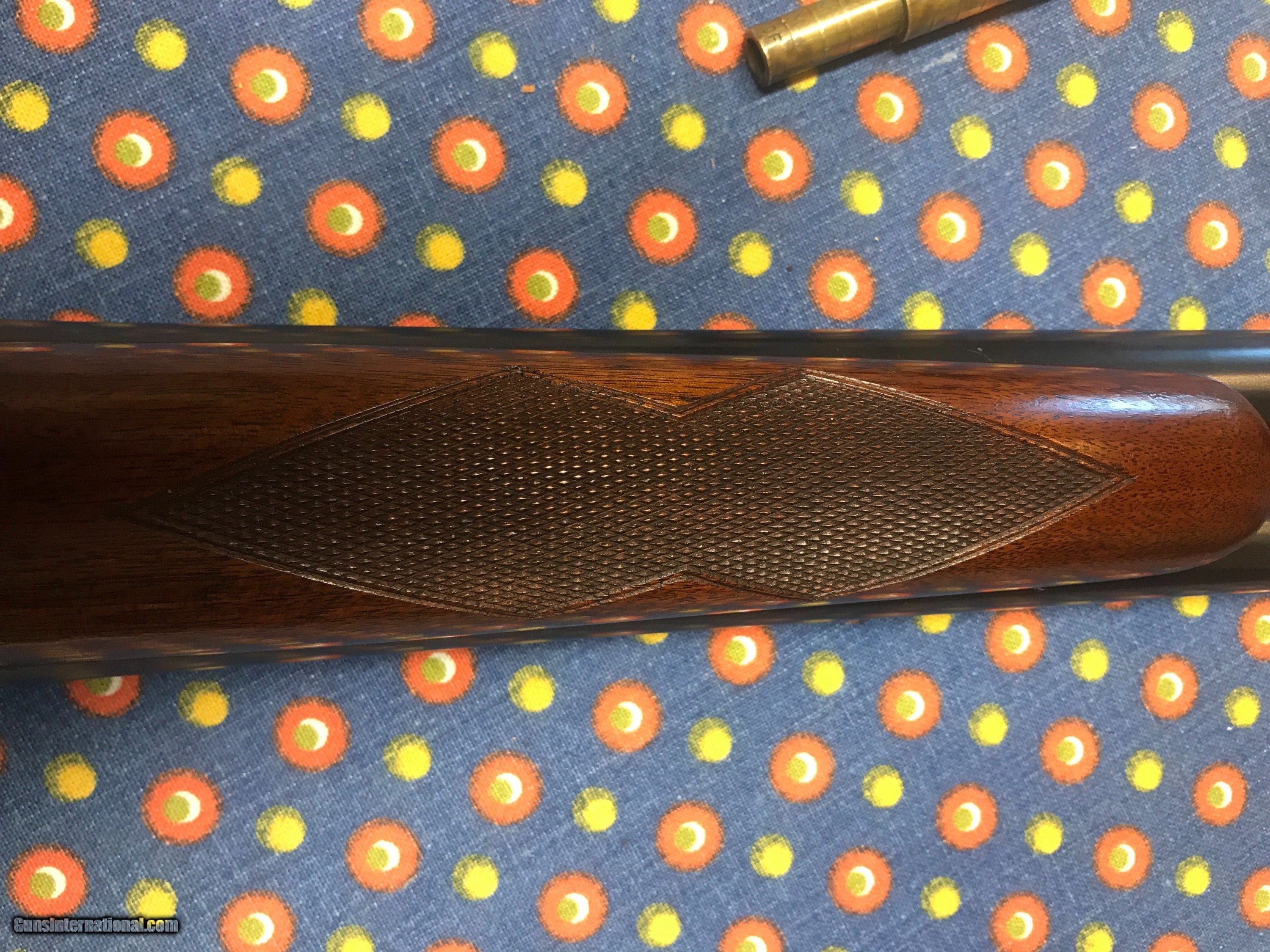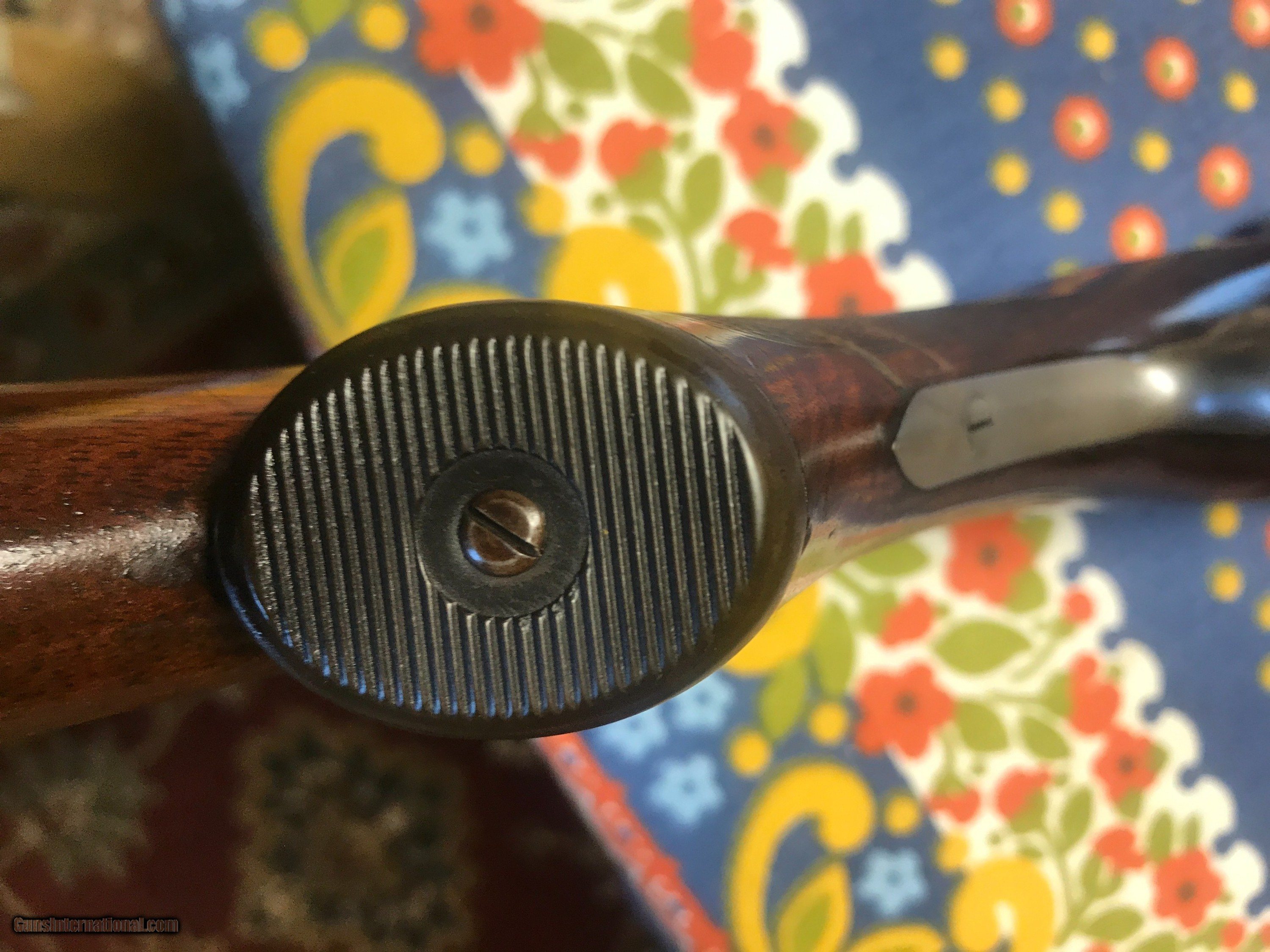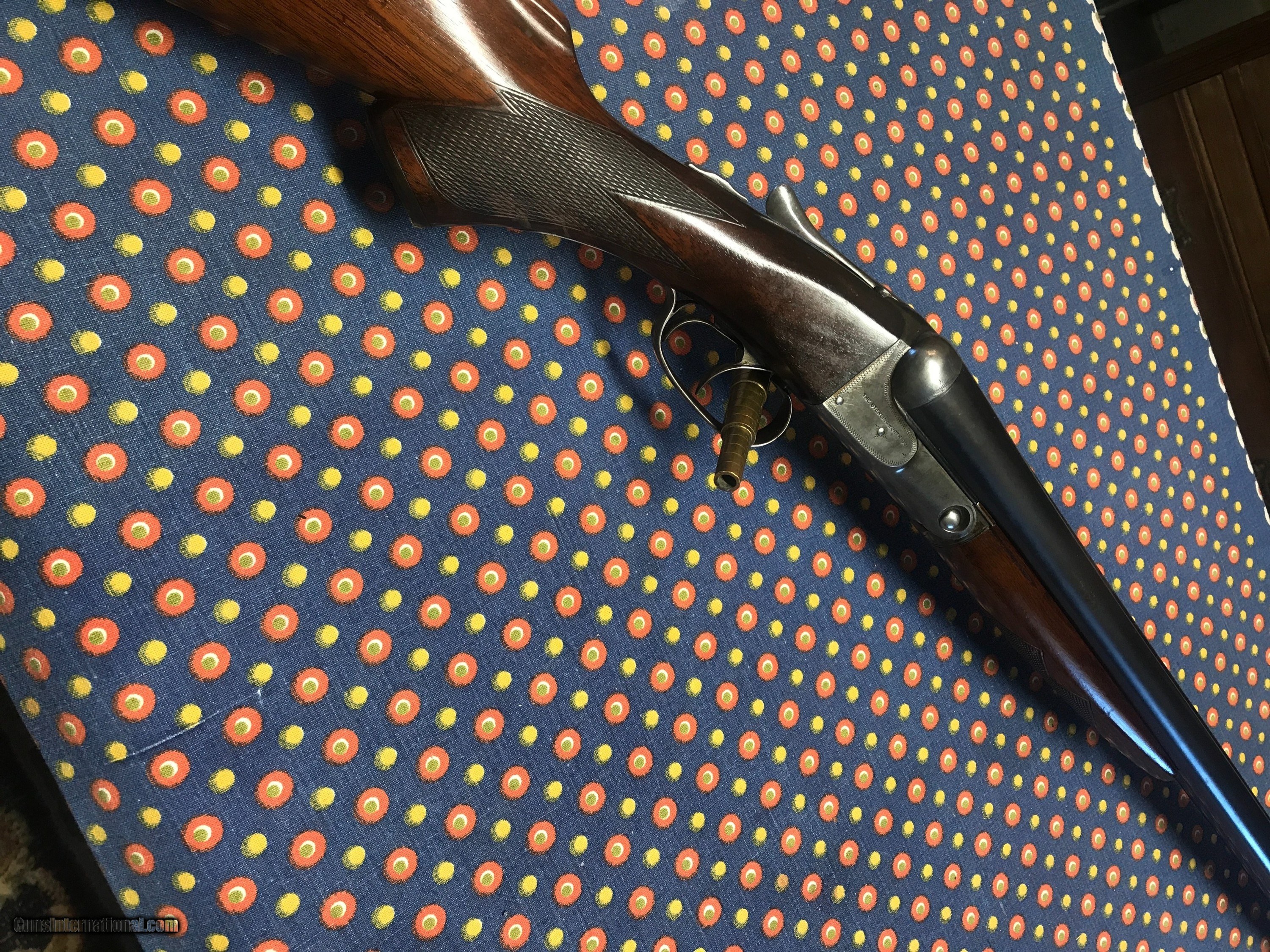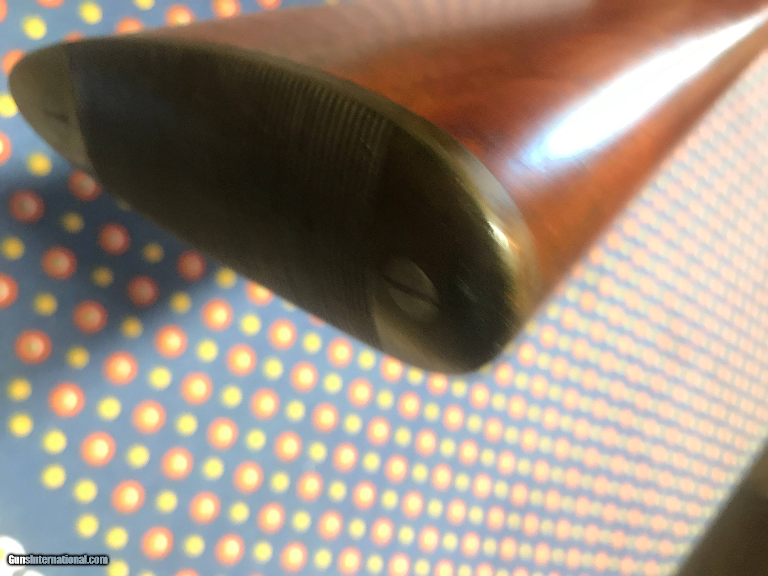 Description: This is a rare, The Sterlingworth Co. marked, 12 gauge Fox pin gun, made circa 1910...It has 30" barrels, with 2 3/4" chambers...Serial # 5021x...In addition, this rare Fox gun is in excellent condition, with about 95% + barrel blue and wood finishes...Case colors and trigger guard have mostly faded to gray...This is one of only approx. 3000 The Sterlingworth Co. stamped guns ever made...have never seen another like this one, except for the one pictured in the following link: ://foxcollectors/fox-gun-grades/sterlingworth-directory... Note the rounded frame front side panels...This feature is unlike other Fox guns, in that they have a pointed frame side panel front...Only about 100 tsc guns were made in this configuration...making it super rare!... Hard to put a value on something like this...So, offers are encouraged... SOLD Curio/Relic: Yes |