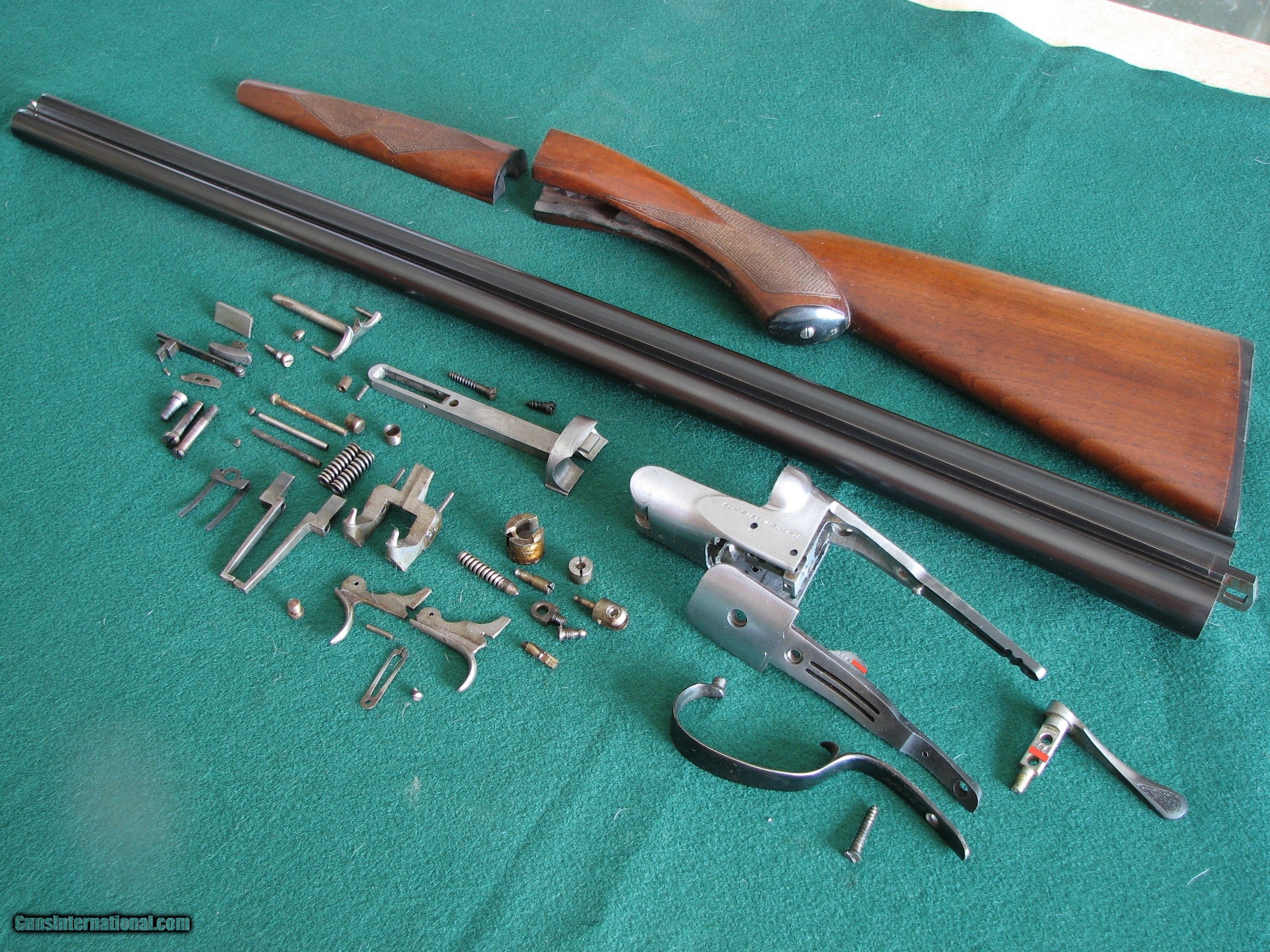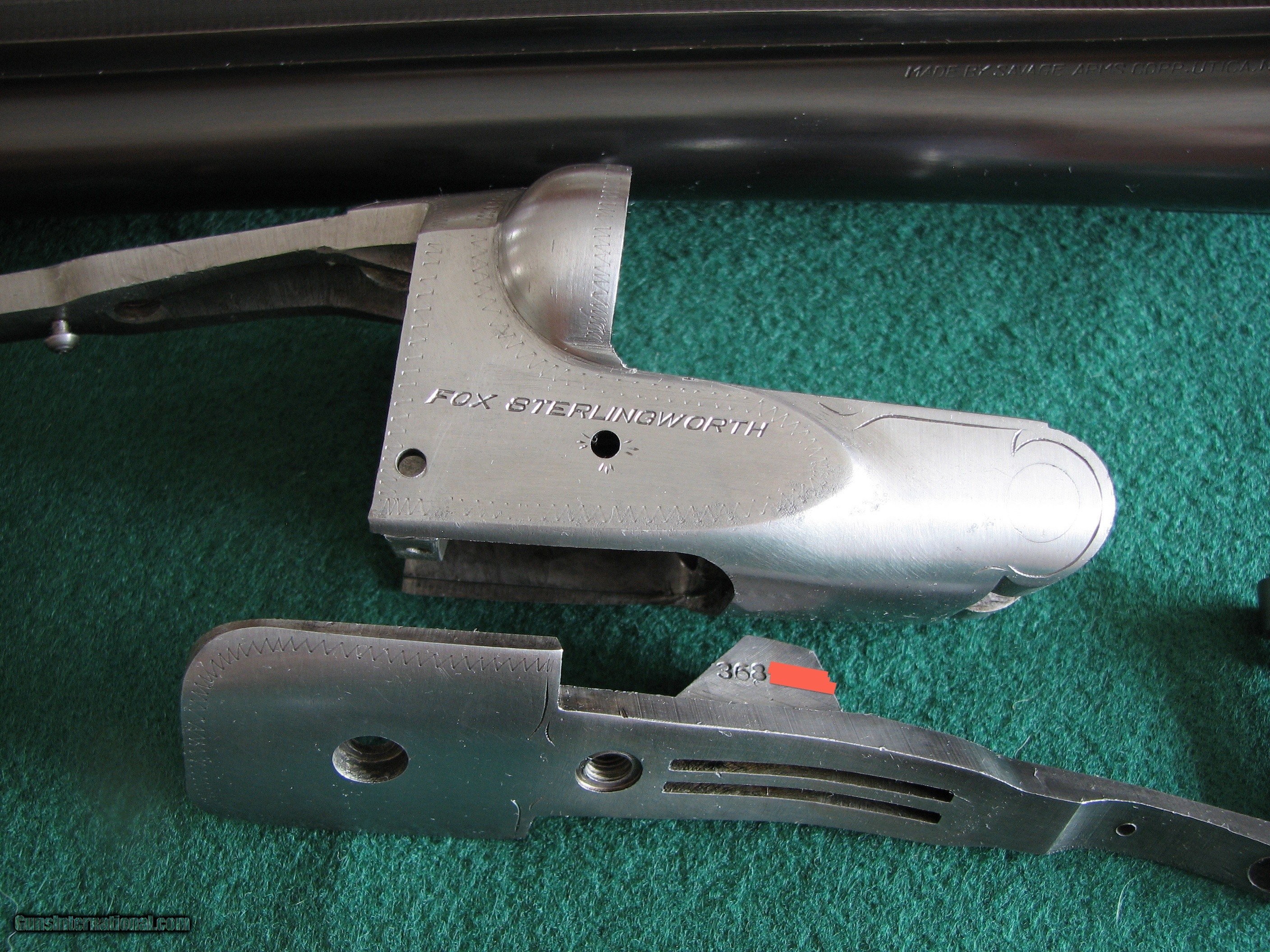 Description: Offered is a complete Utica-made Sterlingworth, 16 gauge, extractor gun. I obtained this gun for a personal project that, I have finally accepted, will never come to pass. The barrels are 28" and the bores and chambers are factory-mint (that means actually mint, not what some people consider to be "mint"). The barrels are choked modified(.014") and full (.030"). Barrel walls are >.050" at their mid-point. As is typical for a small-frame Fox, the factory barrel weight stamps are illegible. Anyone who knows me will know that I would never even contemplate a project if the bores were not in perfect original condition. They will also know that I will not start with a "rat" gun. The gun is 100% complete, down to the last screw and pin, and all numbers match. The case-hardened parts have been properly annealed, so it's ready for your gunsmith to do whatever shaping you might like for your custom, or upgrade, Fox project. Alternatively, it would make for the easiest factory restoration ever, since the entire gun is in excellent condition. Star your project with a good base, instead of junk. The buyer pays actual shipping to their FFL. SOLD Manufacturer: Fox Model: Sterlingworth Serial Number: 368XXX Barrel Length: 28 Choke Left: Full (.030") Choke Right: Modified (.014") |