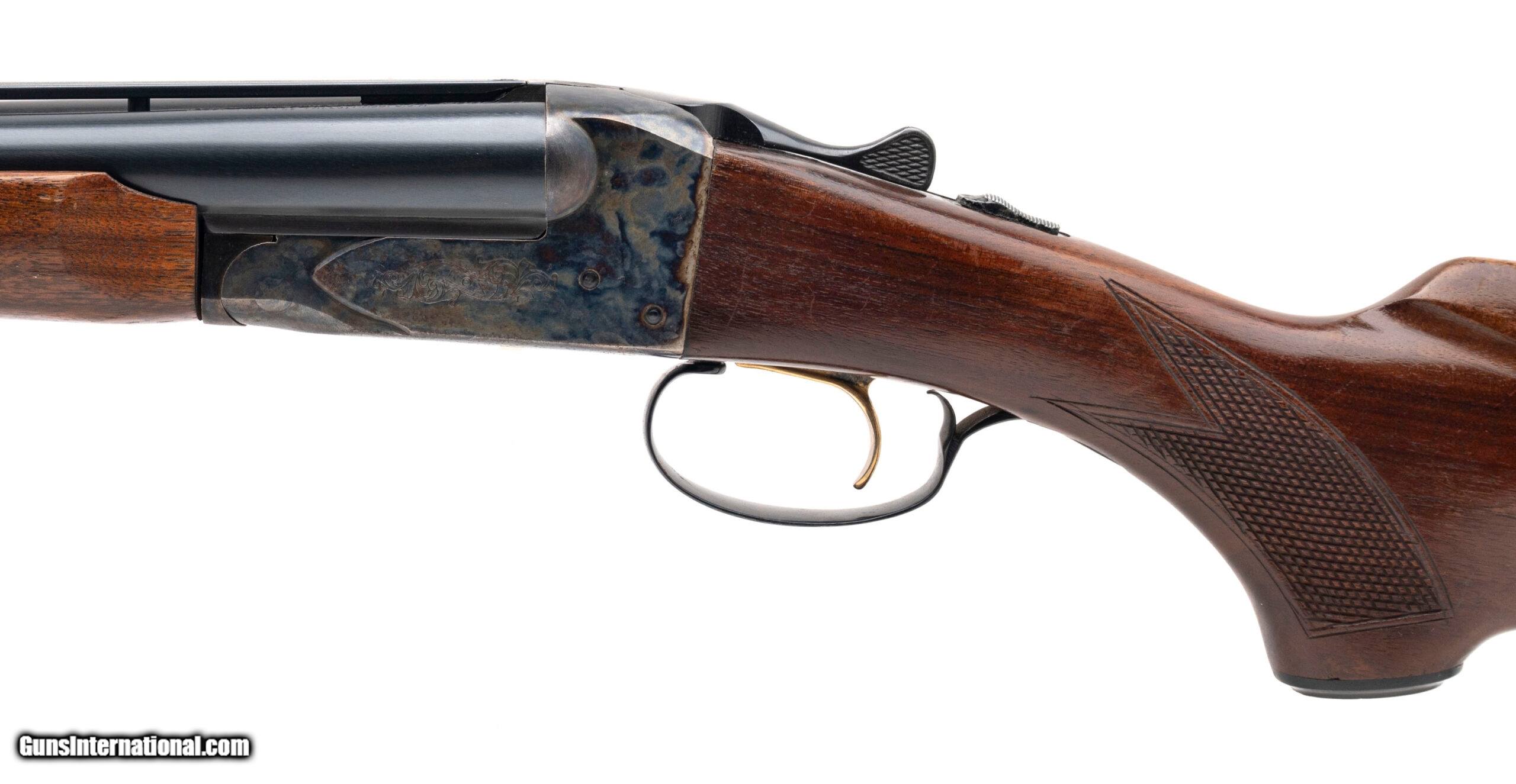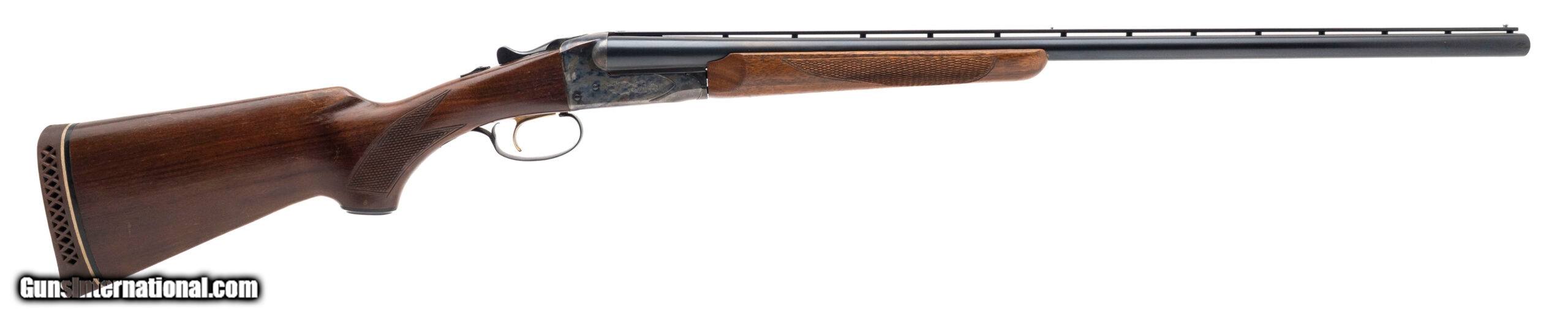 Description: "NSN made circa 1960’s-70’s. 20 gauge side by side shotgun with 28" vent rib barrels, 2 ¾" chambers, threaded for Briley chokes including 2 Skeet chokes. Box lock with extractors, gold plated single non-selective trigger and automatic safety. Checkered walnut furniture, beavertail forearm and a 13" LOP from the rear positioned single trigger to a white line recoil pad. Overall condition is very good with some light wear and handling marks, strong case colors on the action and excellent bores. Price: $895.00 Contact Seller |