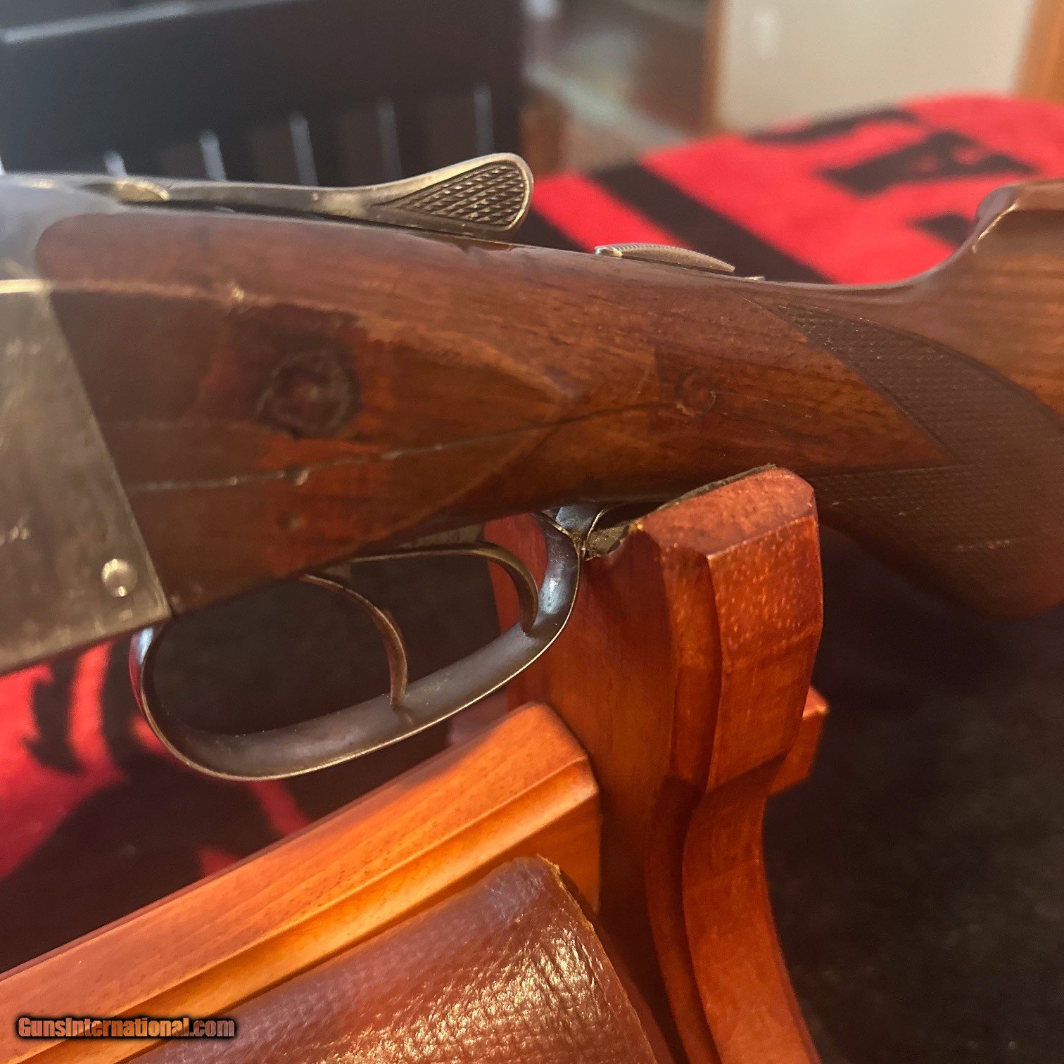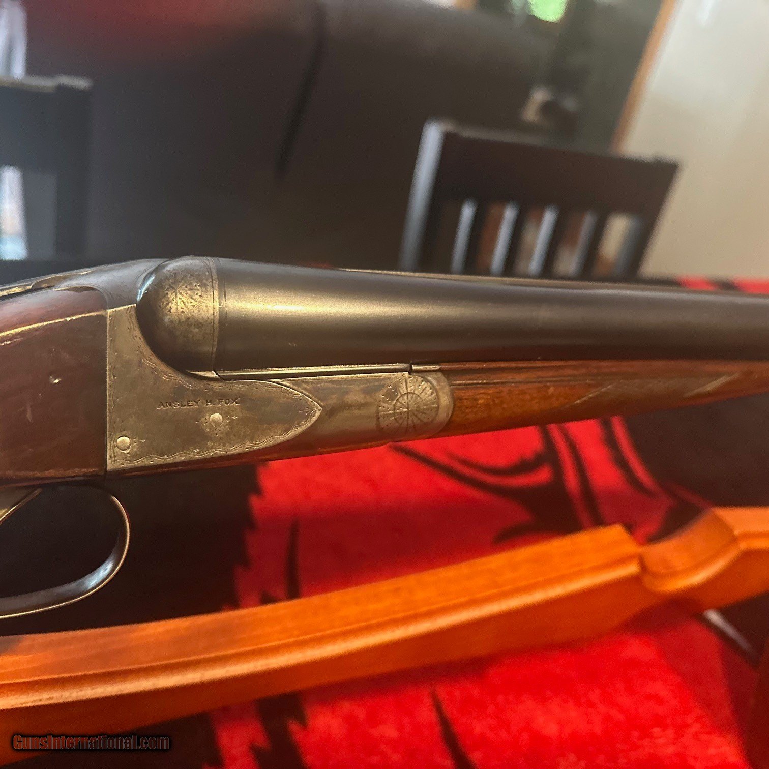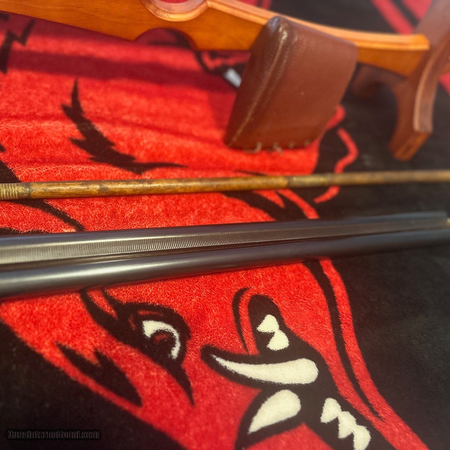 Description: SOLD PENDING FUNDS----- I purchased this project gun a while back to fix up and shoot but I have decided that the work needed is beyond my capabilities so I am moving it along to someone else who may want it. It is an early Fox A Grade 12 gauge with two barrels. The original Krupp barrels were trimmed at some time to 25 ¼”. They retain chokes of ic/ic. They are in very good condition with no rust and mirror bores. They are #3 weight. The gun must have been sent back to Savage at a later date to be fitted with a set of 28” Fox Savage Barrels, choked M/IM. These barrels are also serialized to the gun. These barrels are also in excellent condition with good bluing and no rust or dents. The bores are mirror bright. As noted in one of my pictures, the original Krupp Barrels are missing the spring and plate that should be on the barrel lug. As a result, they will not snap onto the forend. The gun locks up tight with the 28” replacement barrels and the lever is just right of center. I have not shot it but it fires fine on snap caps, and the automatic safety still works, but it very stiff to put in the firing position. The stock is in rough shape. It has been pinned twice, and a long crack has been glued. There is also a small chip out of the stock at the right side of the tang. I do not know if it can be saved or not, nor do I know if it is safe to shoot in this condition. The lop is 14”, the DAC is 1 ¾” and the DAH is 2 ¾”. The replacement barrels are #1 weight. It comes with what I believe is an original wooden cleaning rod and a leather lace up butt pad. If you would like any more information, just ask. Price is $775 shipped to your FFL. Thanks if looking. I am selling this gun as is, with no right of return. SOLD Manufacturer: fox Model: A Barrel Length: 28 Condition: good Wood Condition: bad Bore Condition: Excellent LOP: 14 1/4 |