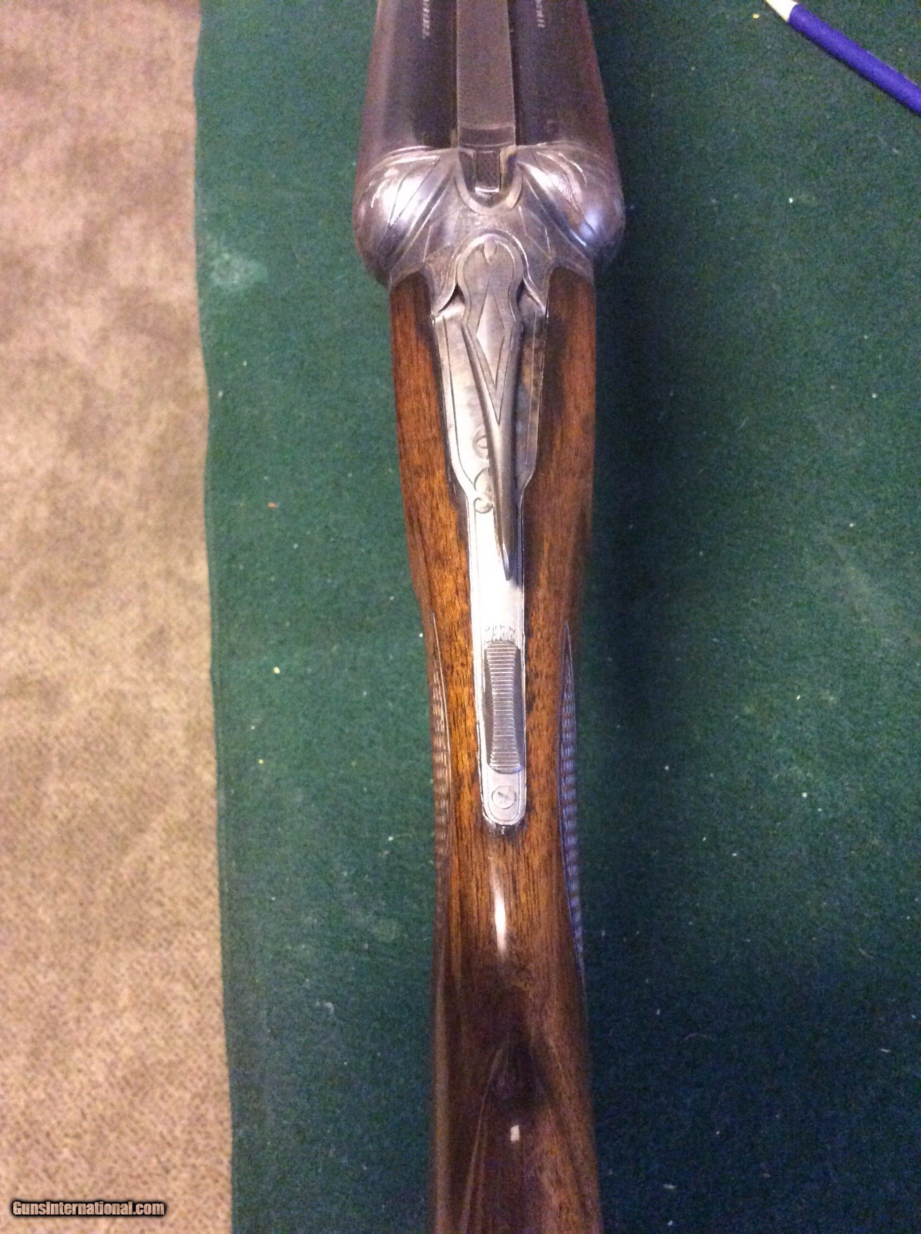 Description: Really nice and clean A H Fox A grade shotgun. Made in 1927, 28” barrels number 3 weight. Bore dia of 726 and choke construction of 22 in right barrel and 42 in left. Mod and full. Gun weight is 7 lb 3 ozs. No cracks, sight dent in forearm shown in picture with pencil point. Some case color left, engraving nice, barrels have some light scratches as pointed out in picture. Gun is tight, lever sits slightly to the right. Auto safety. All screws are nice. SOLD Curio/Relic: Yes Manufacturer: A H Fox Model: A Serial Number: 32147 Bore: 12 Chambers: 2 5/8” Ejectors: No Condition: Very good Metal Condition: Very good Wood Condition: Very good Bore Condition: Excellent Triggers: Double Gauge Info: 12 Stock Comb: 1 11/16” Stock Heel: 2 7/8” Weight: 7lbs 3oz Sights: Front bead Manufacture Date: 1927 Choke Left: Full Choke Right: Mod Engraving: Yes Case: No Item Location: PA |