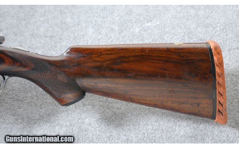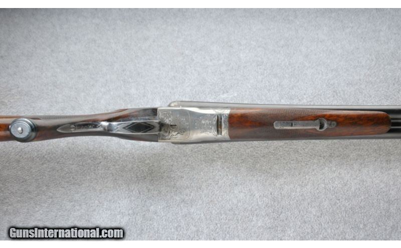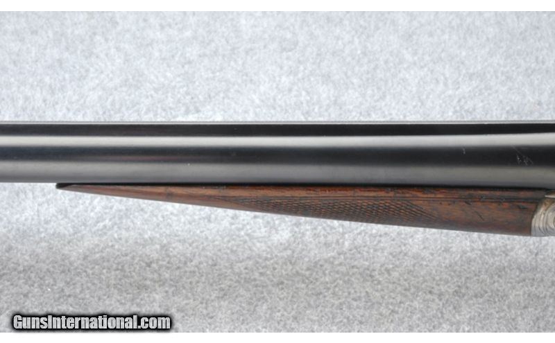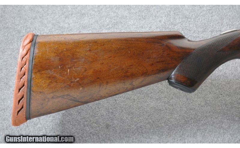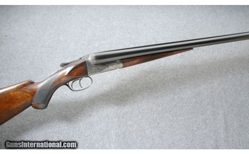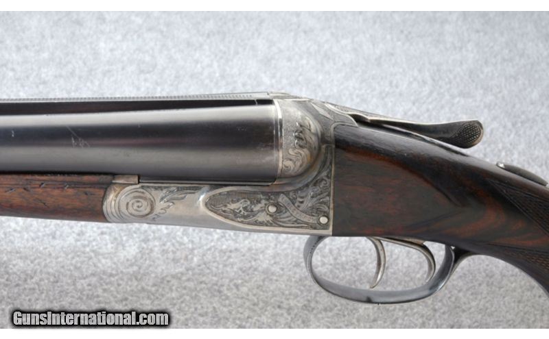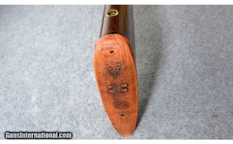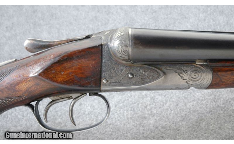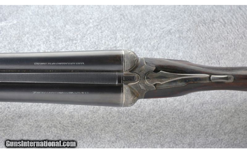 Description: This Philadelphia A. H. Fox A Grade snaps closed tightly. The barrels are on face and the top lever is right of center. The walnut is nicely figured. The barrels show lots of original finish. The action has worn to silver with a little case color showing in some protected areas SOLD Curio/Relic: Yes Manufacturer: 1924 Caliber Info: 12 Gauge Chambers: 2 5/8 inch Metal Condition: Good with a few scratches, finish wear on the action and sharp edges. There are traces of case colors in the protected areas with most of the action silvered Wood Condition: Fair with scratches, dents and finish damage. The wood is crack free. A small compass was inletted into the comb of the butt stock Bore Condition: Very good, bores are bright and the barrels free of dents Barrels: 28 inch barrels Triggers: Double triggers Stock: Flat point checkered walnut full pistol grip stock Stock Dimensions: 14 in. LOP, 1 5/8 in. DAC, 3 in. DAH it is 13 1/8 inches from front trigger to the end of wood Fore End: Flat point checkered walnut splint fore end Butt Pad: Jostam Anti Flinch red rubber recoil pad which has collapsed and hardened Weight: 7 lbs. 1 oz. Sights: Concave game rib with single bead Chokes: Right barrel constriction 0.022 in. and 0.042 inch constriction in the left barrel with bore diameters of 0.730 inches Item Location: Lehi, UT |