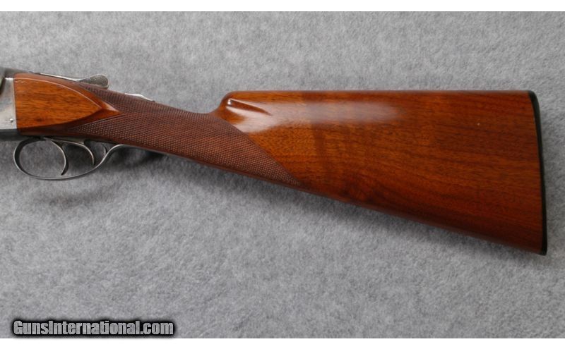 Description: Very nice A Grade with some bluing loss on the barrels and little case color left on the receiver. Bore is very good and stock is very nice condition well figured walnut. SOLD Curio/Relic: Yes Caliber Info: 12 Gauge Metal Condition: Good, with bluing wear. Little case color. Wood Condition: Very good. Bore Condition: Very good. Barrels: 30" blued. Triggers: Double trigger. Stock: Well figured checkered walnut with gloss finish. Stock Dimensions: 1 1/2" DAC, 2 1/2" DAH, 14 1/4" LOP. Fore End: Matching checkered beavertail with gloss finish. Butt Pad: Factory butt plate. Weight: 7 lb. 10 oz. Sights: Solid rib with single bead. Item Location: Dundee, MI |