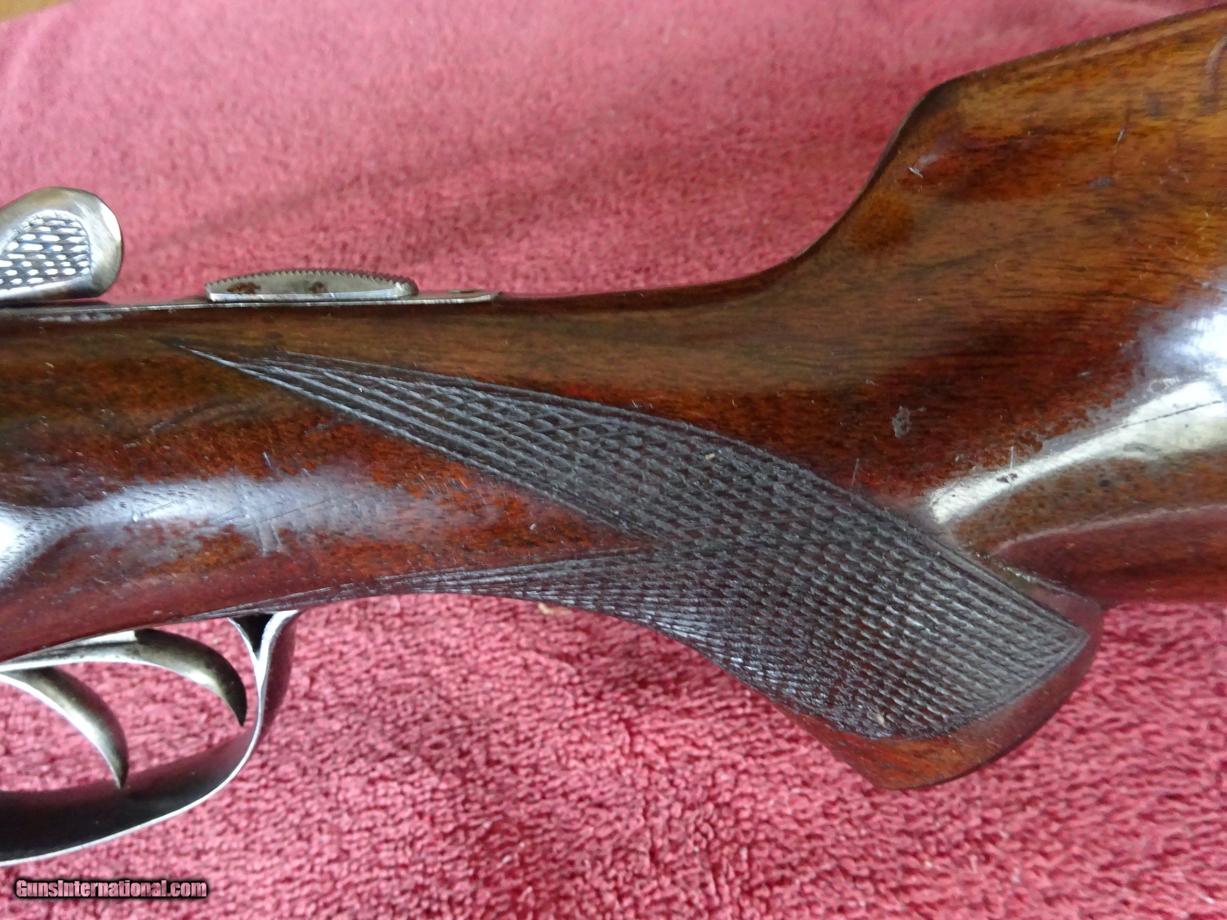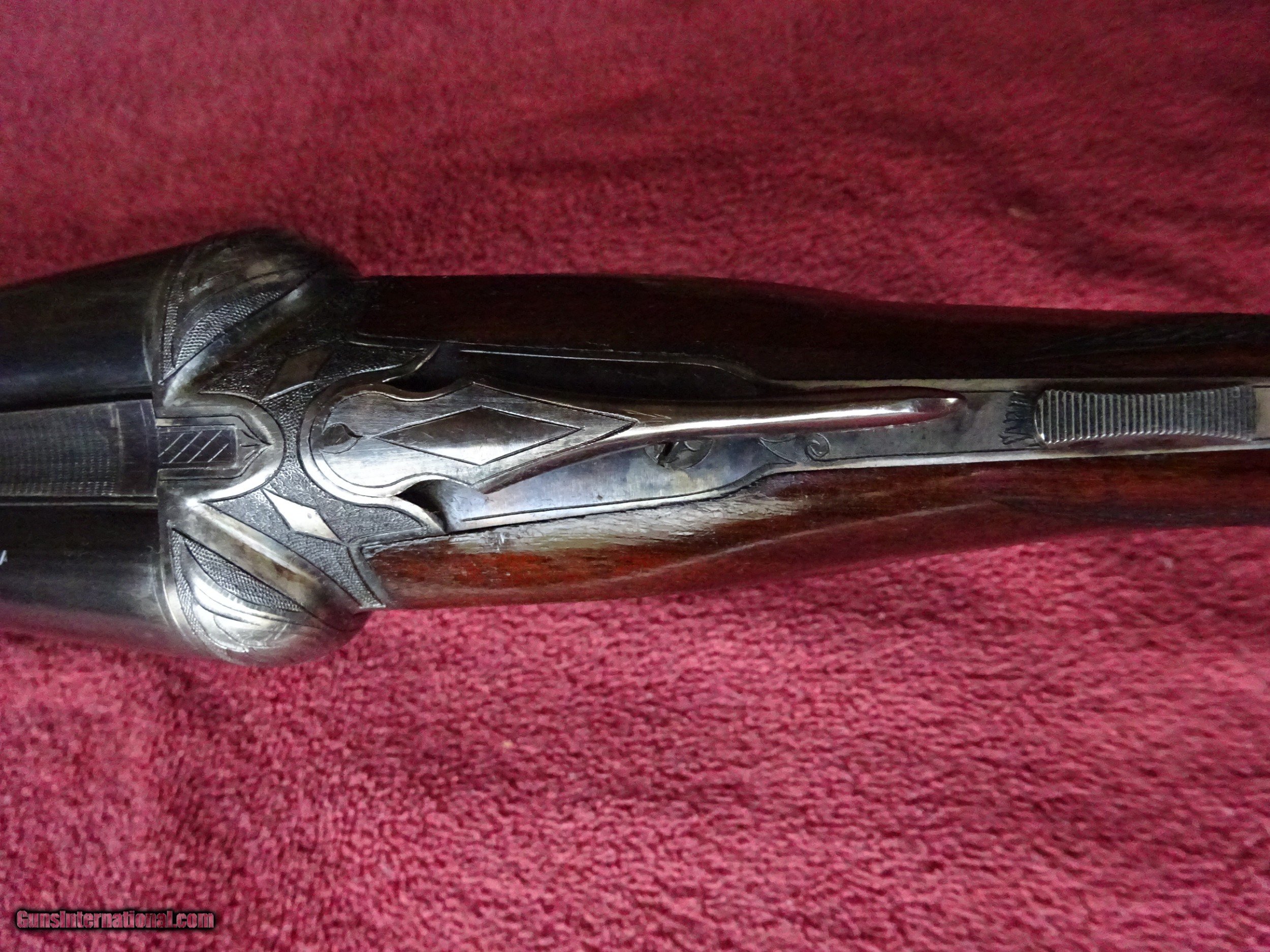 Description: A H FOX, UTICA NY, A GRADE 12 GAUGE. 30" CHROMOX FLUID COMPRESSED STEEL BARRELS, MODIFIED AND FULL, 2 1/2" CHAMBERS, GOOD BUT THIN BLUE, NO DINGS OR DENTS, MIRROR BRIGHT BORES, SINGLE SIGHT, BARRELS RING NICELY. CLEARLY MARKED NUMBER TWO WEIGHT. TOP LEVER TO THE RIGHT, TIGHT ON FACE, ATTRACTIVE DEEP CUT ENGRAVING, ACANTHUS SCROLL, FINE BORDERS, STIPPLED BACKGROUND, VIVID CASE COLOR IN THE PROTECTED AREAS, ENGRAVED SCREWS, EXCELLENT ORIGINAL TRIGGERGUARD BLUE. PISTOL GRIP STOCK, SPLINTER FOREARM, GOOD SOUND WOOD, NO CRACKS OR REPAIRS. FOREARM CHECKERING SHOULD BE RECUT. ORIGINAL GRIP CAP AND JOSTAM PAD, 1 1/2" X 2 3/4" X 14 1/4", 7 POUNDS 6 OUNCES. GOOD HONEST GRADED FOX MADE IN 1933. $1475.00 + $50.00 Insured shipping to an FFL address. See all Pats gun listings on this site! We also have hundreds of pieces of ORIGINAL gun company advertising & memorabilia available for sale on our site SPORTINGCOLLECTIBLES. We have no reprints or reproductions. Email for more information. SOLD Curio/Relic: Yes |
