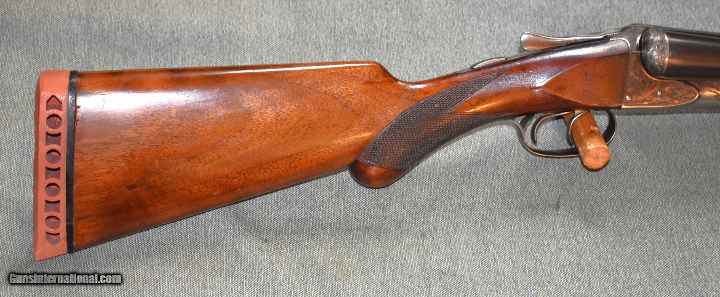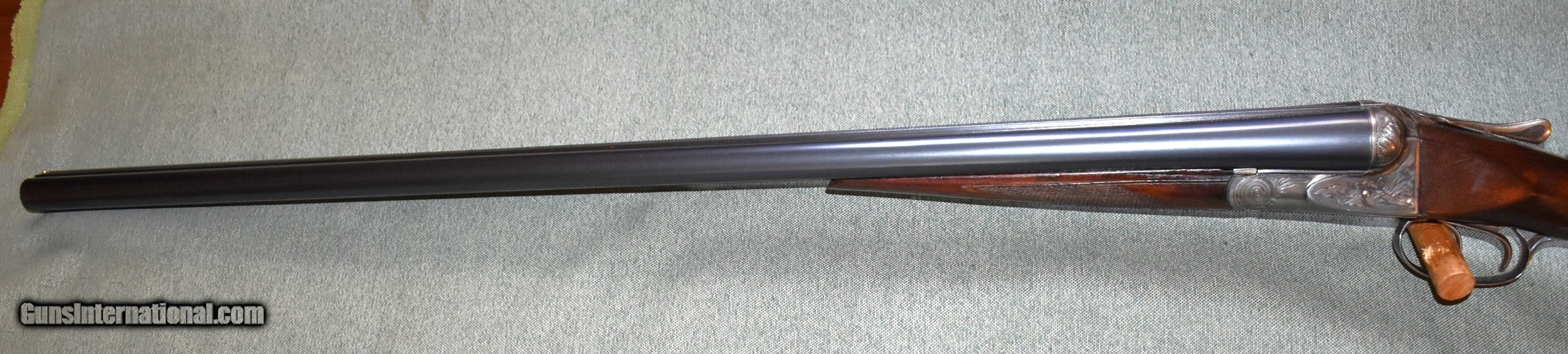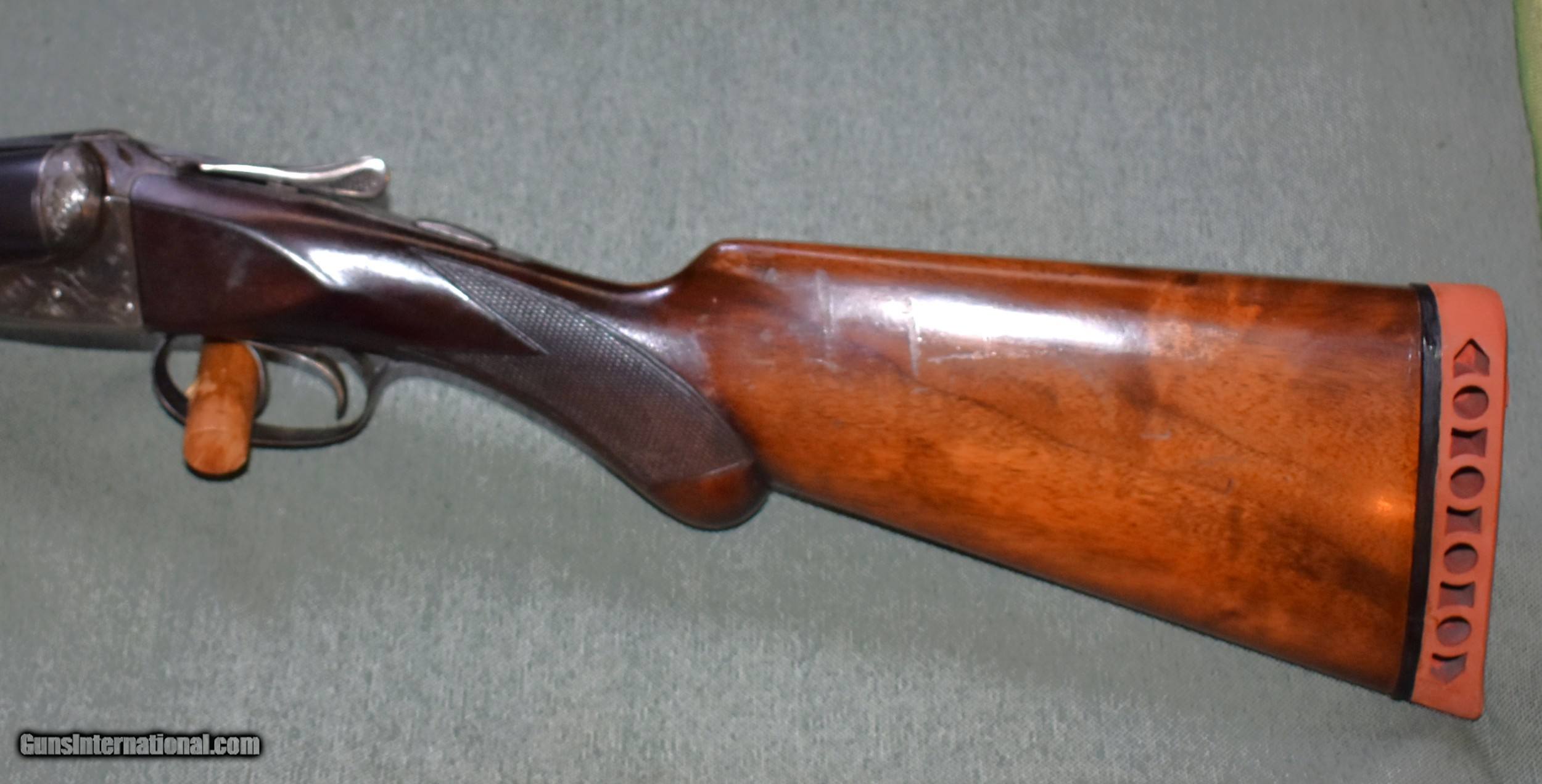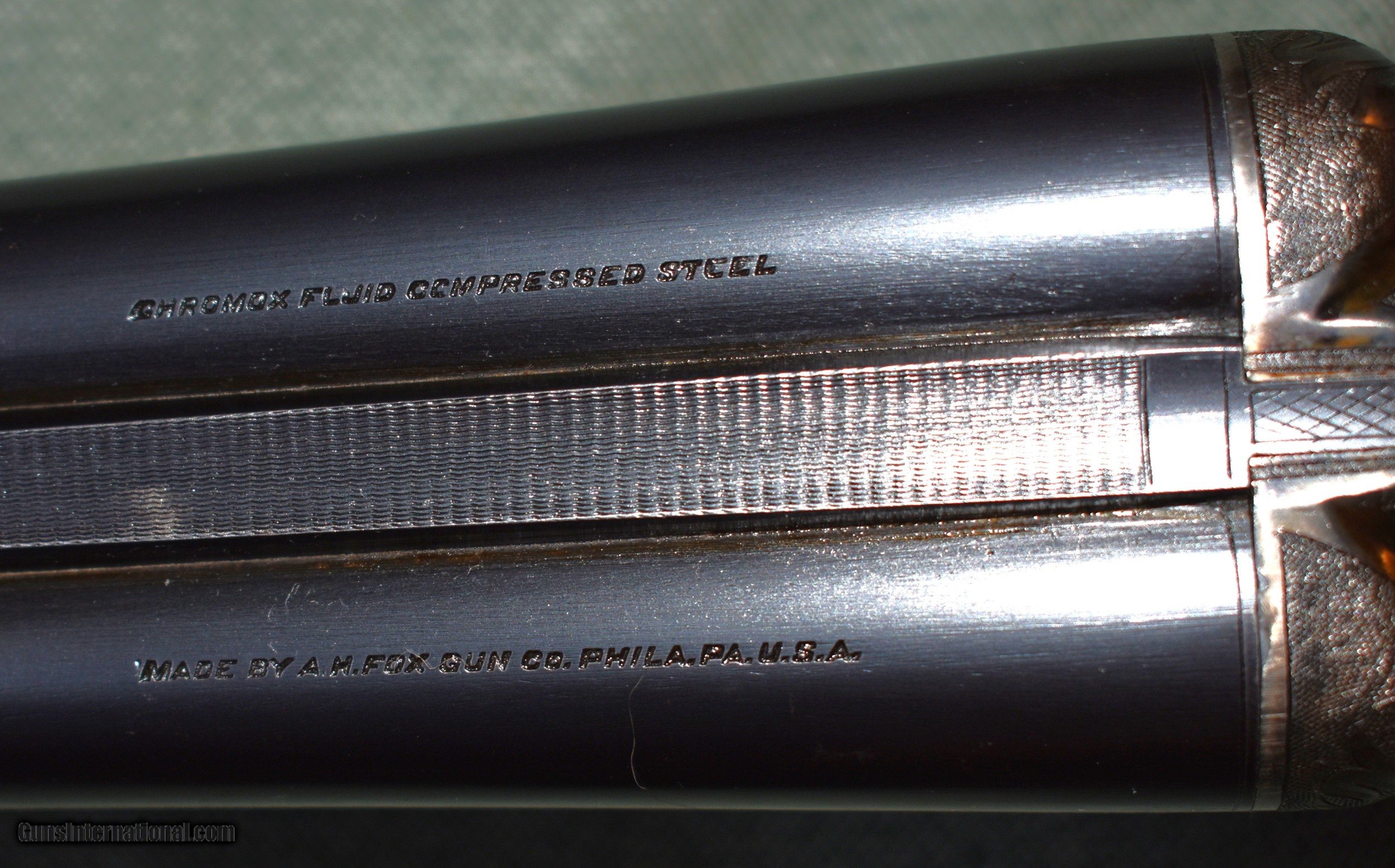 Description: A.H.Fox 12 gauge A grade built in 1921. This gun has 30" chromox steel barrels choked full and full. The gun retains around 50% of the original case color, 90% of the original barrel blue,and 80% of the original wood finish. The barrels are on face and lock up tightly to the action with no play. The top lever is still to the right indicating that the gun has not been shot a great deal. The stock is sound with no cracks or damage. The stock has a 14" LOP over a period correct Ranger recoil pad. This is a solid hunting gun that would make a great turkey gun or pheasant gun. C&R eliglble.Sale Pending SOLD Shotgun Gauge: 12 Gauge Manufacturer: A.H.Fox (Phildelphia) Model: A Serial Number: 27638 Barrel Length: 30 Chambers: 23/4 Ejectors: extractors Condition: Excellent Metal Condition: Excellent Wood Condition: Very Good Bore Condition: mint Barrel Type: Chromox Steel Action: Double Barrel Triggers: double set Butt Pad: Aftermarket recoil pad Manufacture Date: 1921 Choke Left: Full Choke Right: Full |