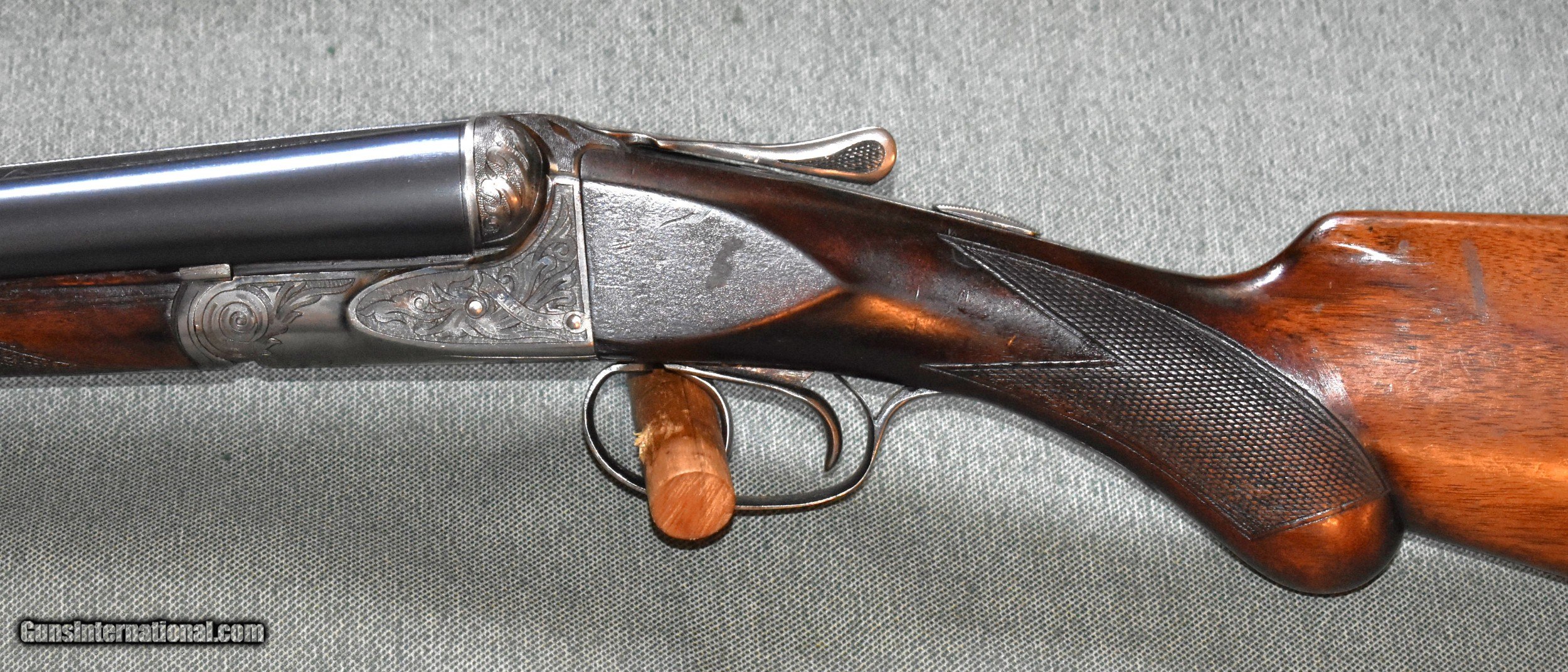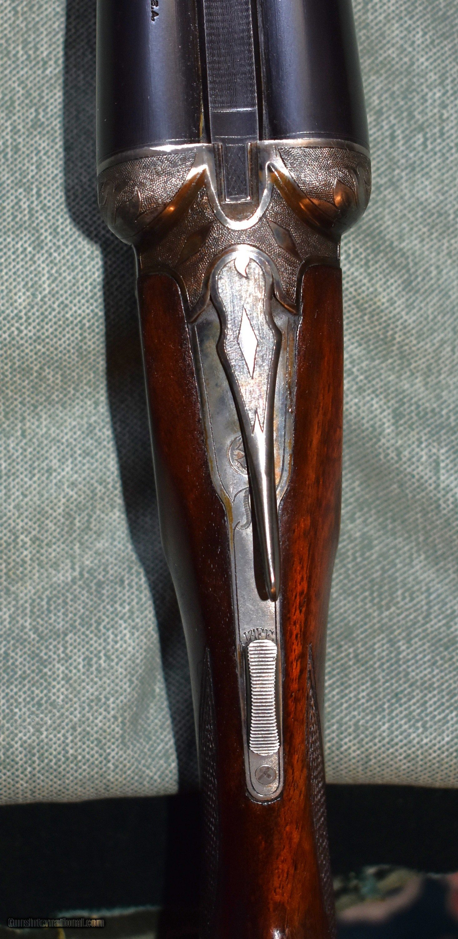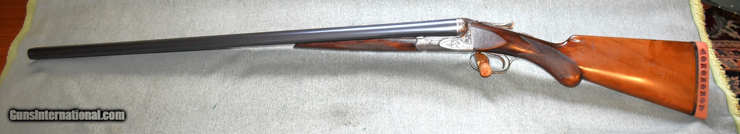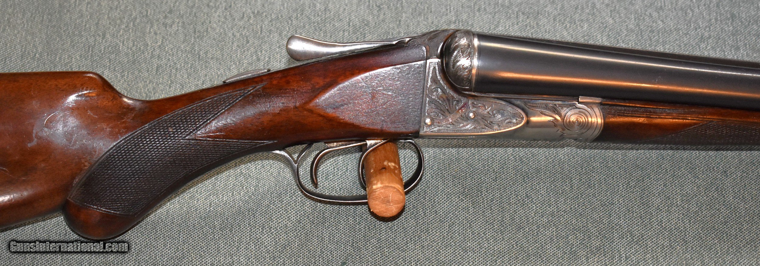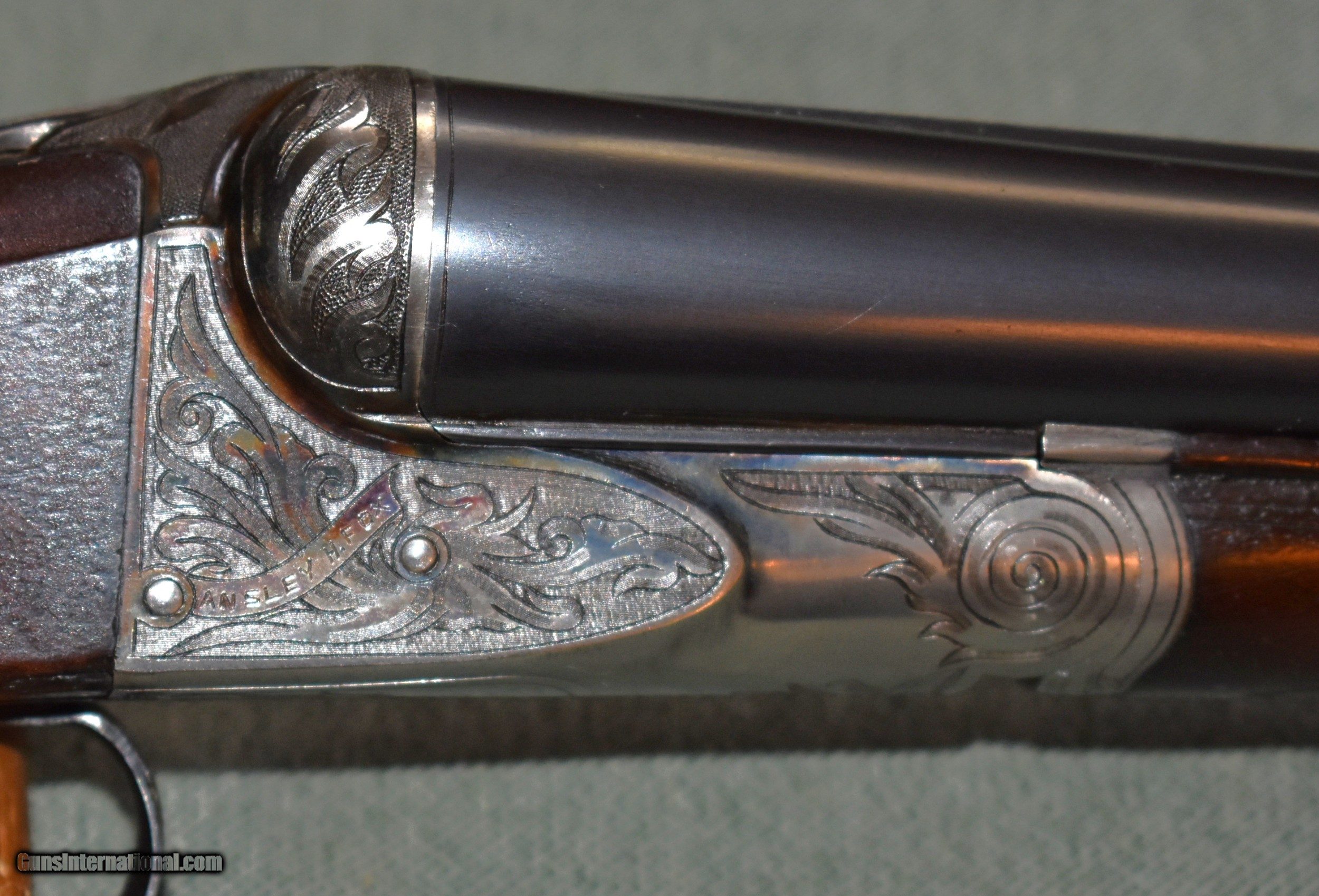 Description: A.H.Fox 12 gauge A grade built in 1921. This gun has 30" chromox steel barrels choked full and full. The gun retains around 50% of the original case color, 90% of the original barrel blue,and 80% of the original wood finish. The barrels are on face and lock up tightly to the action with no play. The top lever is still to the right indicating that the gun has not been shot a great deal. The stock is sound with no cracks or damage. The stock has a 14" LOP over a period correct Ranger recoil pad. This is a solid hunting gun that would make a great turkey gun or pheasant gun. C&R eliglble.Sale Pending SOLD Shotgun Gauge: 12 Gauge Manufacturer: A.H.Fox (Phildelphia) Model: A Serial Number: 27638 Barrel Length: 30 Chambers: 23/4 Ejectors: extractors Condition: Excellent Metal Condition: Excellent Wood Condition: Very Good Bore Condition: mint Barrel Type: Chromox Steel Action: Double Barrel Triggers: double set Butt Pad: Aftermarket recoil pad Manufacture Date: 1921 Choke Left: Full Choke Right: Full |