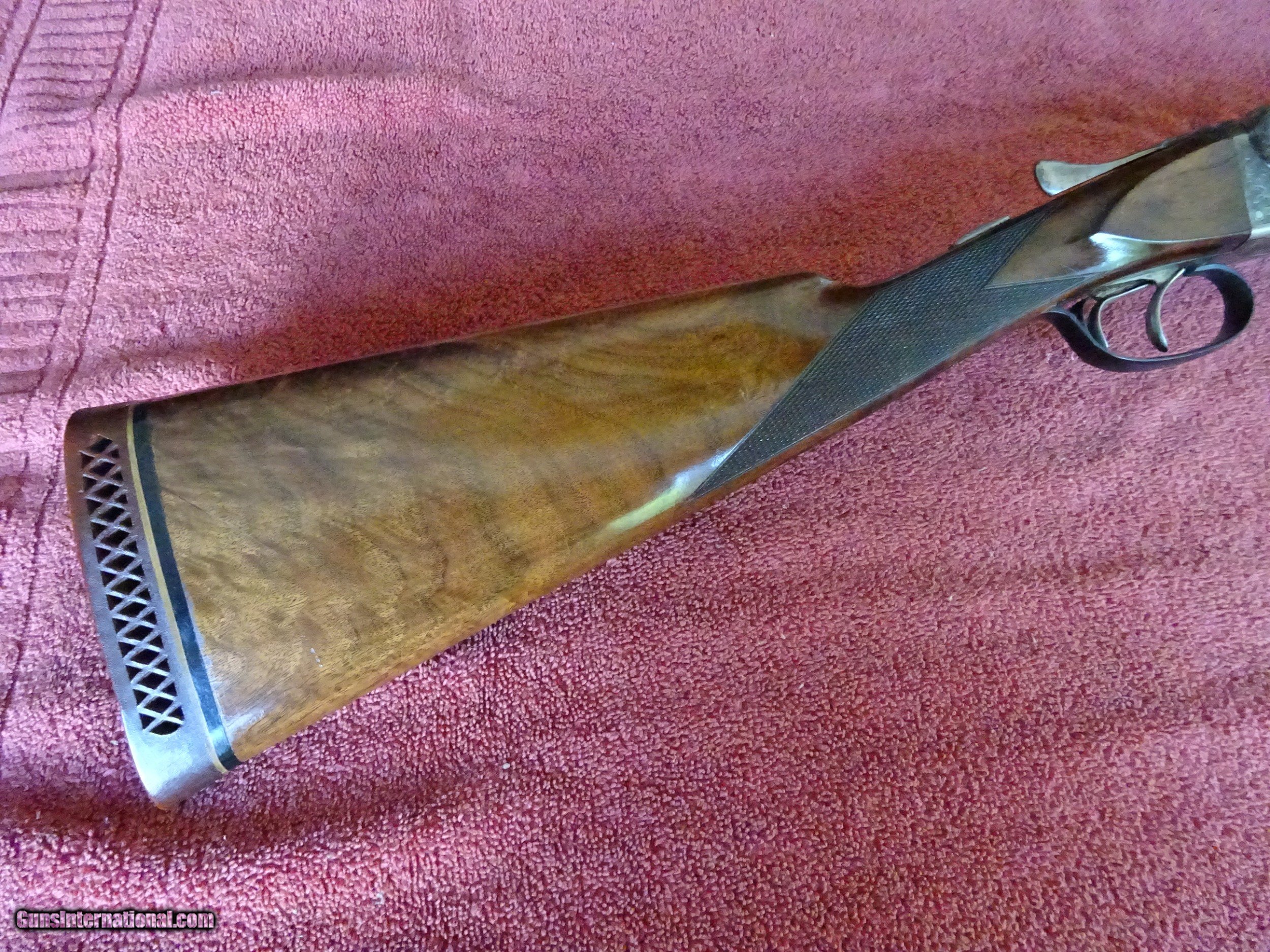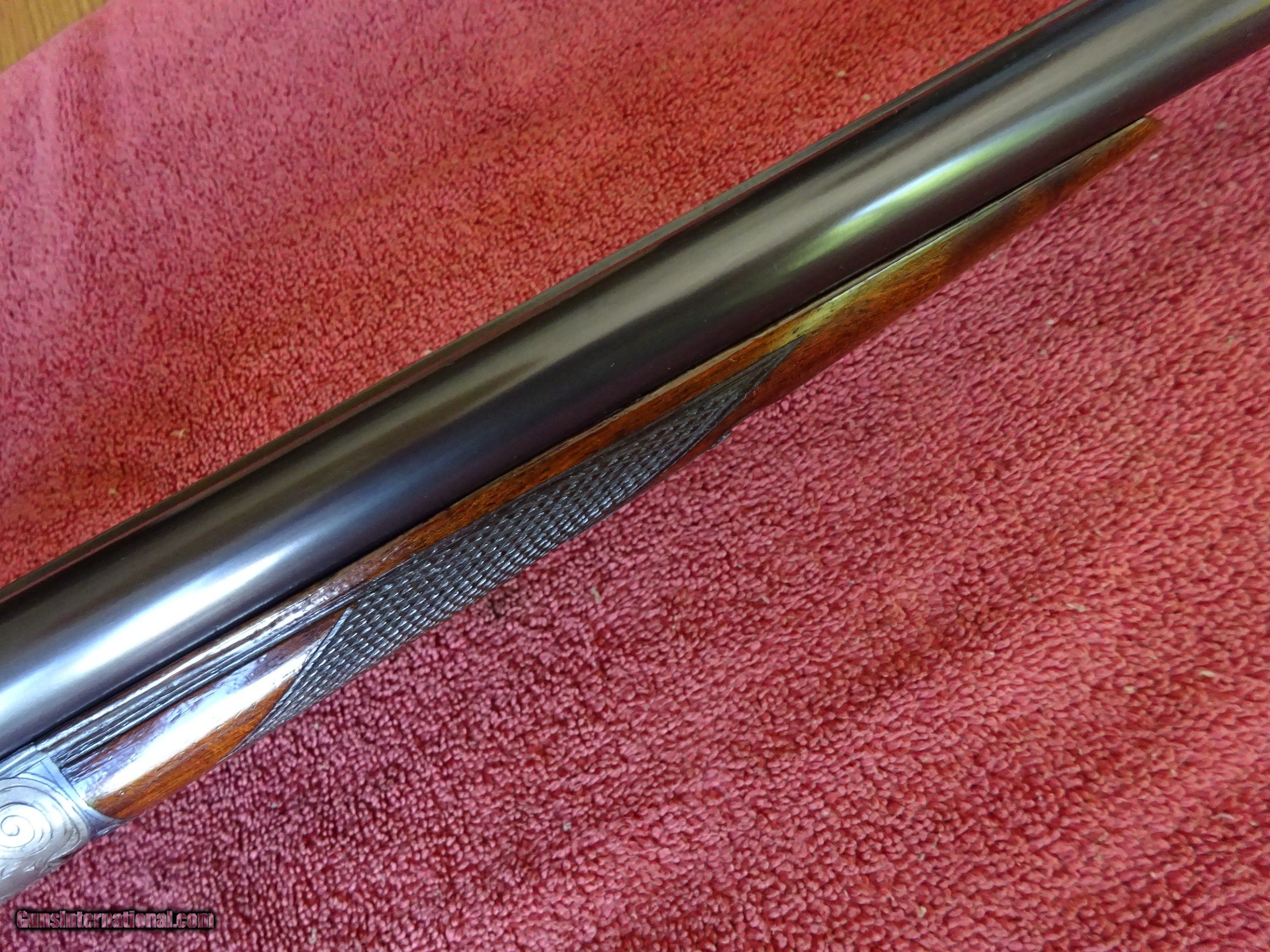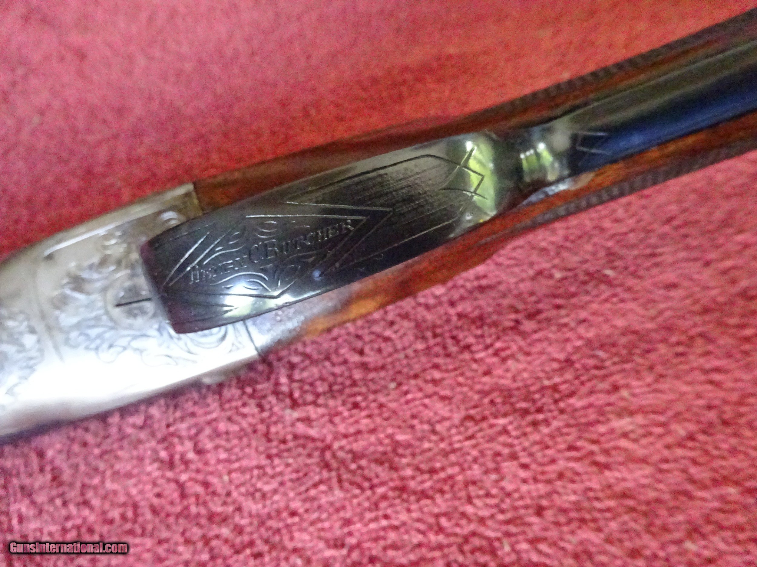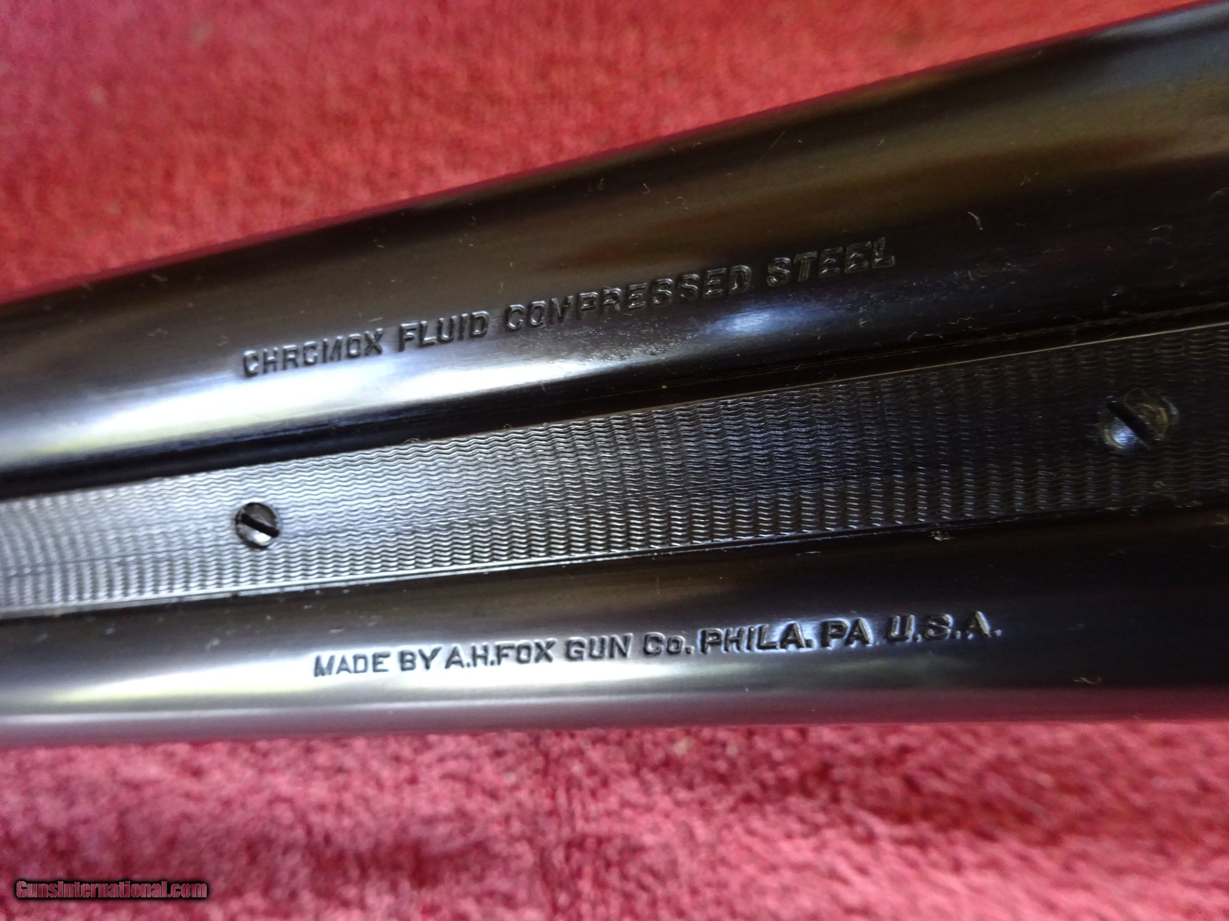 Description: ***INTERESTING HISTORY*** A H FOX A GRADE 16 GAUGE, 26" CHROMOX FLUID COMPRESSED STEEL BARRELS. IMCYL. AND FULL, 2 1/2" CHAMBERS, EXCELLENT BLUE, MIRROR BORES, NUMBER 4 WEIGHT, SINGLE BEAD SIGHT, BARRELS RING BEAUTIFULLY, AUTOMATIC EJECTORS. ATTRACTIVE DEEP CUT LATE STYLE ENGRAVING, GOOD CASE COLOR IN THE PROTECTED AREAS. EXCELLENT ENGRAVED SCREWS, TOP LEVER TO THE EXTREME RIGHT, TIGHT ON FACE. STRAIGHT GRIP STOCK, SPLINTER FOREARM, HIGHLY FIGURED WOOD, EXCELLENT CHECKERING AND FINISH. DIMENSIONS - 1 1/2" X 2 1/2" X 14 3/8", 6 POUNDS EVEN. AT ONE TIME THE GUN HAD SOME TYPE OF REAR SIGHT. THERE ARE TWO PLUG SCREWS AT THE REAR OF THE RIB. THE PAD HAS HARDENED WITH AGE AND SHOULD BE REPLACED WITH A JOSTAM OR SILVERS TYPE. THE TRIGGERGUARD IS FACTORY ENGRAVED "HENRY C. BUTCHER". INTERESTING HISTORY - MR. BUTCHER WAS WITH CBS NEWS IN THE 1930s AND IS CREDITED WITH COINING THE PHRASE "FIRESIDE CHAT" FOR FDR's WEEKLY RADIO TALK TO THE NATION. HE ALSO WAS AN ADVISOR TO EISENHOWER DURING WWII. THIS IS A WONDERFUL HANDLING LITTLE FOX MADE IN 1917 WITH AN INTERESTING HISTORY. $5500.00 + $60.00 Insured shipping to an FFL address. Layaway is available. See all Pats gun listings on this site! We also have hundreds of pieces of ORIGINAL gun company advertising & memorabilia available for sale on our site SPORTINGCOLLECTIBLES. We have no reprints or reproductions. Email for more information. SOLD Curio/Relic: Yes |